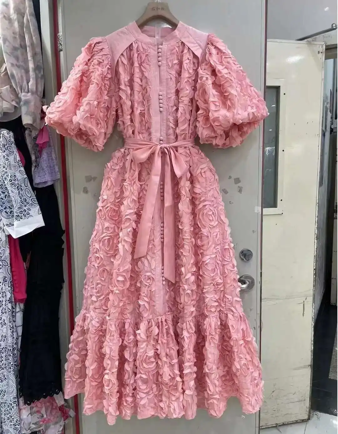 Elevate Your Style This season with our Elegant 3D Flower Midi Dress, expertly designed for women who love to make an impression at any event.