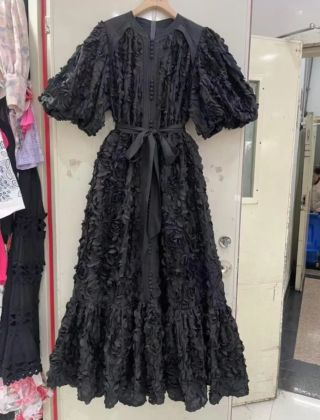 Why you'll love it: - Stunning 3D Floral Design Adds Sophistication. - Flattering A-line Fit for Comfortable Wear. - Premium Quality, Soft, and Breathable Fabric. - Perfect for Parties, Weddings, and Special Occasions. - Versatile Style that Transitions from Day to Night.