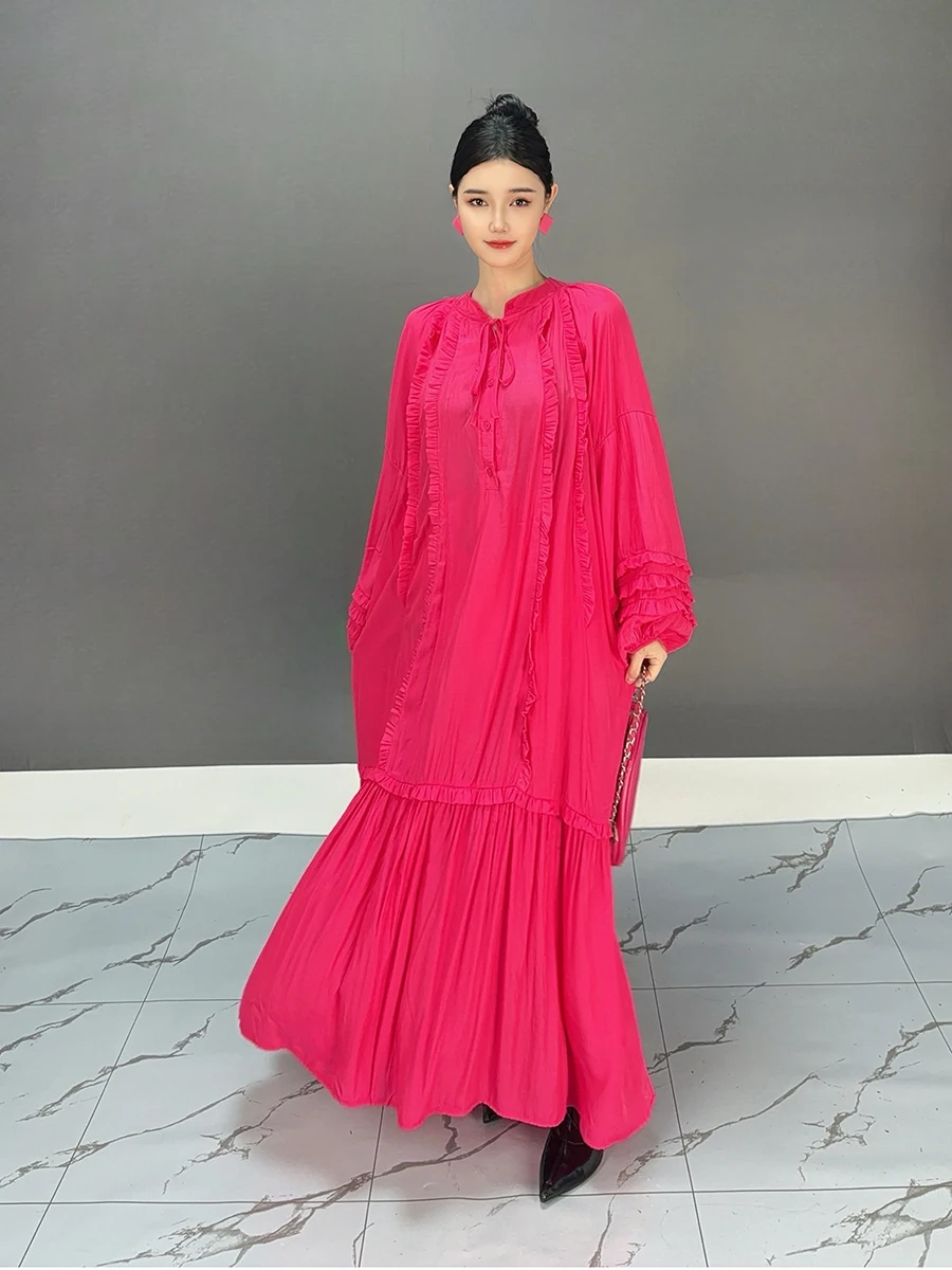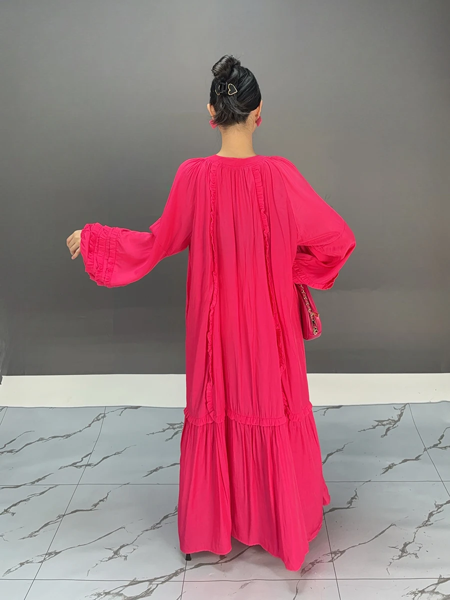 This dress features a stylish yet relaxed silhouette that drapes beautifully, making it a perfect addition to your fall wardrobe. Crafted with high-quality materials, this long cake dress can be effortlessly dressed up or down, making it the premier choice for any event.