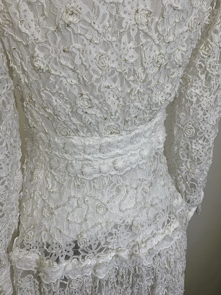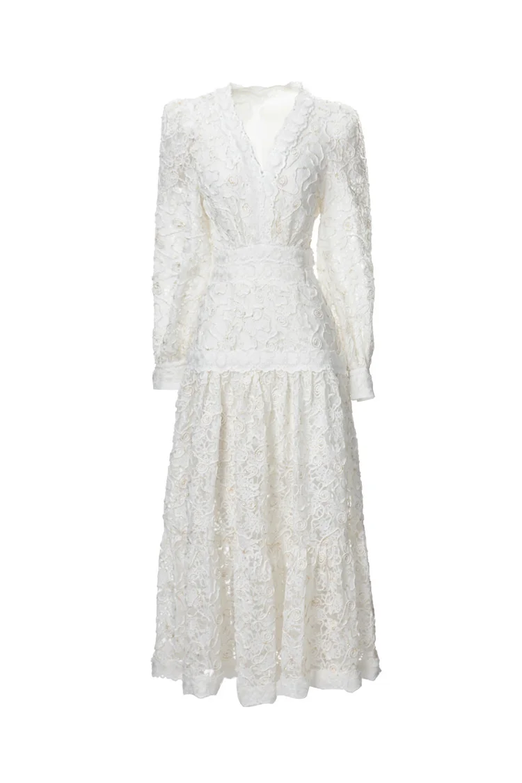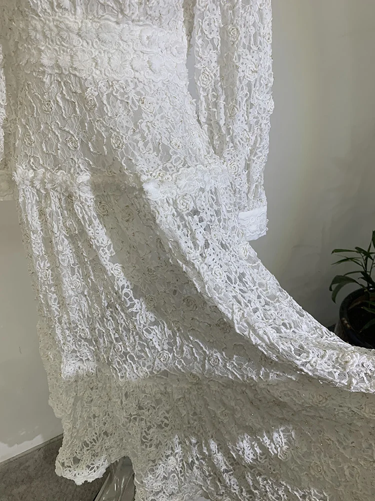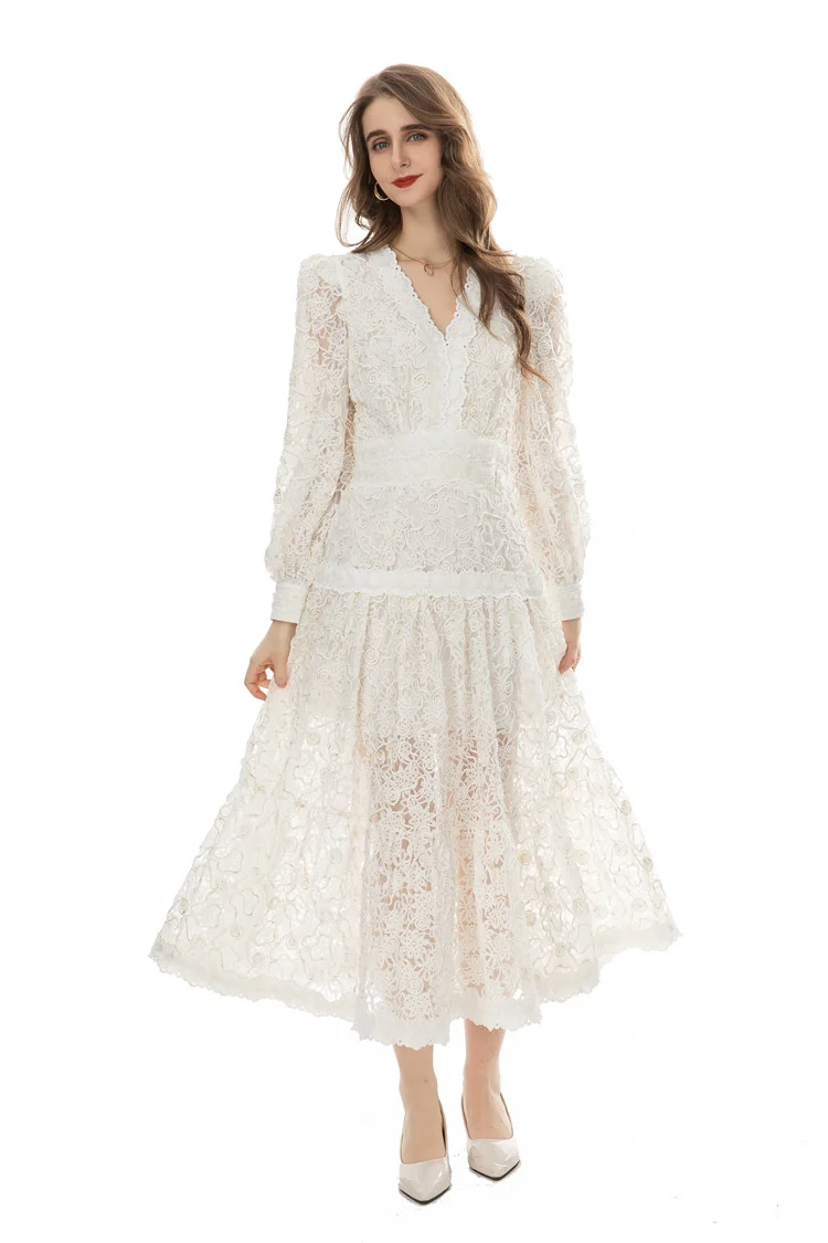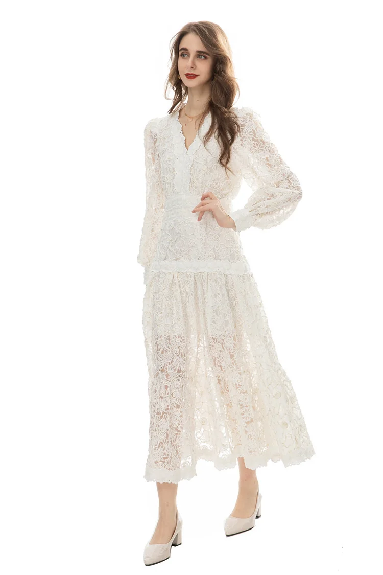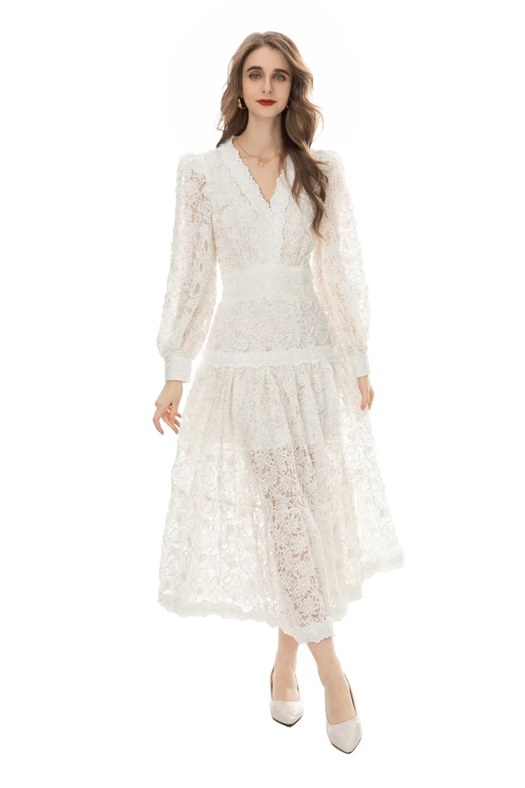 Introducing our IEQJ Hollow Out Embroidery Spliced Lantern Long Sleeve Black Big Swing Dresses! Designed for the modern woman, this dress combines elegance and comfort with its intricate lace detailing and flowy silhouette. Available in sizes S-XXL, it offers a perfect fit for any body type. Whether you're attending a party or a special evening event, this dress will solve all your outfit dilemmas. With its premium quality and unique design, it's a must-have in your wardrobe. Don't miss out on this limited time offer and be the best dressed wherever you go!