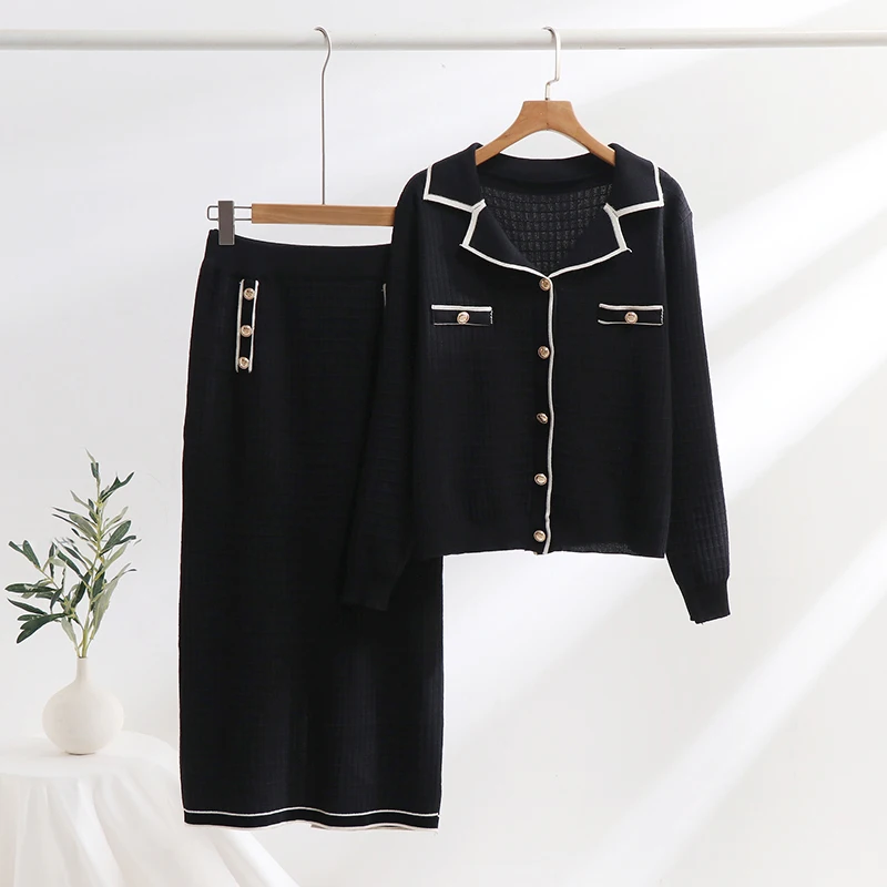 Unleash your inner fashionista with our Elegant Black White Plaid Knit Two Piece Set that combines comfort with style effortlessly. 🖤
