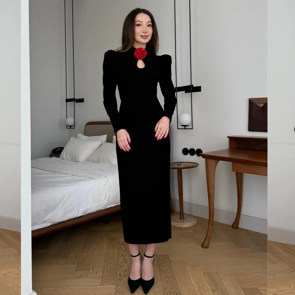 Elevate your style with our Elegant Custom High Collar Midi Dress, designed for those who desire sophistication and uniqueness in their wardrobe.