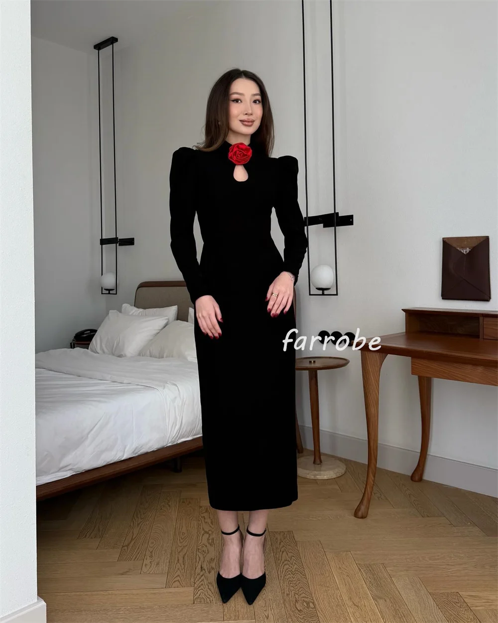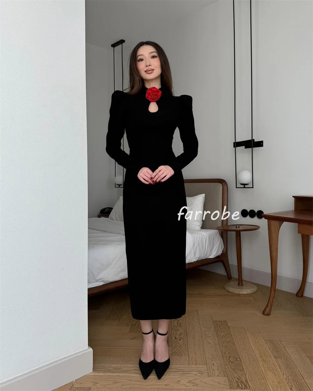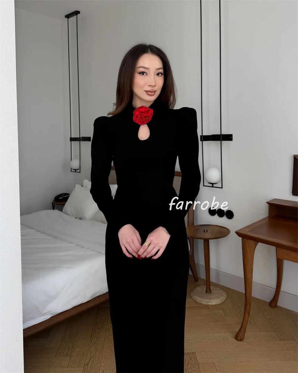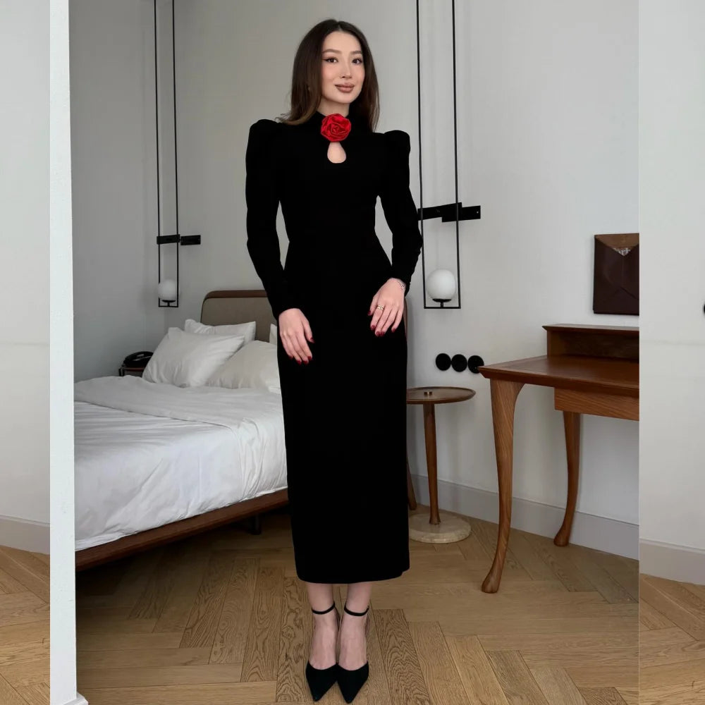 Why you'll love it: - Tailored to your specifications for a perfect fit. - Chic high collar design that exudes elegance. - Made from premium jersey fabric for comfort and style. - Unique handmade flower pleat details that stand out. - Ideal for special occasions or a night out.