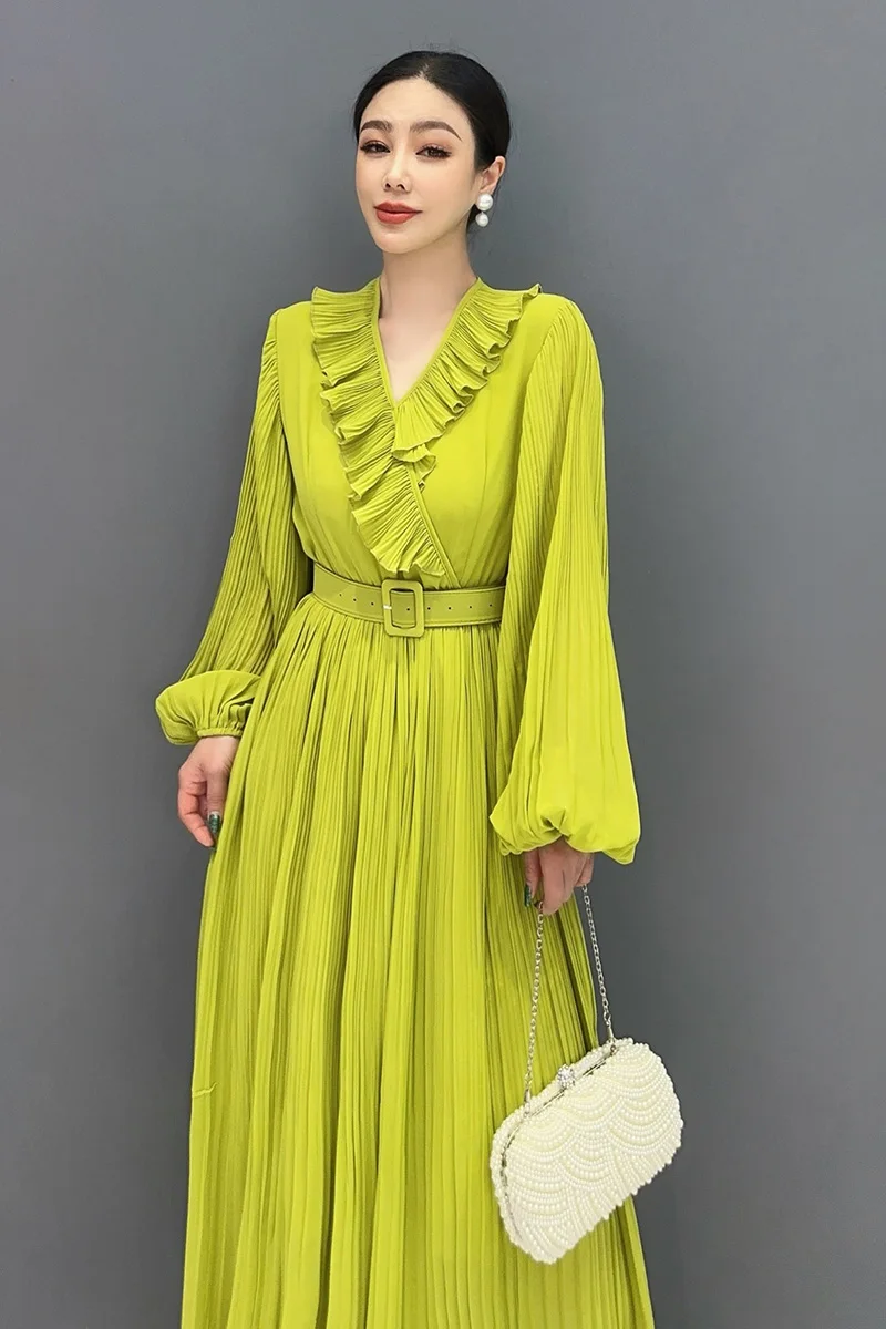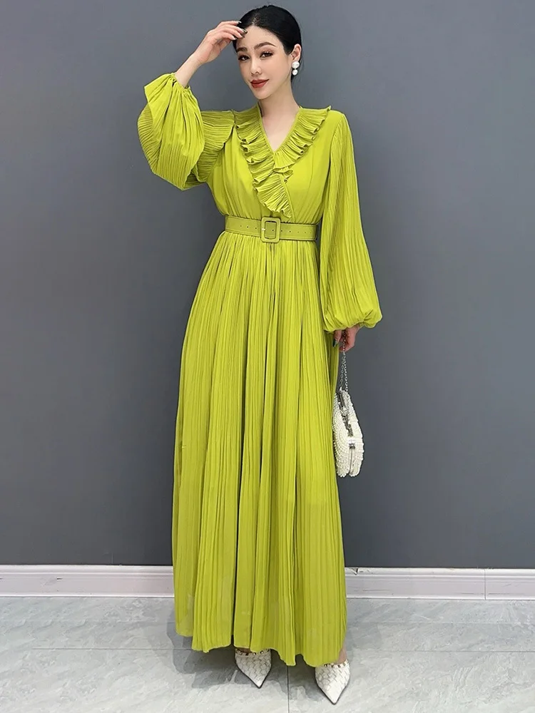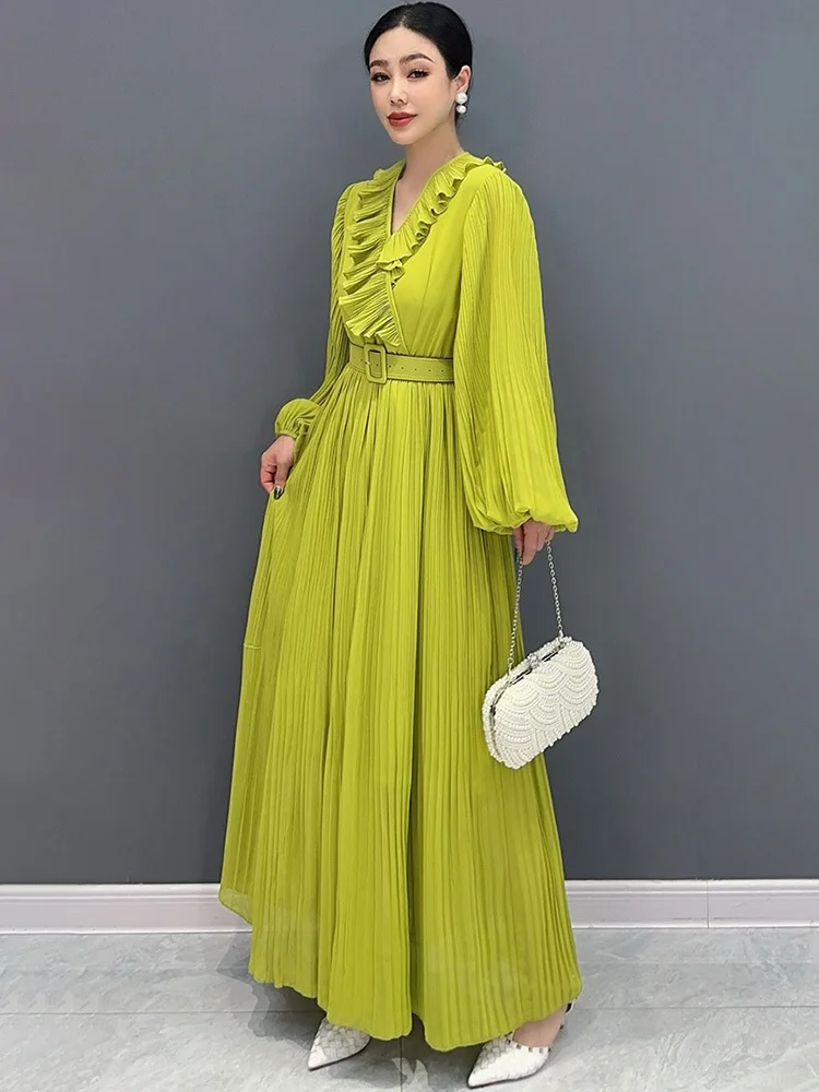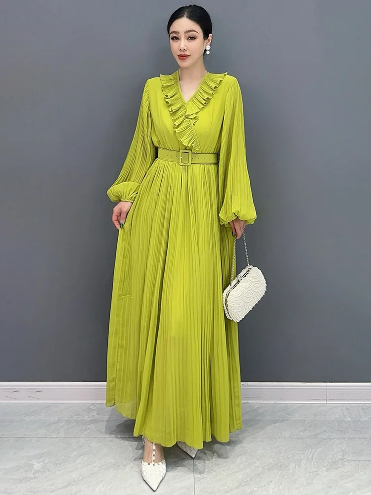 💃 Elevate your style with our Elegant Floral Lace Up Swing Dress 2024 that exudes pure sophistication. This V-neck, long sleeve dress features a stunning floral collar design for a touch of femininity and grace.