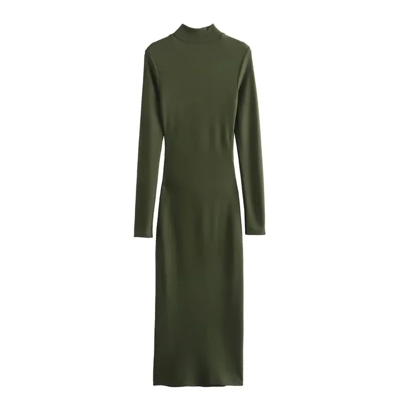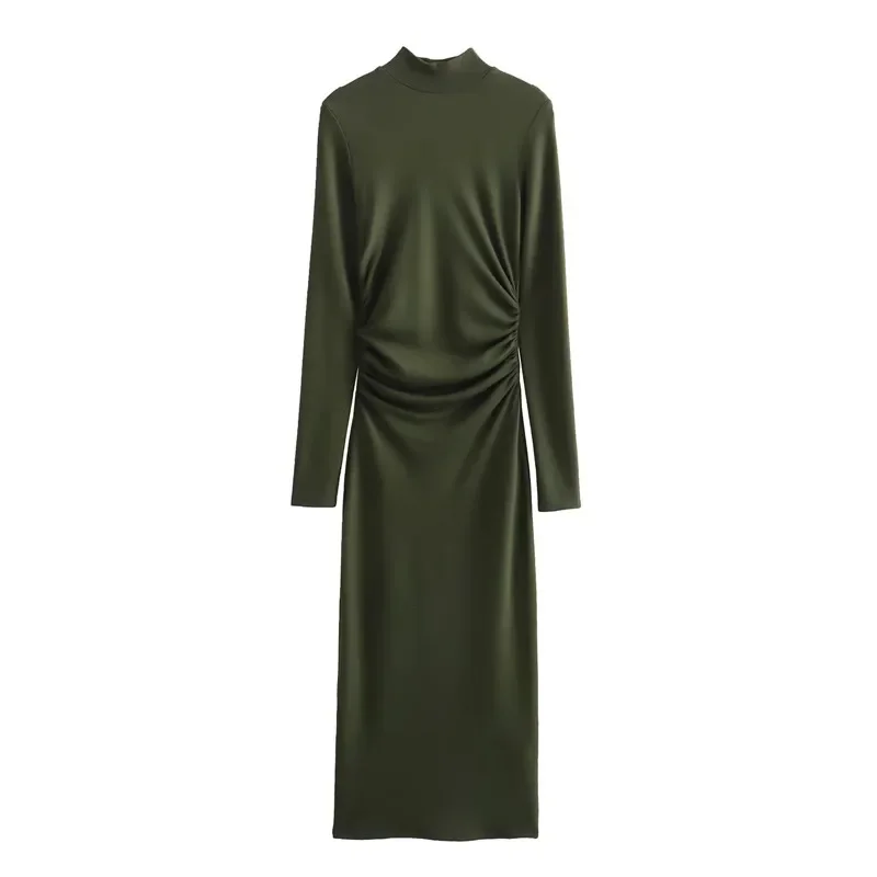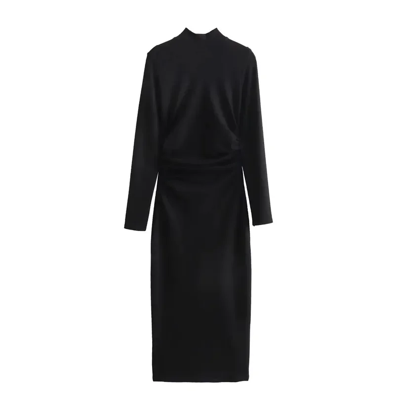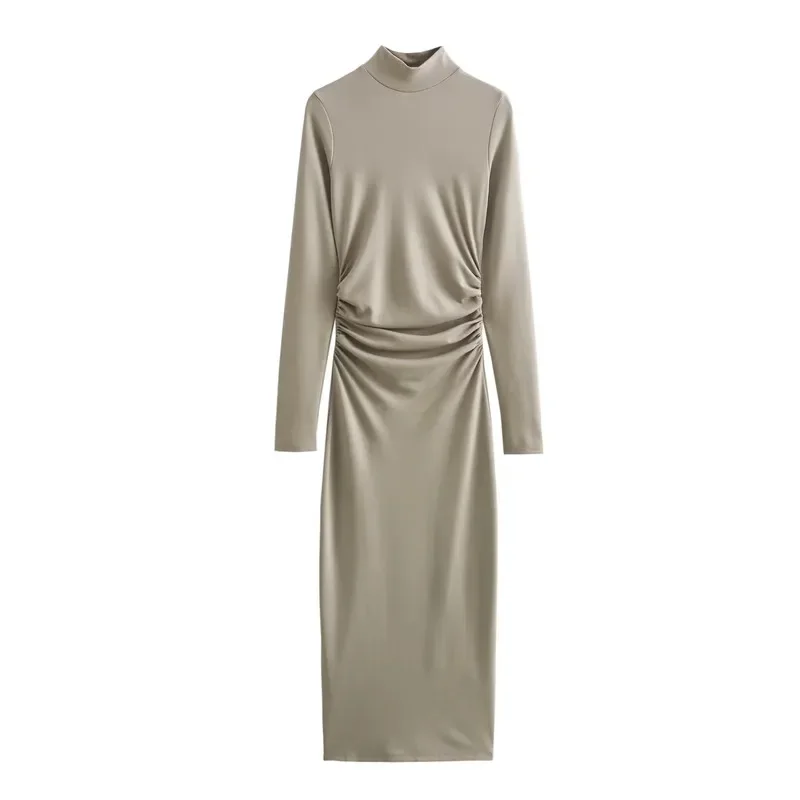 Introducing our TRAF 2023 Ruched Long Dress, the perfect addition to your wardrobe this autumn and winter season. This elegant high neck bodycon dress is designed to highlight your figure and provide a comfortable fit with its long sleeves and midi length. Made with premium materials, this dress is perfect for any party or special occasion. Its unique ruched design adds a touch of sophistication, making it a best seller among our customers. Don't miss out on this exclusive limited time offer and upgrade your style with our TRAF 2023 Ruched Long Dress.