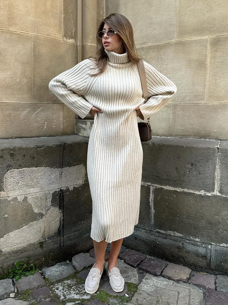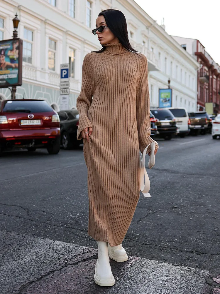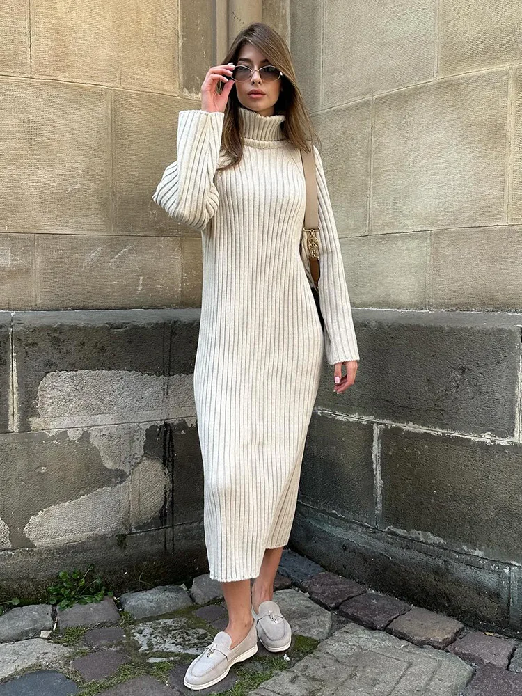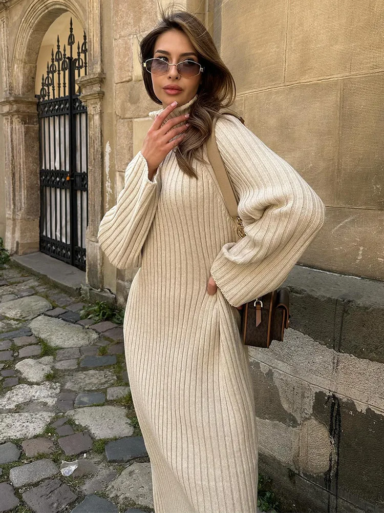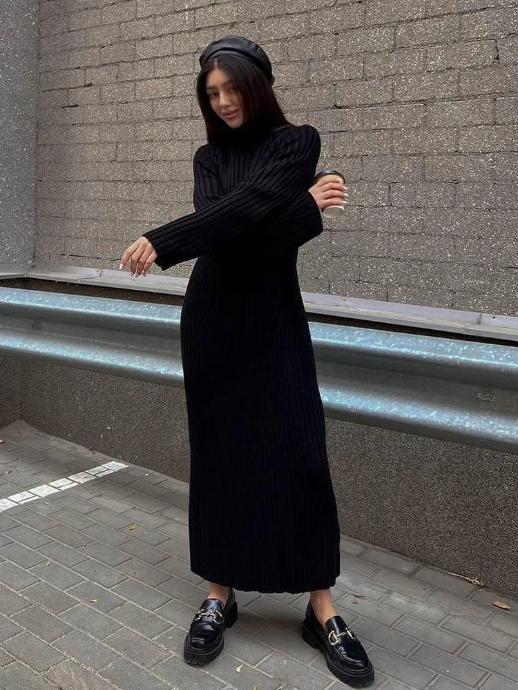 Unleash Your Style with our Elegant Knitt Women Maxi Dress 2023! 🌟 🌸 What it is - Elevate your wardrobe with this fashion-forward long sleeve turtleneck dress, perfect for the 2023 Autumn season. Made from high-quality material for a comfortable and chic look.
