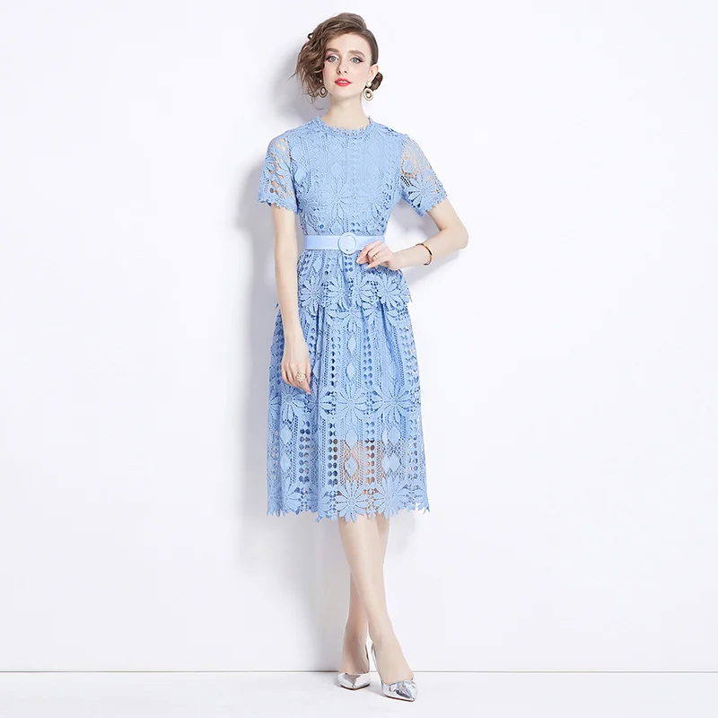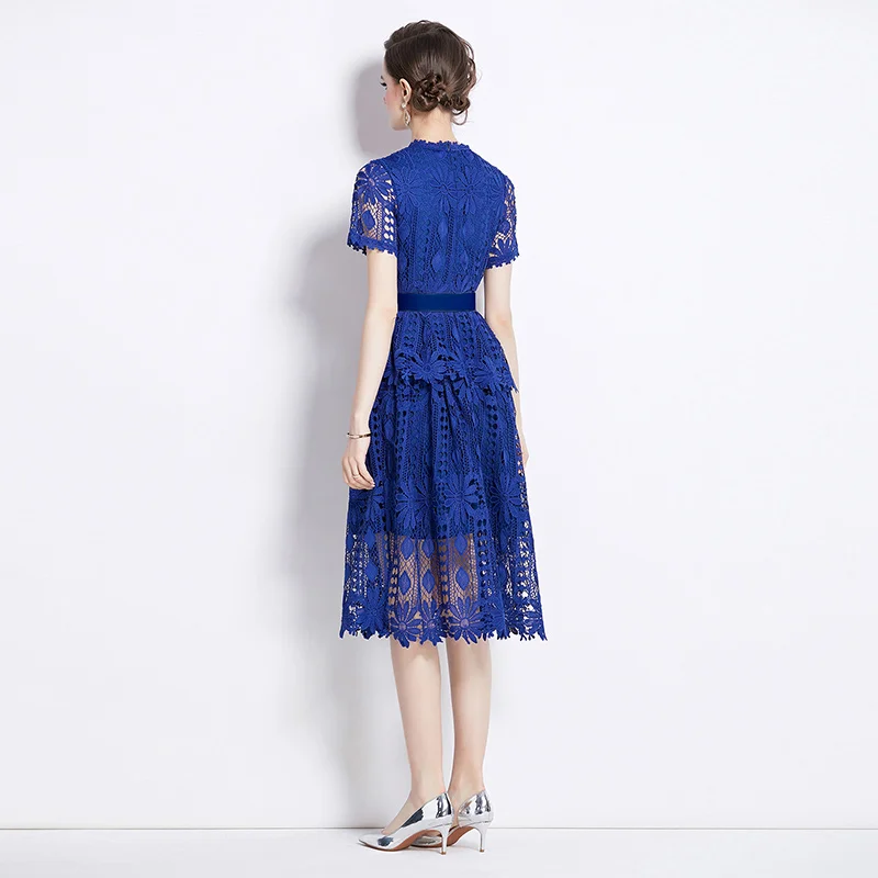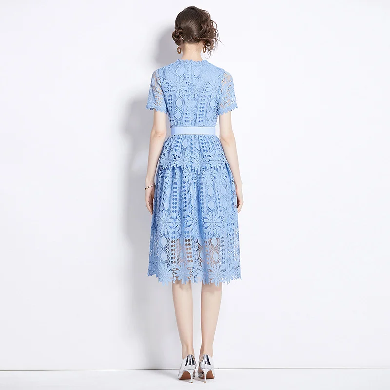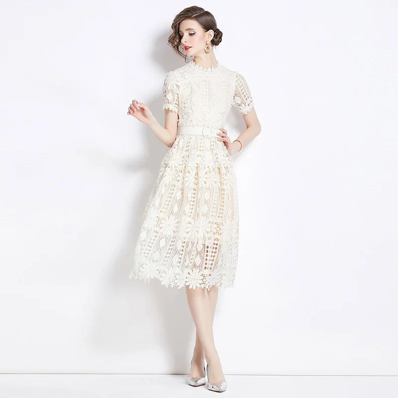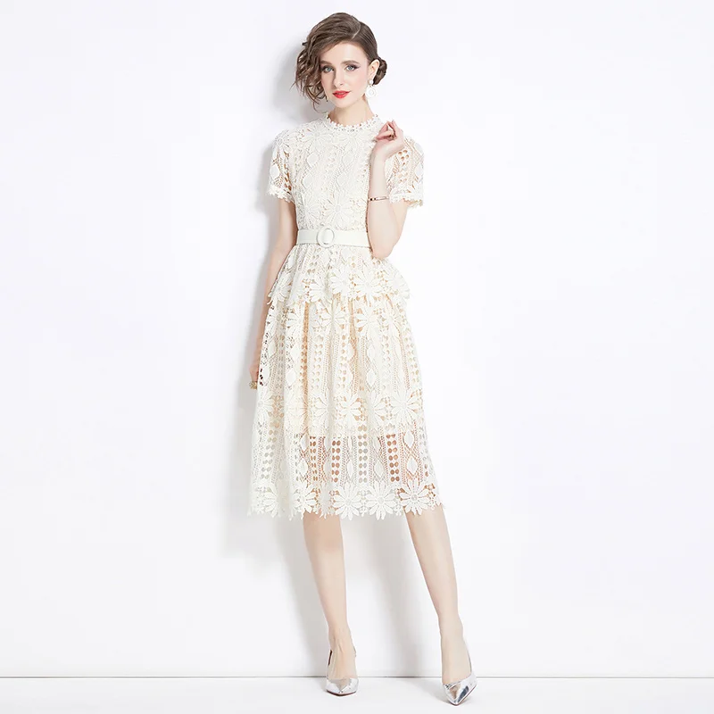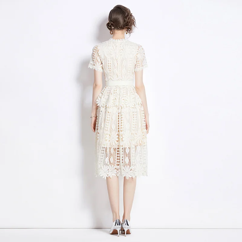 Shop now and elevate your wardrobe with this exquisite lace crochet flower dress. Limited stock available!