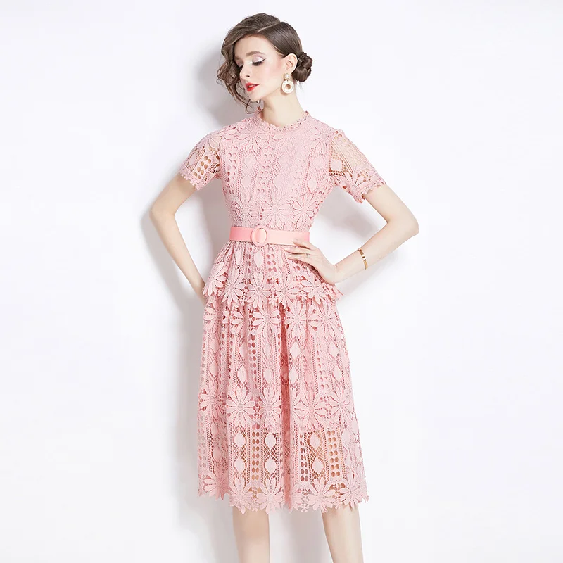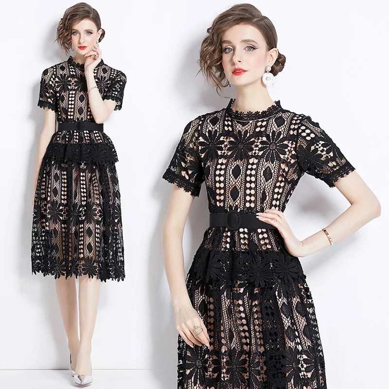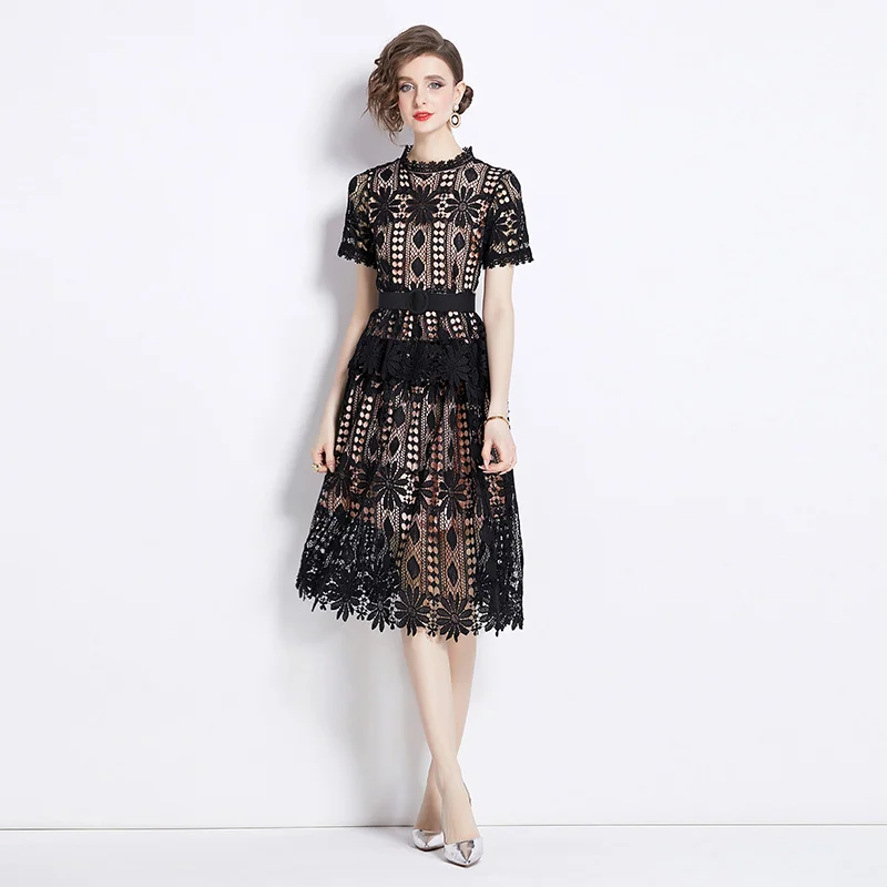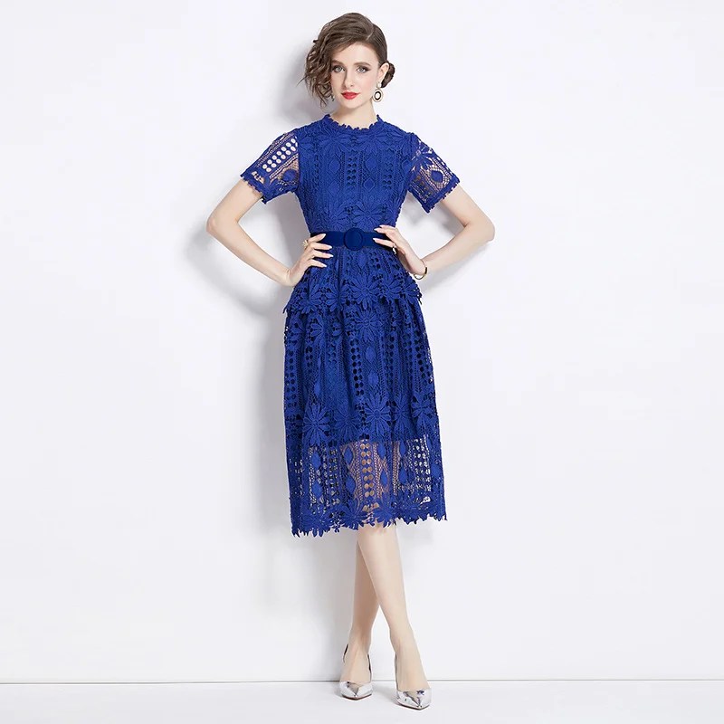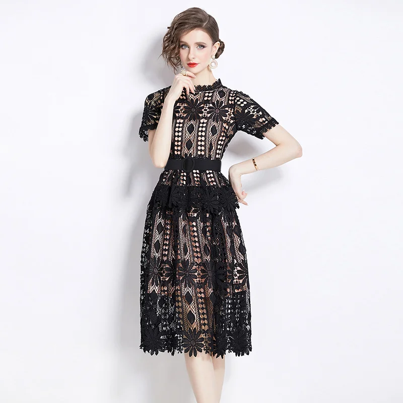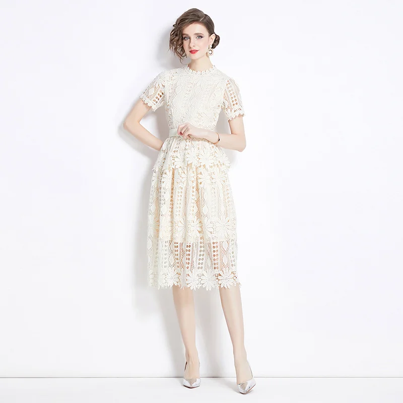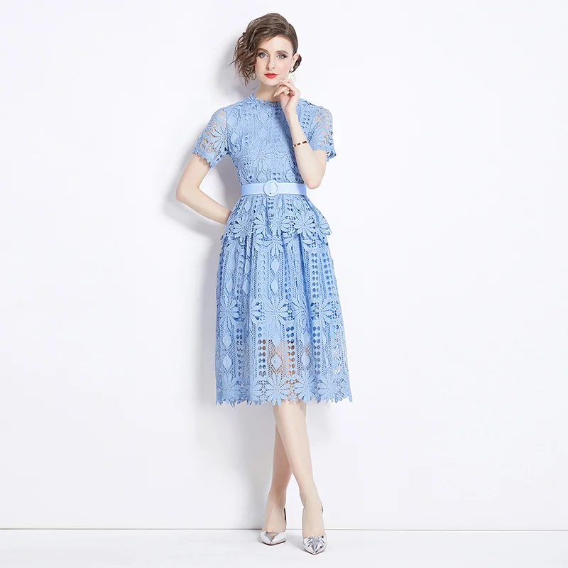 Shop now and elevate your wardrobe with this exquisite lace crochet flower dress. Limited stock available!