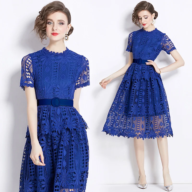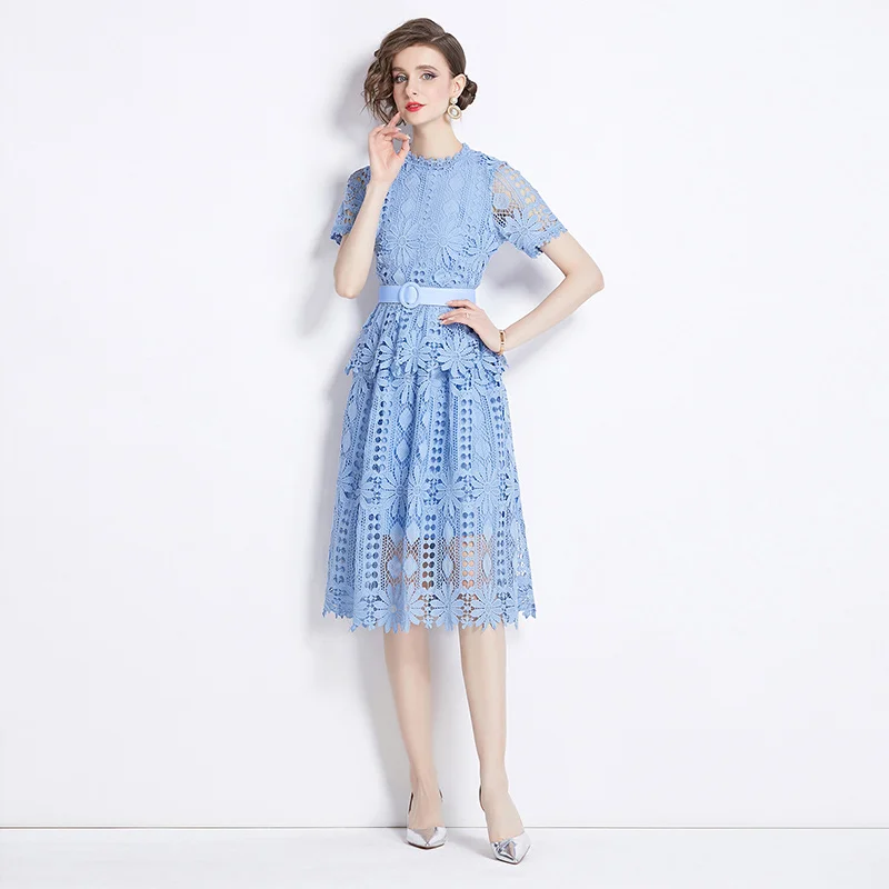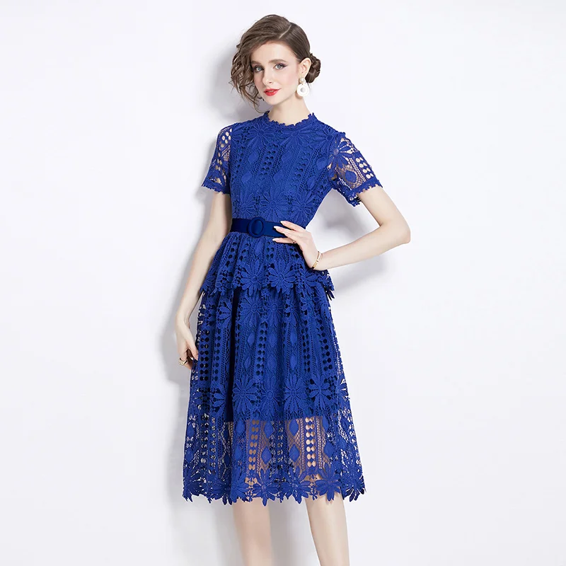 🌺 Elevate your style with our elegant lace crochet flower party dress that exudes charm and sophistication. This high-waisted slim evening dress is perfect for any special occasion, from casual gatherings to formal events.