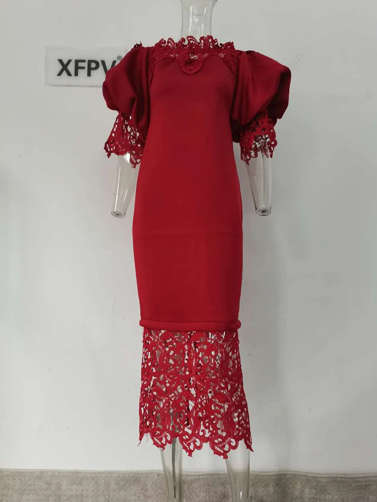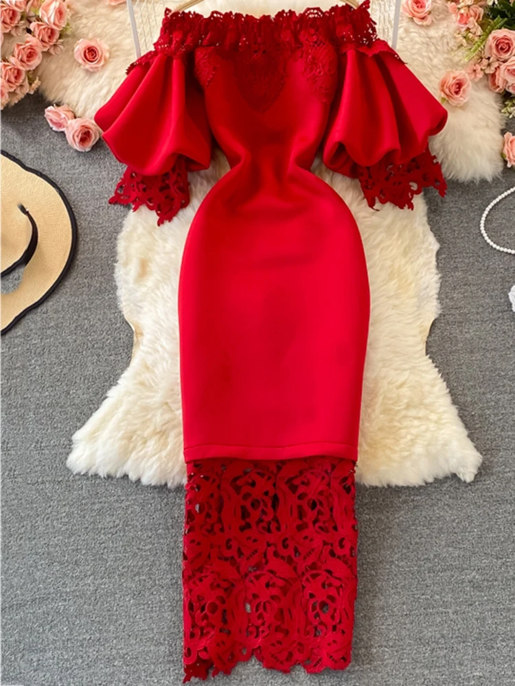 Elevate your style with this elegant lace sheath dress that exudes inner charm and sophistication. Perfect for birthday parties or special occasions, this dress features puff sleeves and a slim silhouette for a flattering look. Made with high-quality materials, this dress is designed to make you stand out and feel confident. Available in multiple sizes, this dress is a must-have for the upcoming summer season. Transform your wardrobe with this tasteful and charming dress that will change your life for the better. Size guide: M - Bust: 88cm, Length: 123cm, Waist: 70cm | L - Bust: 92cm, Length: 124cm, Waist: 74cm.