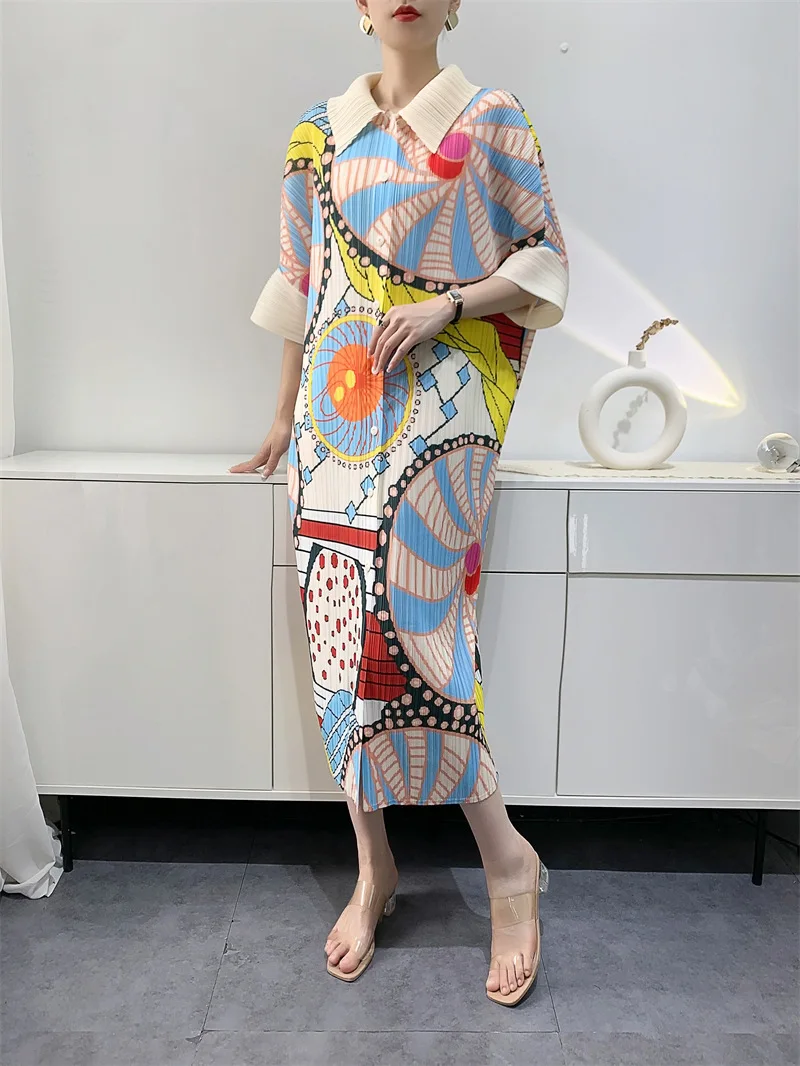 Elevate your wardrobe with the latest trend! 🌸 What it is - Embrace sophistication with our Miyake pleated dress, featuring a medium printed skirt that exudes elegance and chic style.