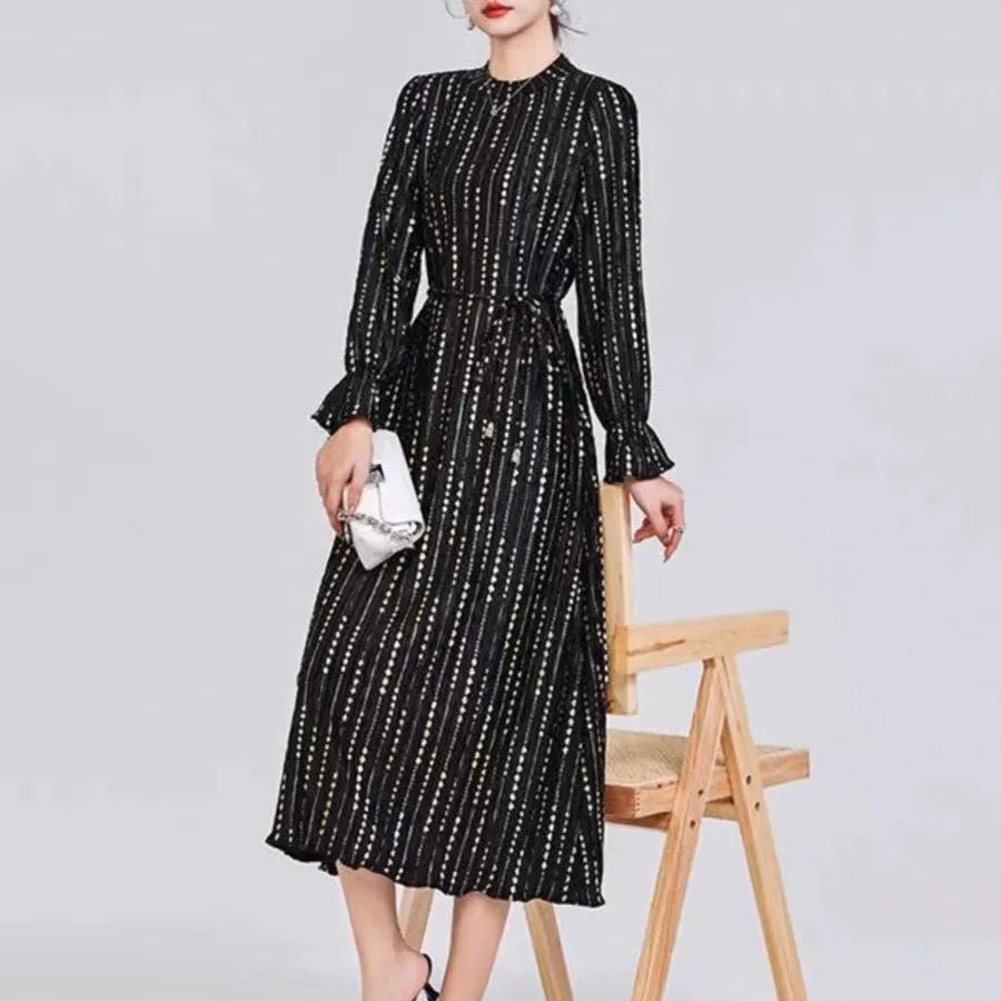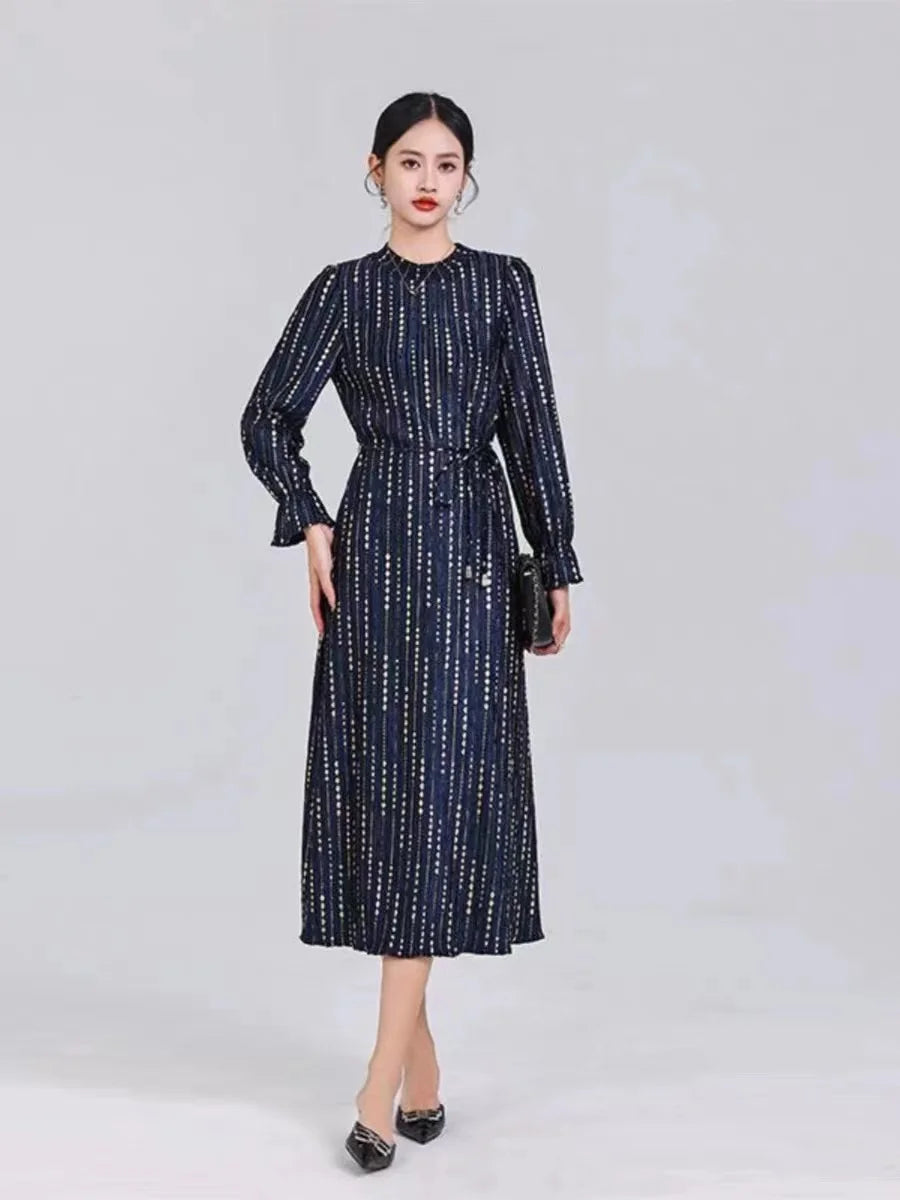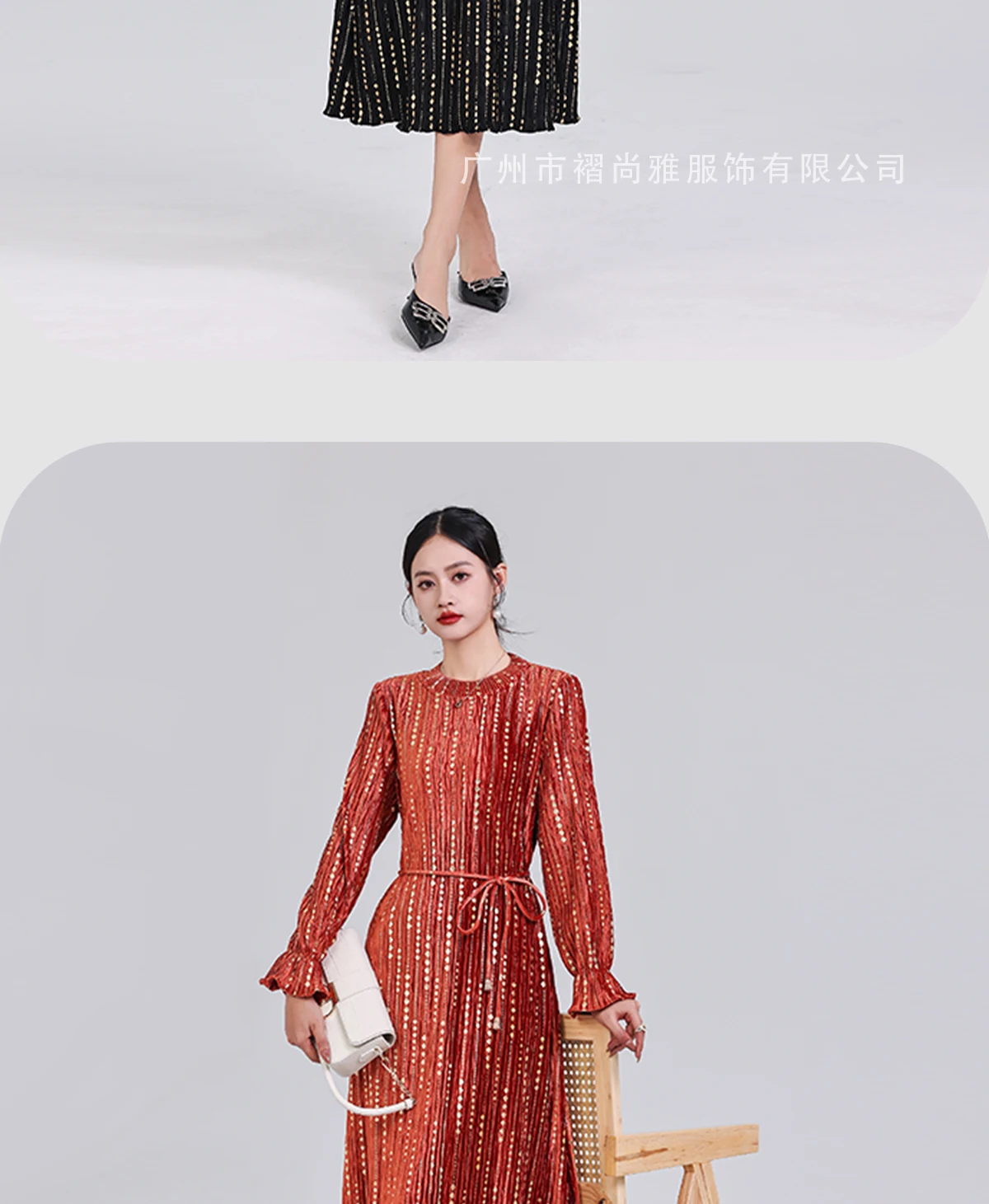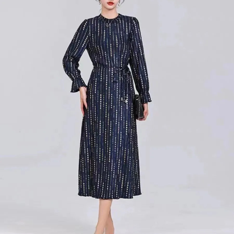 Elevate your autumn and winter wardrobe with the stunning Miyake Pleated Sequined Dress, designed for the modern, fashionable woman.