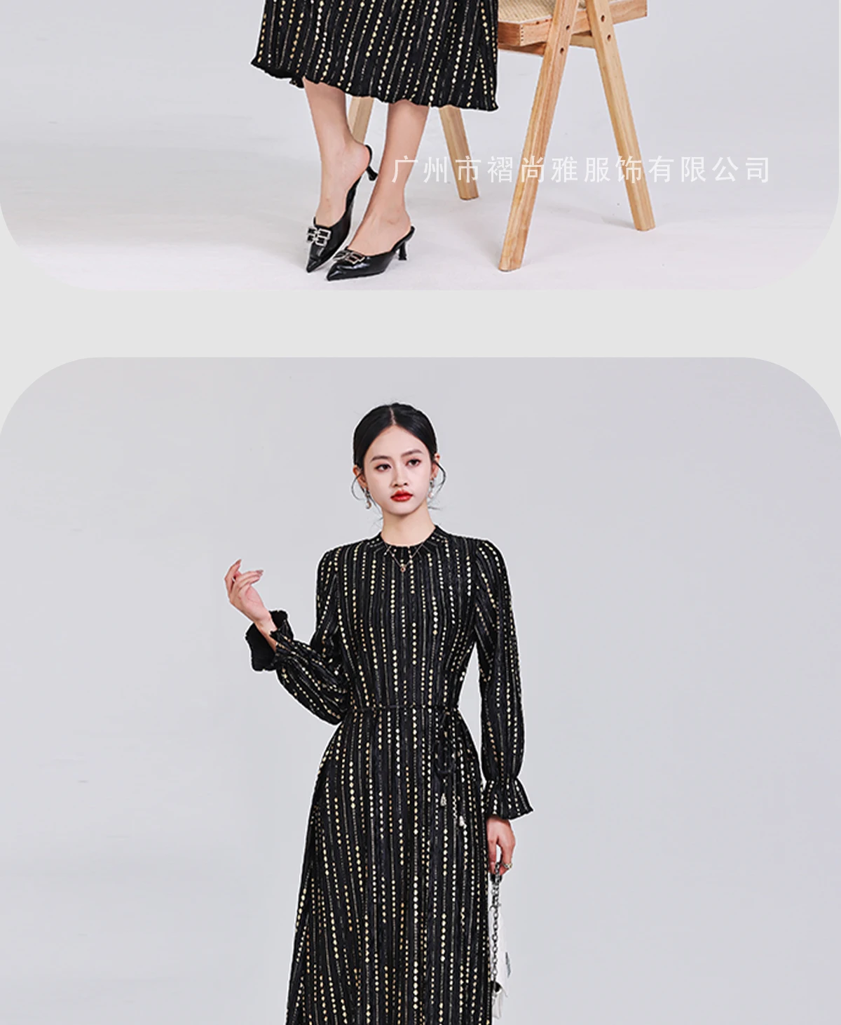 This exquisite dress features a sophisticated pleated design and a chic loose waistband, ensuring you not only look great but feel comfortable throughout the day. The shimmering sequined detail adds an exclusive touch, making it perfect for special occasions or a night out with friends.