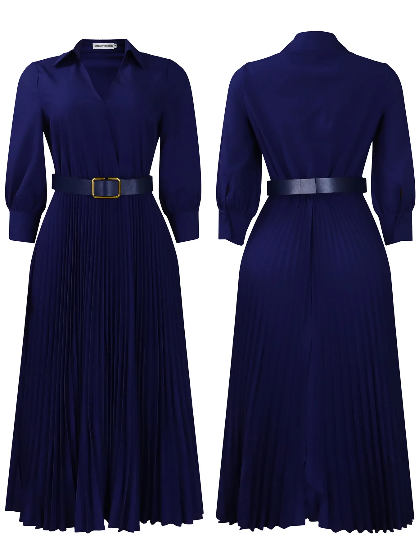 🌟 What it is - Stay chic and sophisticated in this fashion-forward dress designed for the modern woman. Featuring a flattering V-neck, 3/4 sleeves, and a matching belt to accentuate your curves.
