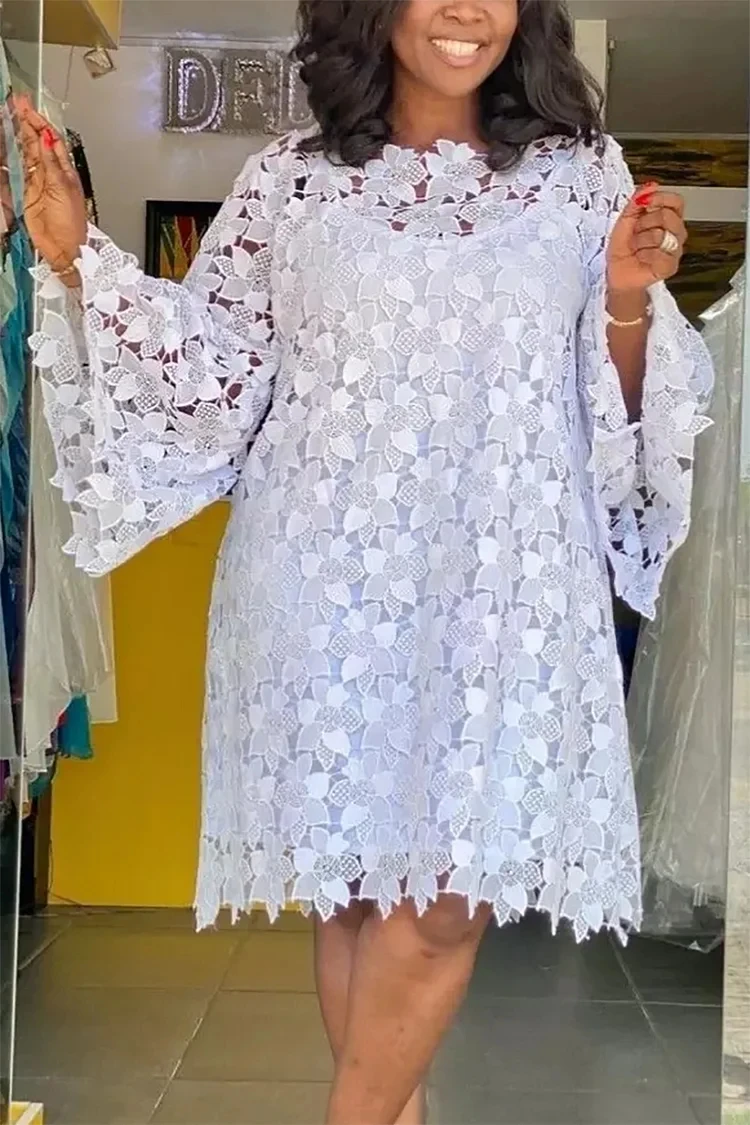 Stand out with our Elegant Plus Size White Lace Mini Dress, designed to hug your curves beautifully.
