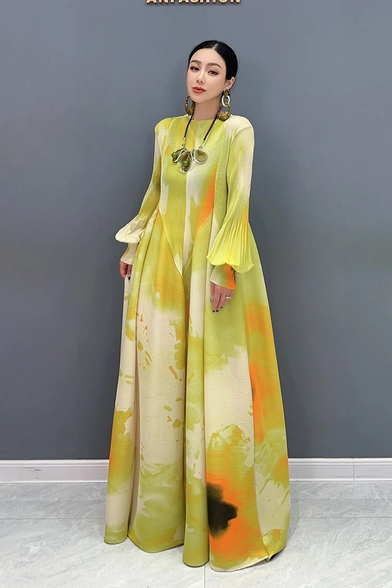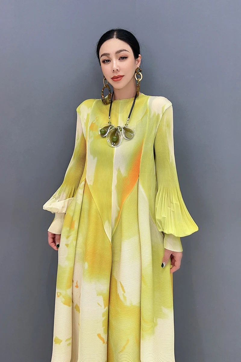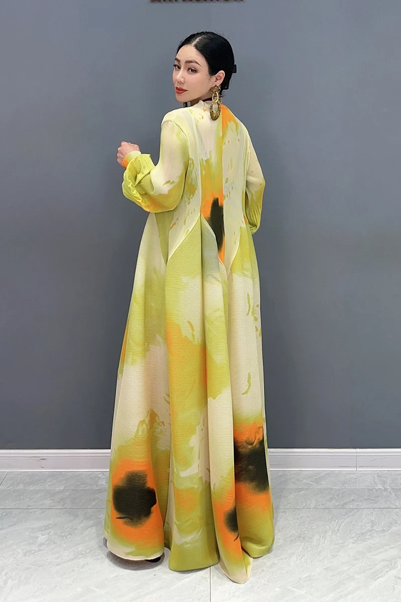 🌟 Embrace elegance in the SHENGPALAE 2024 Spring Summer New Chiffon Dress! This dress features printed splicing and folded bubble sleeves for a large swing silhouette that exudes sophistication and charm.