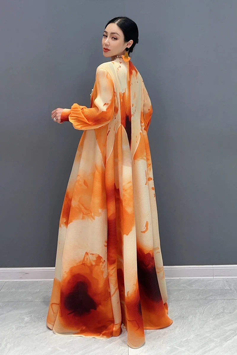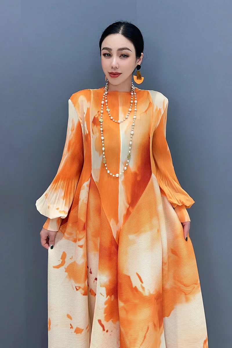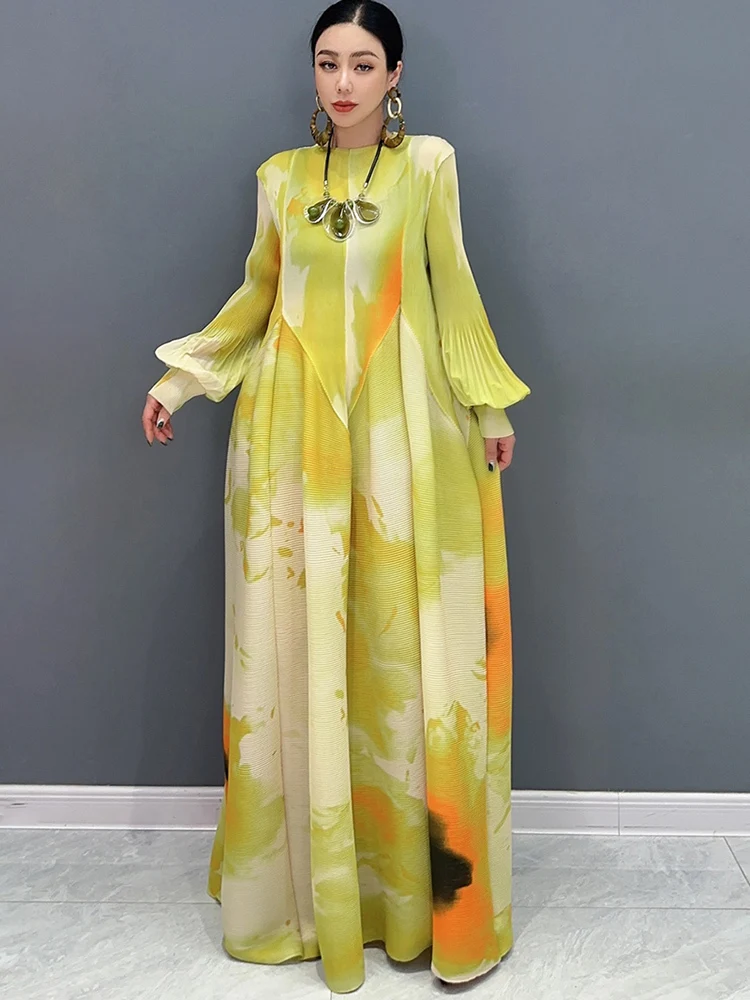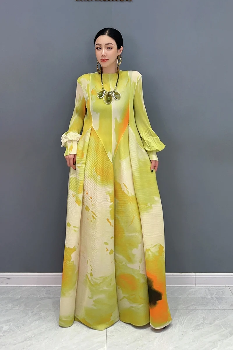 🌟 Embrace elegance in the SHENGPALAE 2024 Spring Summer New Chiffon Dress! This dress features printed splicing and folded bubble sleeves for a large swing silhouette that exudes sophistication and charm.