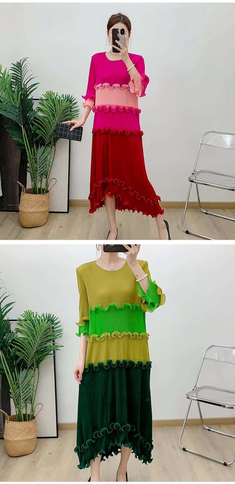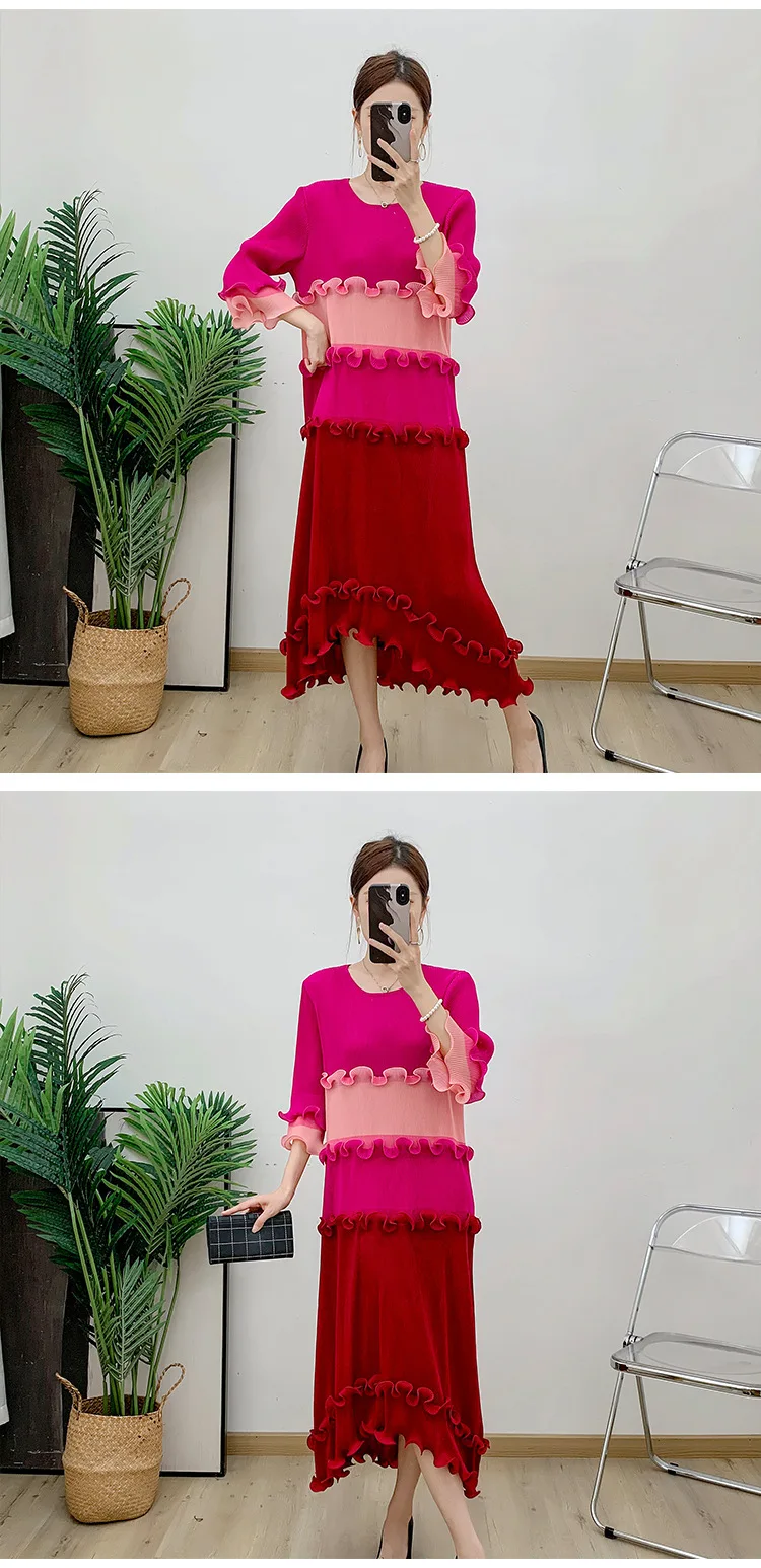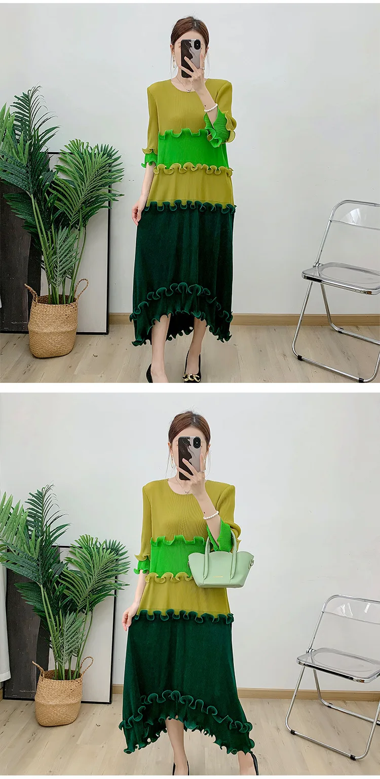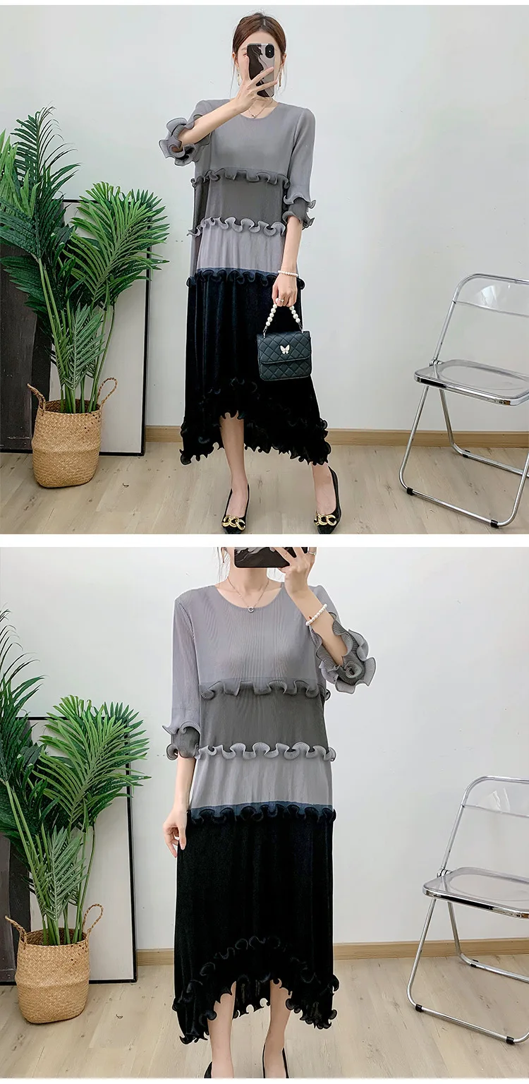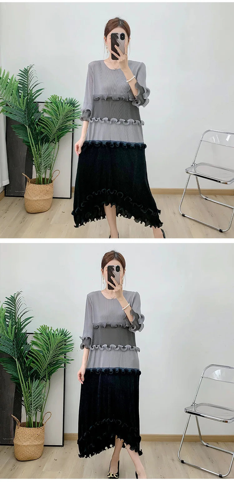 🌟 What it is - A chic and classy dress featuring a pleated design, irregular hem, and loose fit. Perfect for the fashion-forward lady looking for a new statement piece.