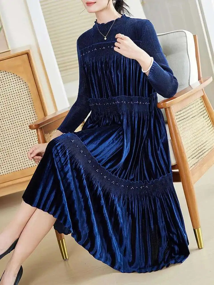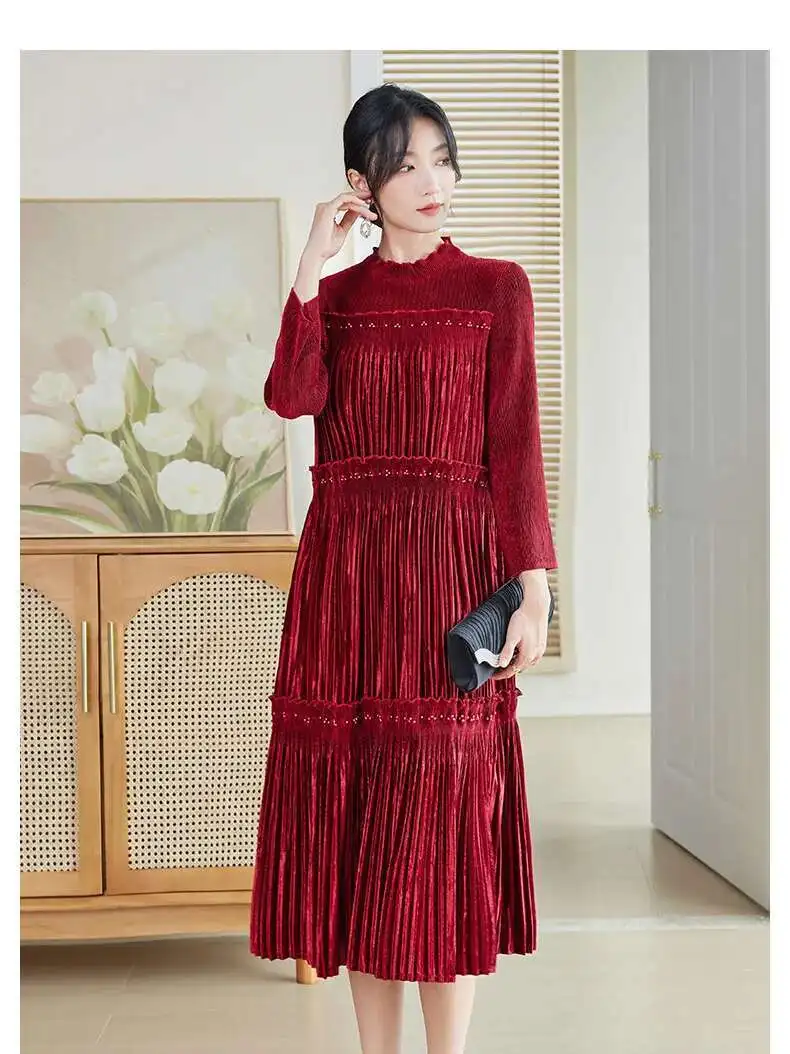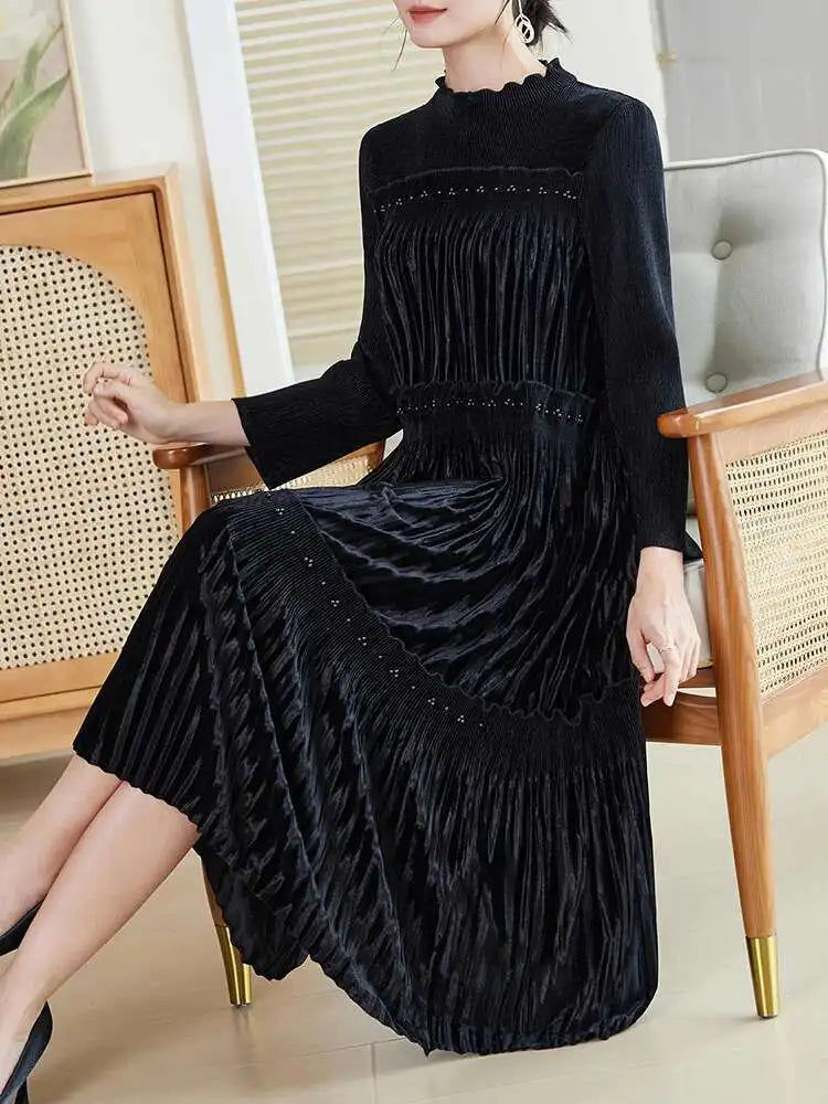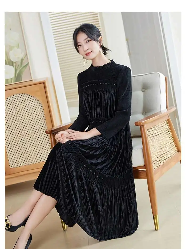 Step into the spotlight with our Elegant Velvet Pleated Long Dress, perfect for parties and special occasions!