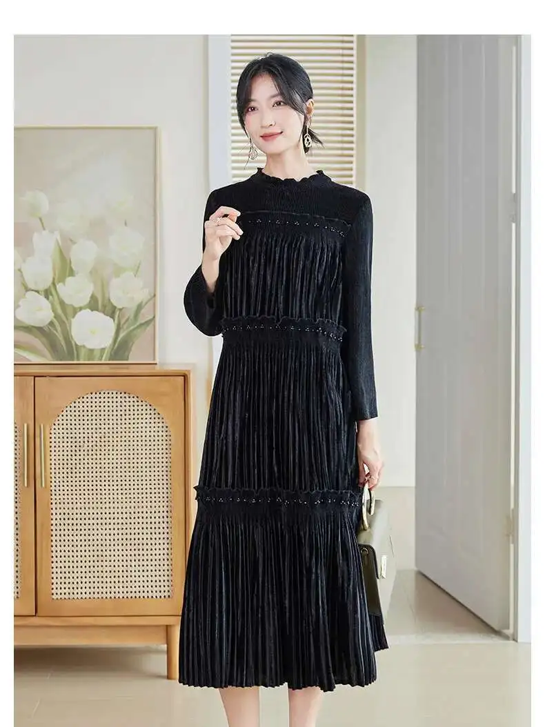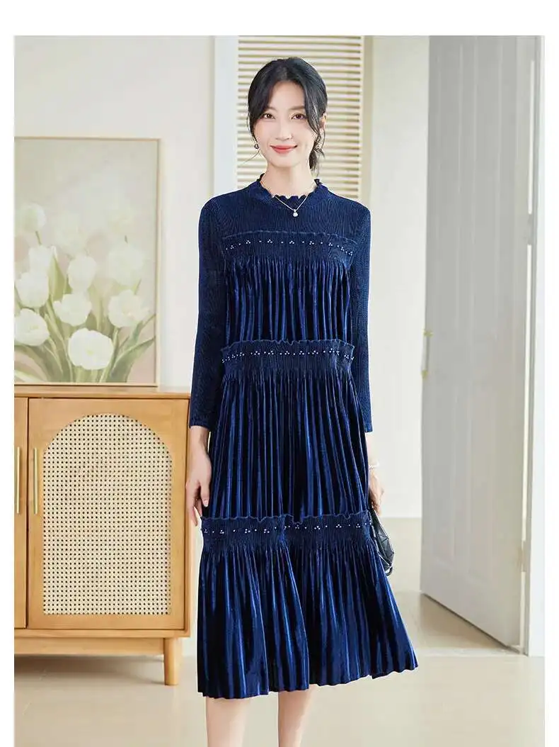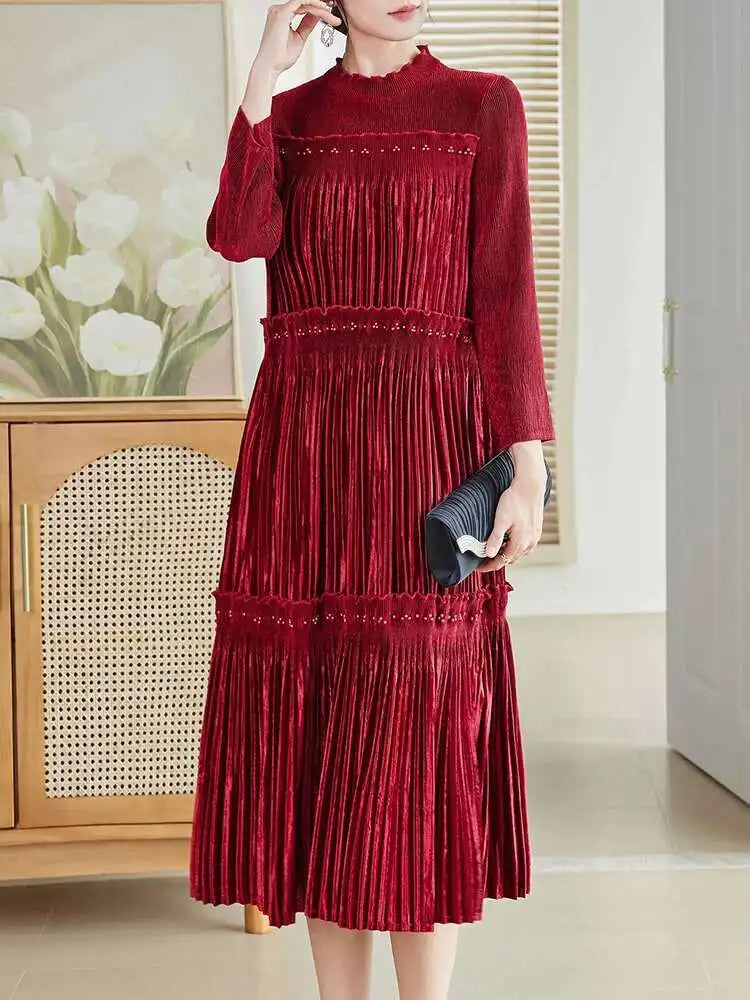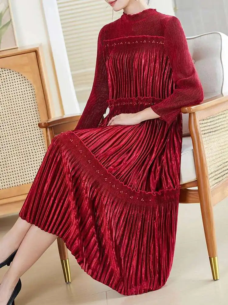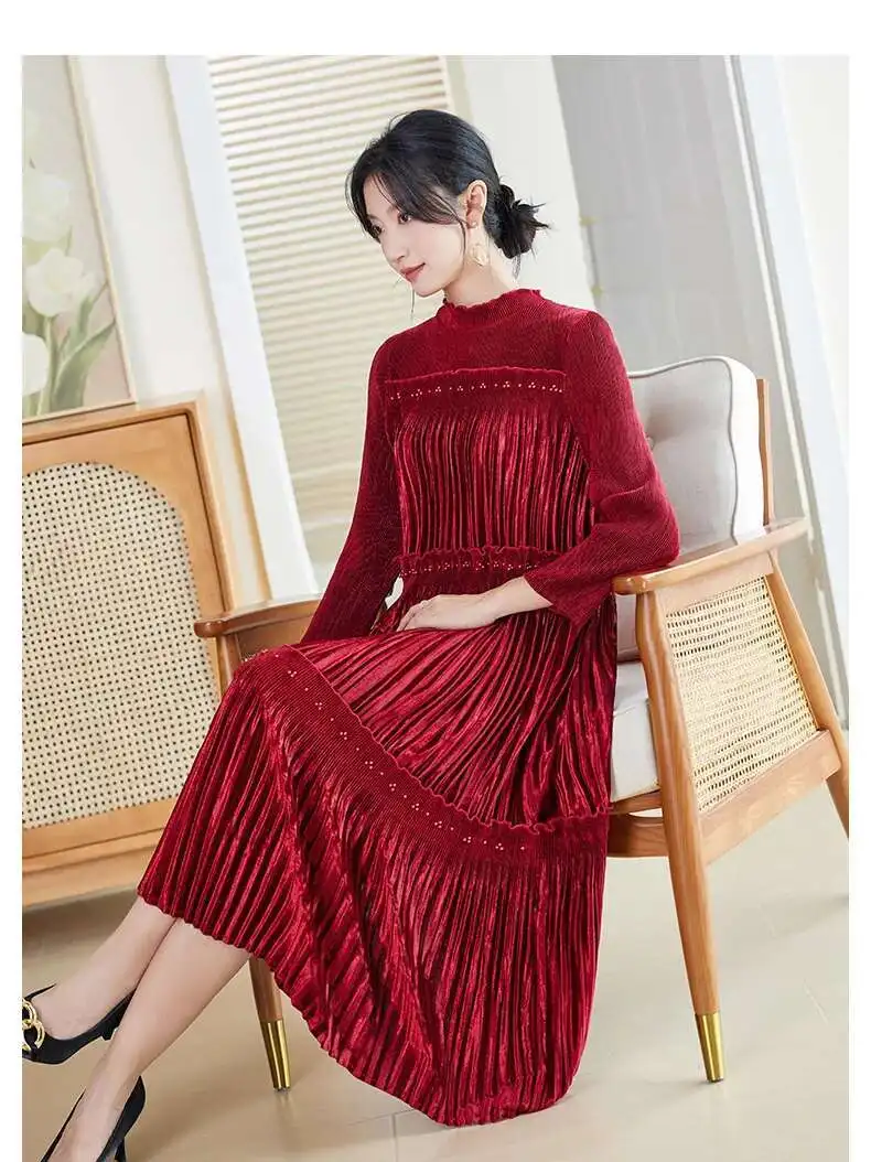 Step into the spotlight with our Elegant Velvet Pleated Long Dress, perfect for parties and special occasions!