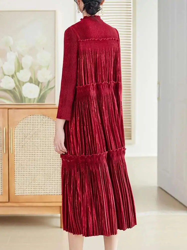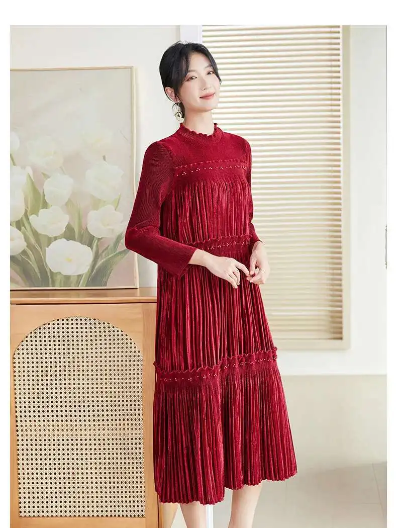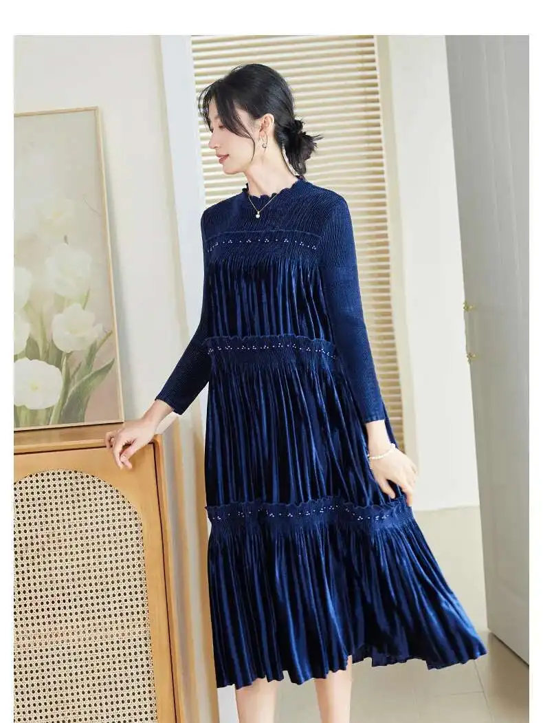 Why you'll love it: -Luxurious velvet fabric for a premium feel. -Stunning pleated design that flatters every figure. -Full sleeves for an elegant and stylish look. -Versatile A-line silhouette suitable for various body types. -Perfect choice for your Spring wardrobe this 2025!