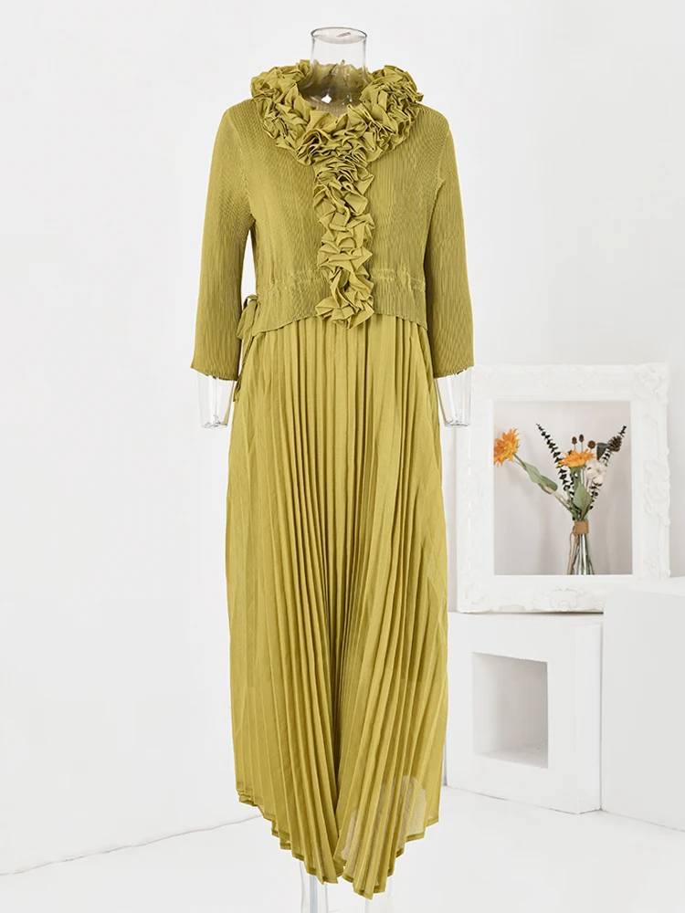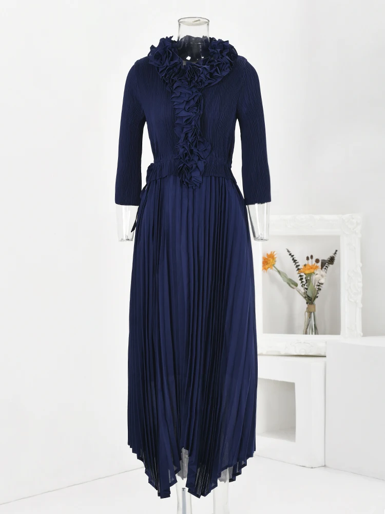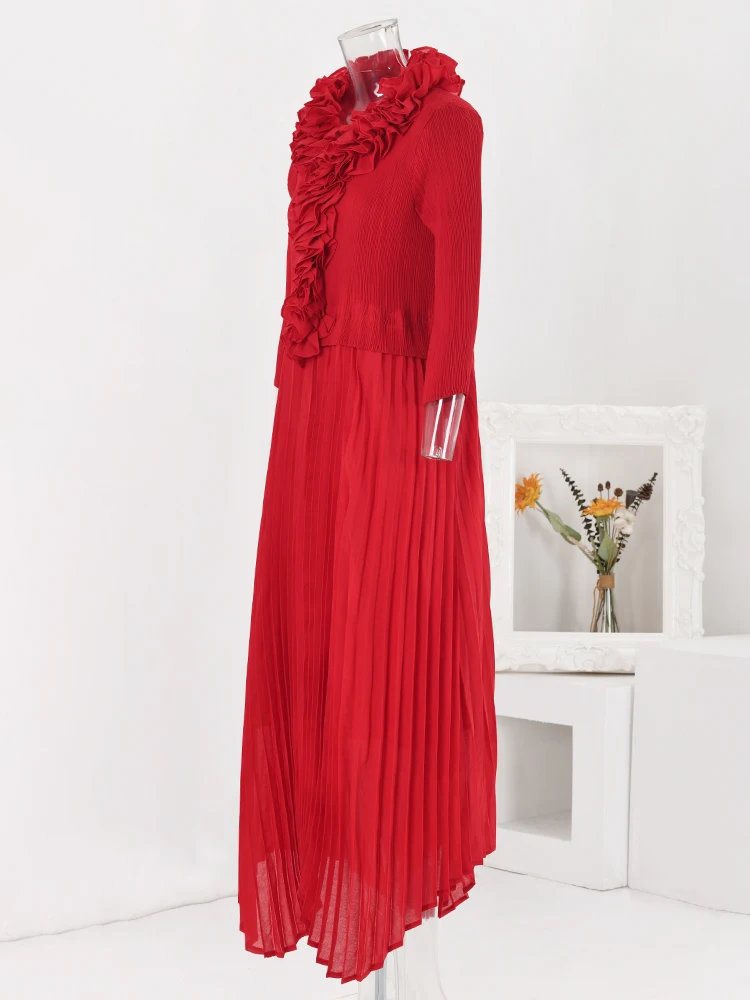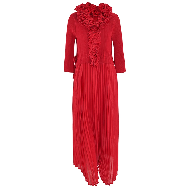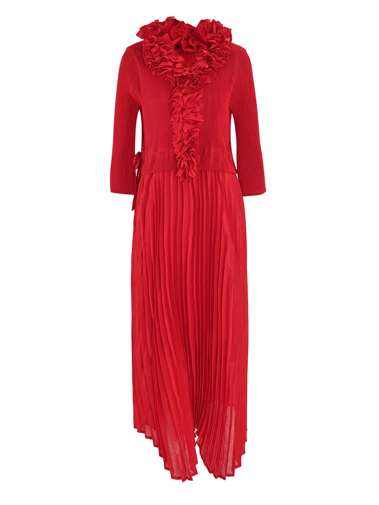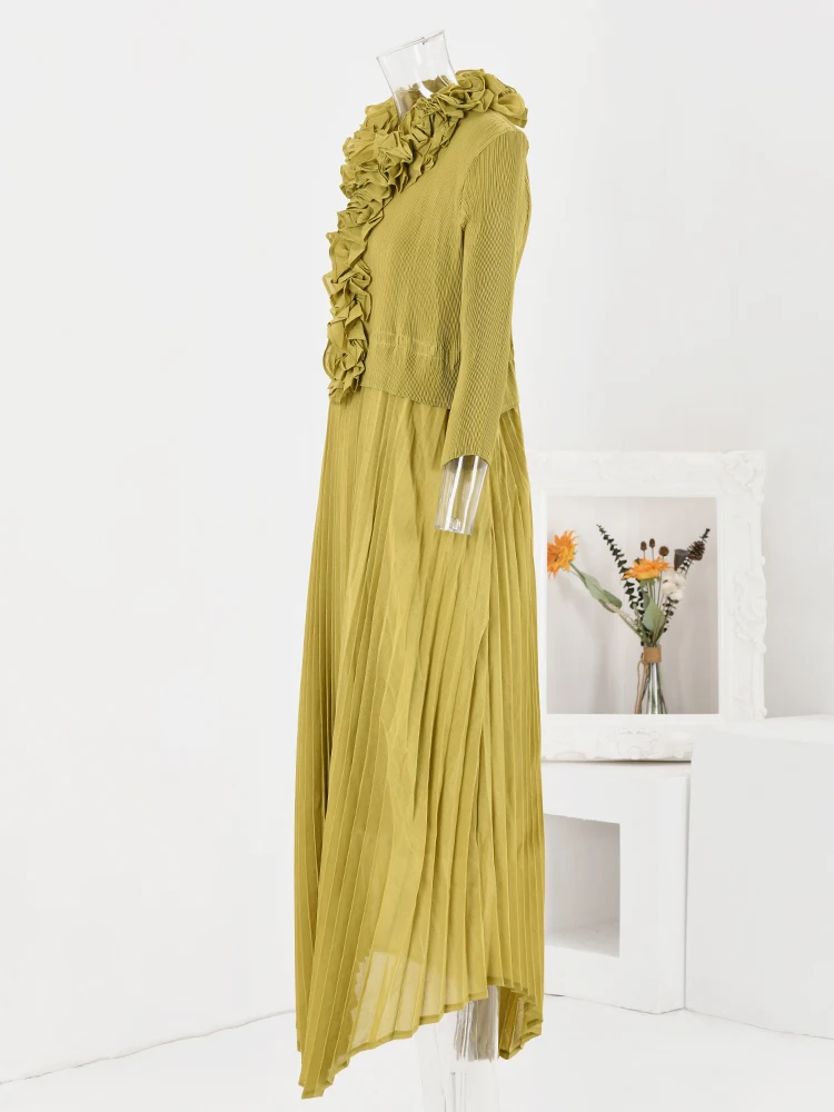 Introducing the LANMREM Elegant Women Pleated Long Dress, the perfect addition to your wardrobe. This fashion-forward dress features a unique floral patchwork design and an irregular hemline, making it a standout piece for any party or event. Made with high-quality materials, this dress offers both style and comfort. Its one-size-fits-all design ensures a perfect fit for a wide range of body types. Plus, with its versatile length and elegant details, you can easily dress it up or down for any occasion. Don't miss out on this limited time offer and add this best-selling dress to your collection today.