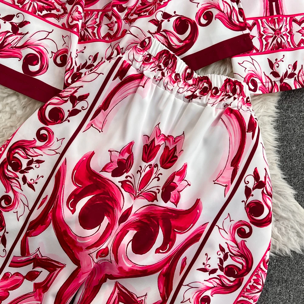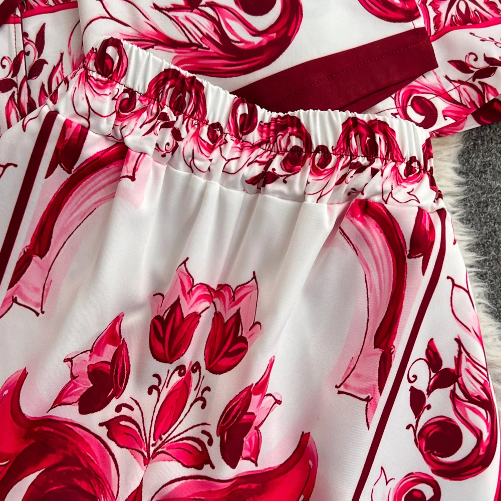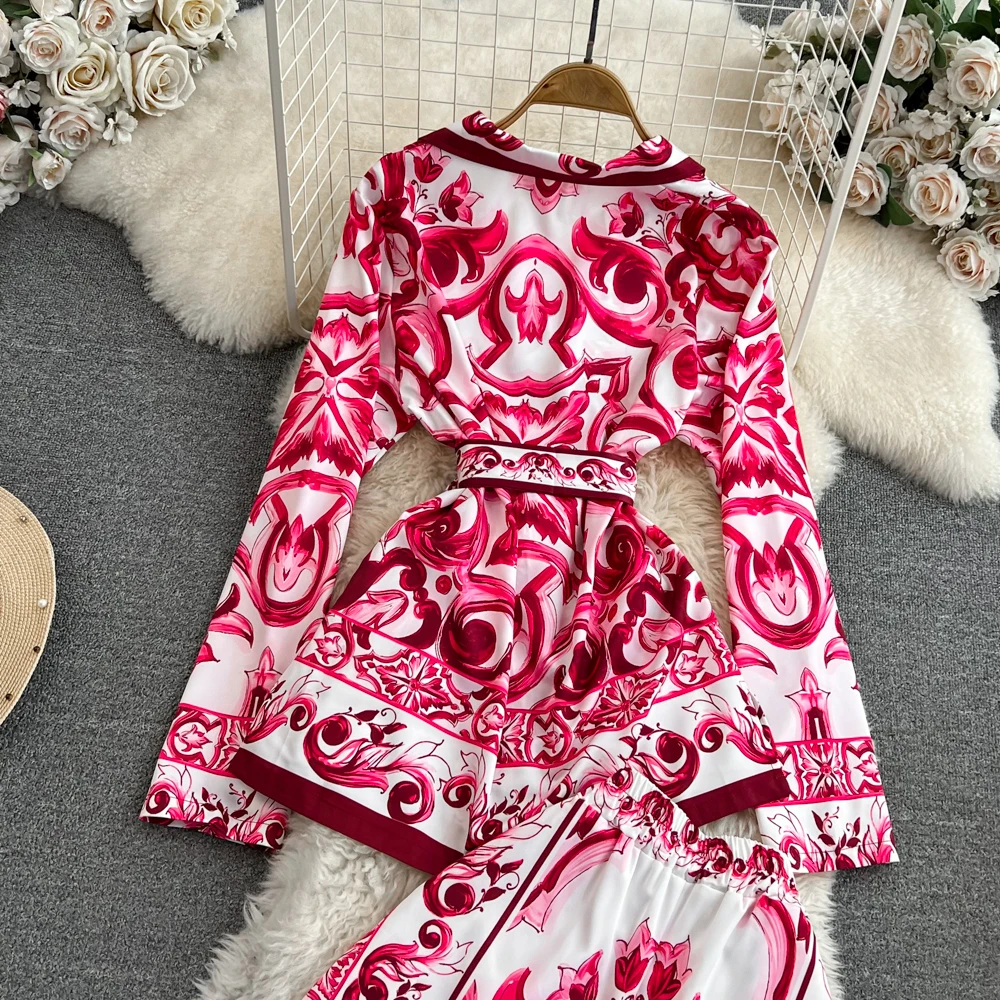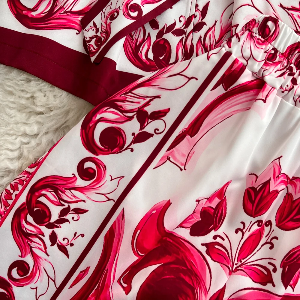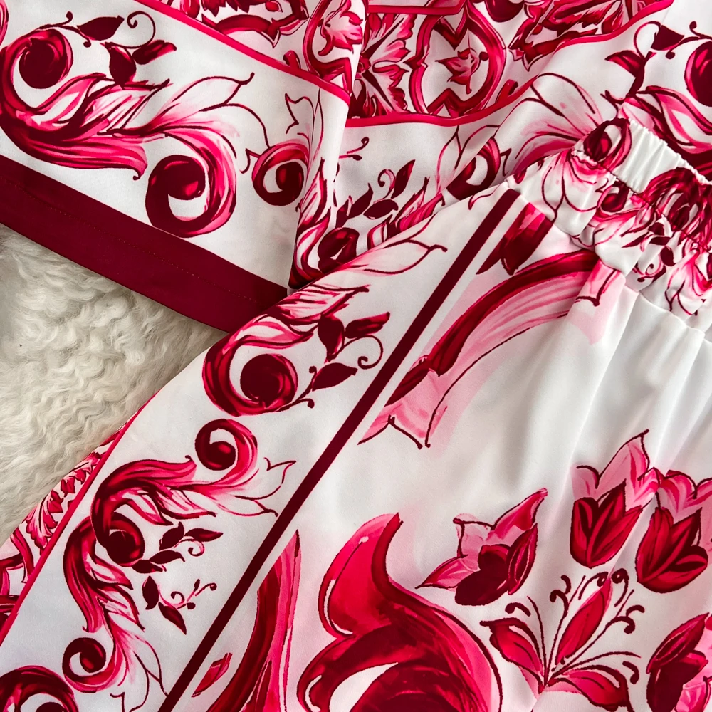 Upgrade your wardrobe with our JAMERARY Autumn Porcelain Floral Two Piece Set. This premium set features a stunning red and white floral design that will make you stand out from the crowd. The long sleeve shirt and skinny pants create a perfect fit for any body type. Made with high-quality porcelain fabric, this set is perfect for any occasion. With multiple payment options and fast shipping, you can have this exclusive set in your hands in no time. Don't miss out on this limited time best seller and elevate your style on the go. Order now and experience the unique benefits of our JAMERARY Autumn Porcelain Floral Two Piece Set.