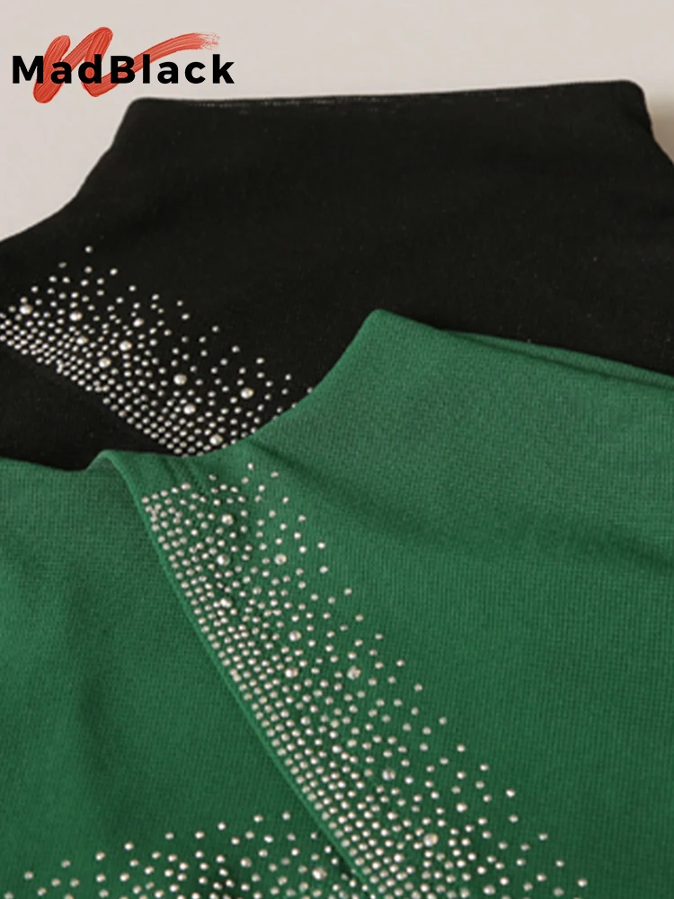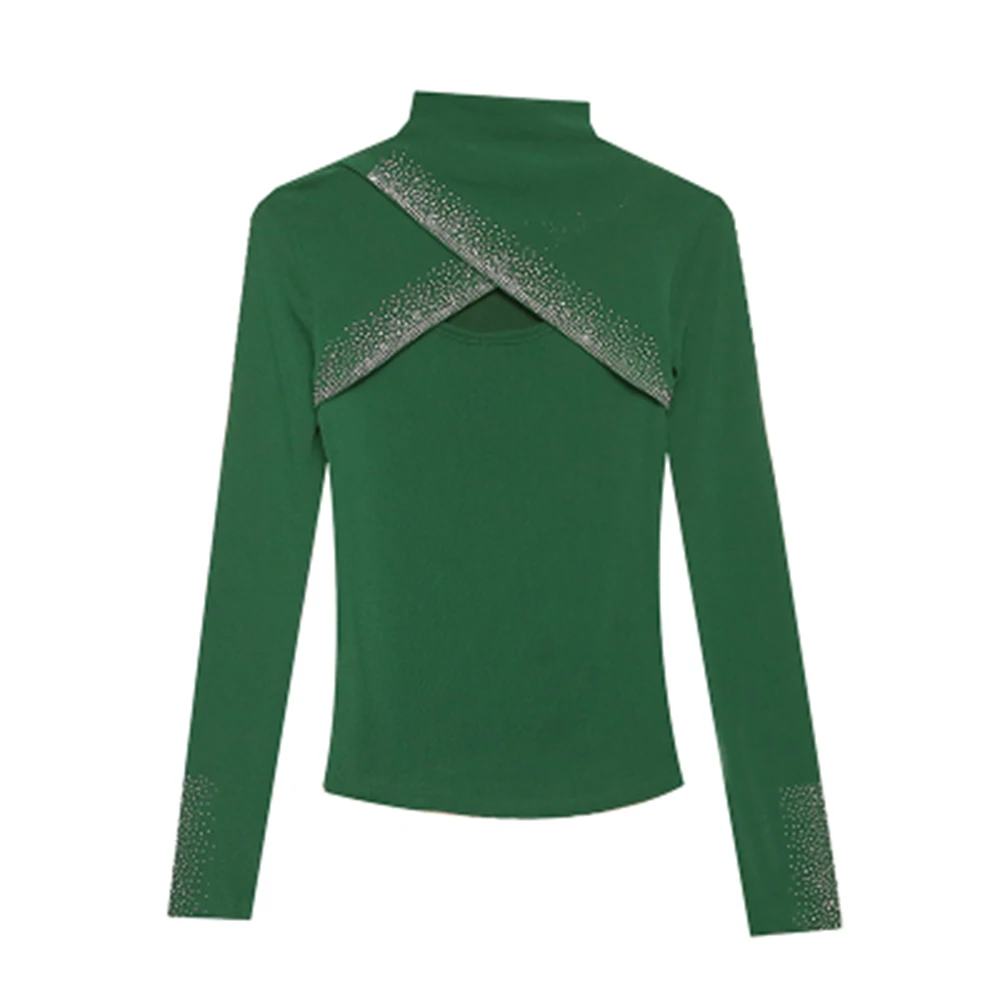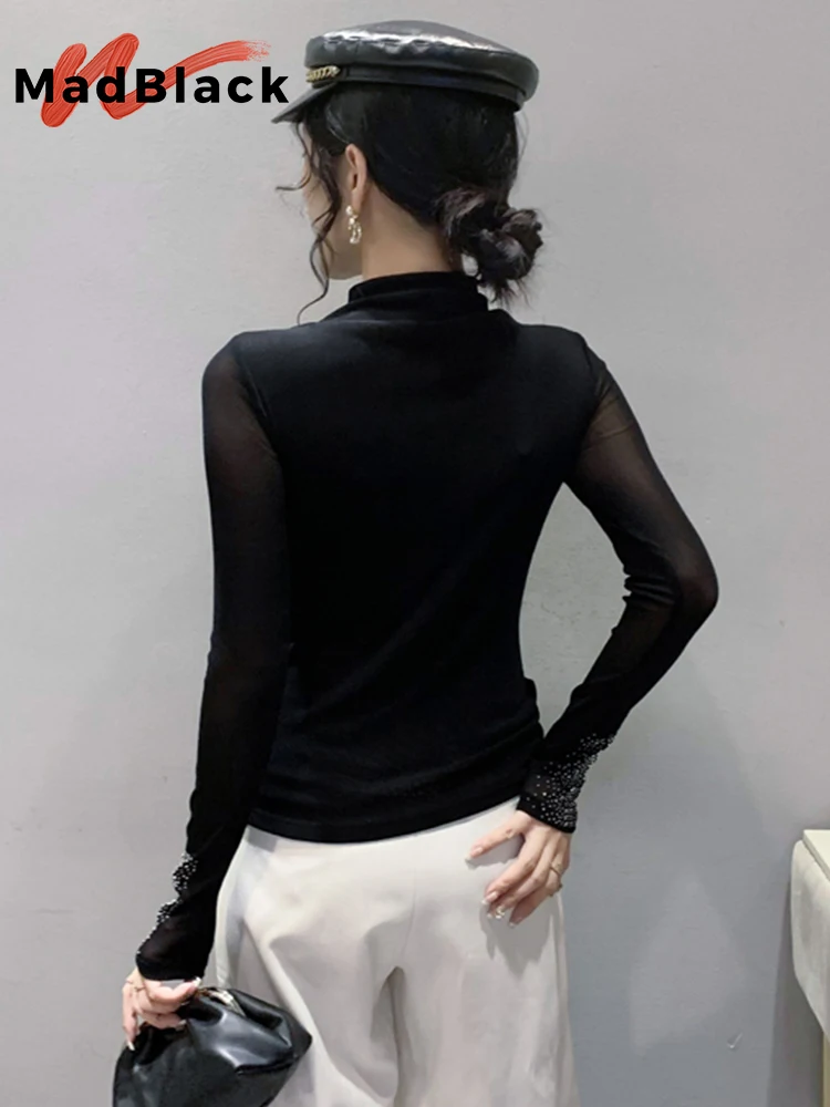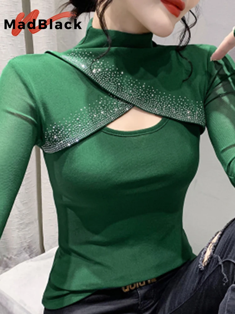 Introducing the MadBlack Autumn New High-Necked Long-Sleeved Hollow Out Glitter Beaded T-shirt, the perfect addition to your fall wardrobe. Made with a blend of cotton and polyester, this slim-fitting top is both comfortable and stylish. Its high-necked design and long sleeves provide extra warmth for those chilly autumn days, while the hollow out detailing and glitter beaded accents add a touch of glamour. This limited time offer is a must-have for any fashion-forward woman looking for a premium and exclusive top. Don't miss out on this best-selling t-shirt that will solve all your fall fashion problems!