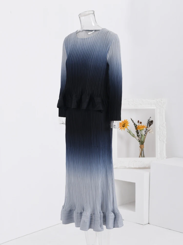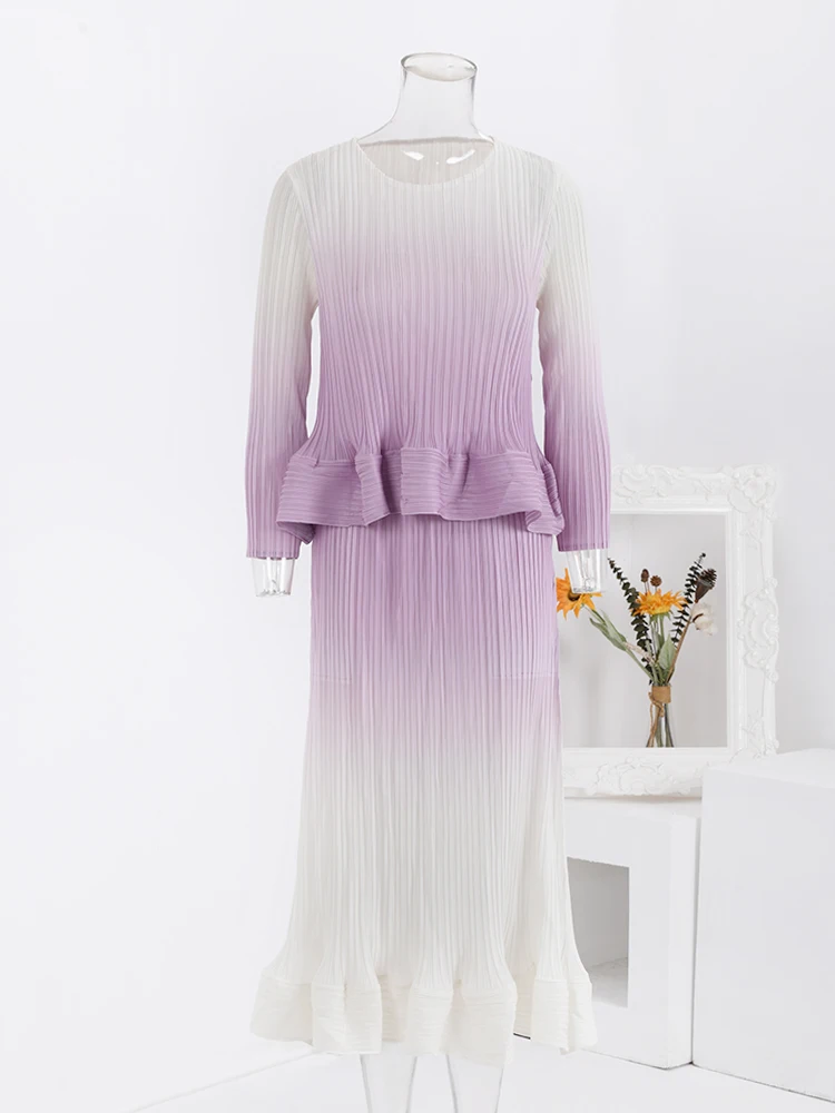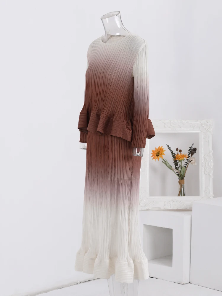 Gradient Pleated 2-Piece Set: LANMREM Fashion for Women - Spring 2024 Collection