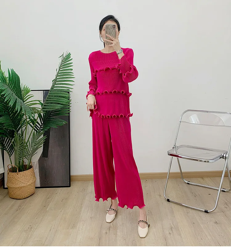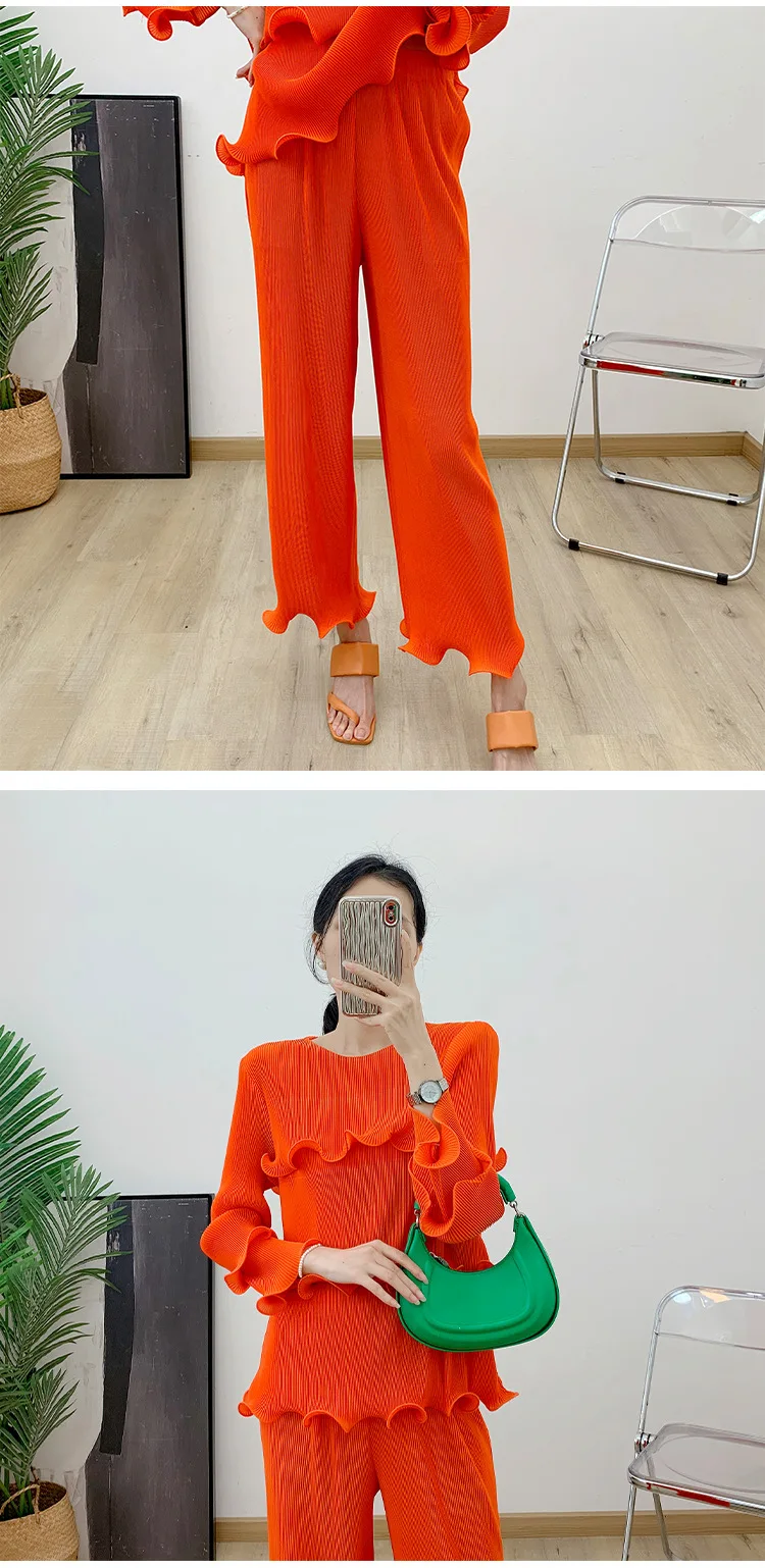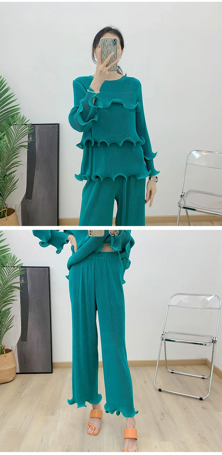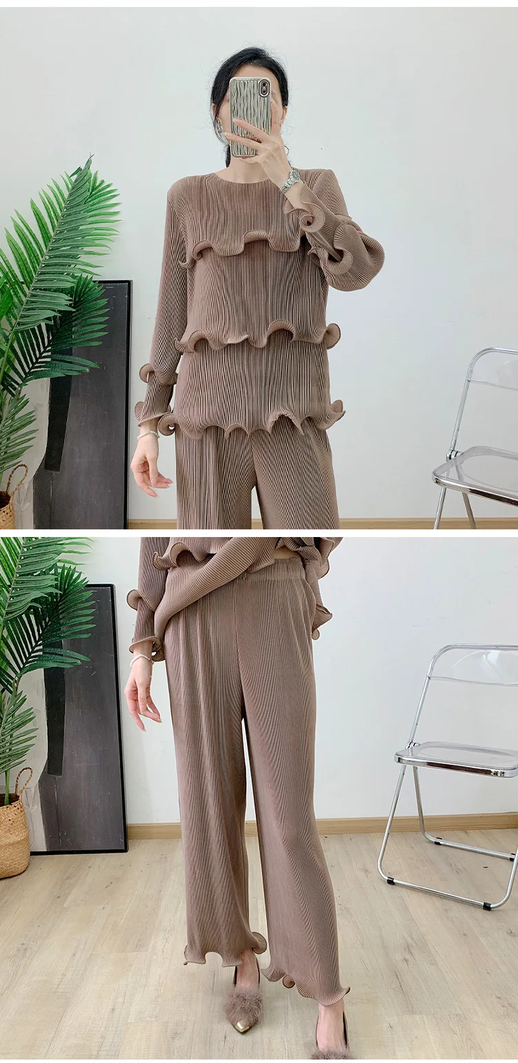 Add a fashionable flair to your wardrobe with this versatile 2-piece set. Perfect for any occasion, whether you're heading to brunch with friends or a night out on the town. The pleated design adds a trendy touch, while the wide-leg trousers ensure comfort and style all day long.