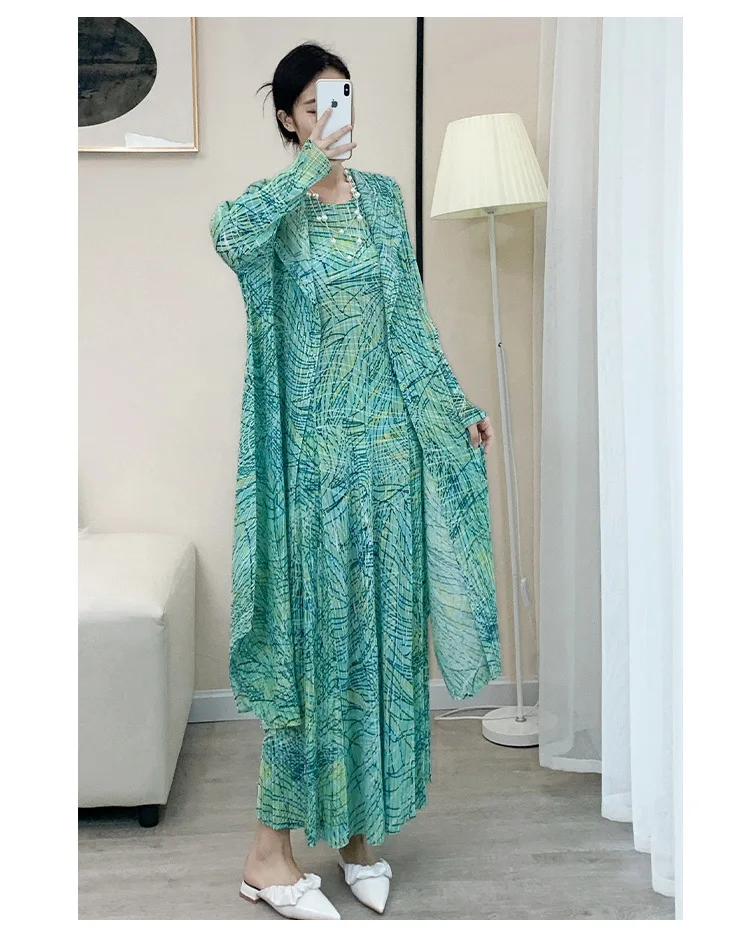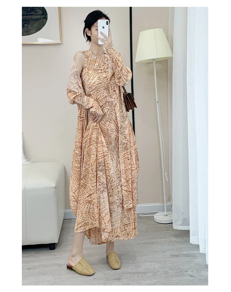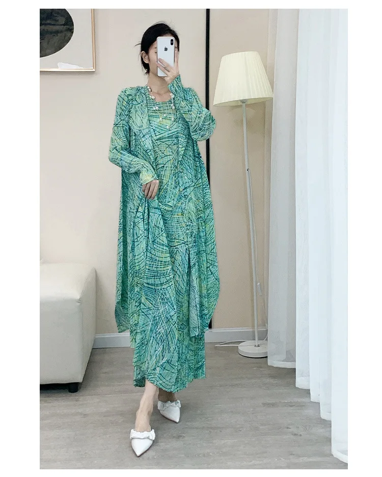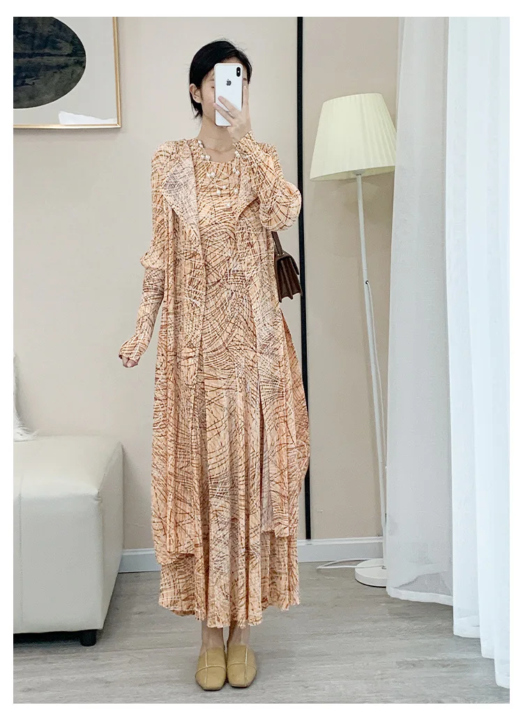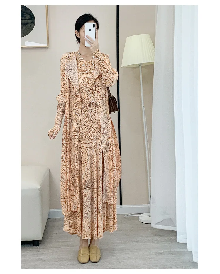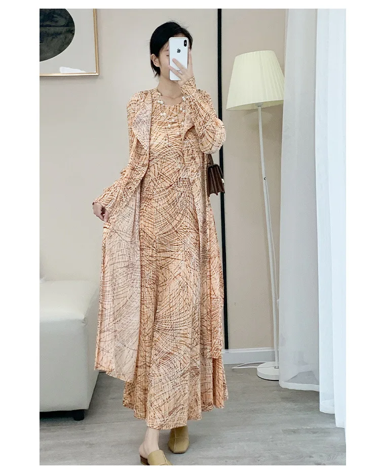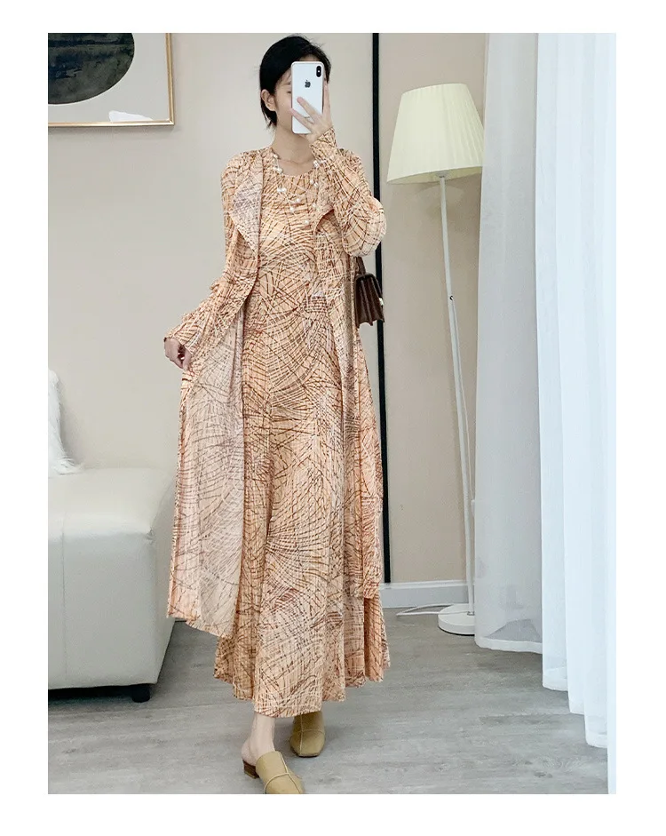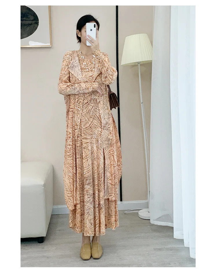 Elevate Your Style Game! 🌟 🌸 What it is - Stay ahead in the fashion game with our trendy pleated two-piece set featuring a round collar dress and a lapel full sleeve coat. Perfect for a stylish and effortless look.