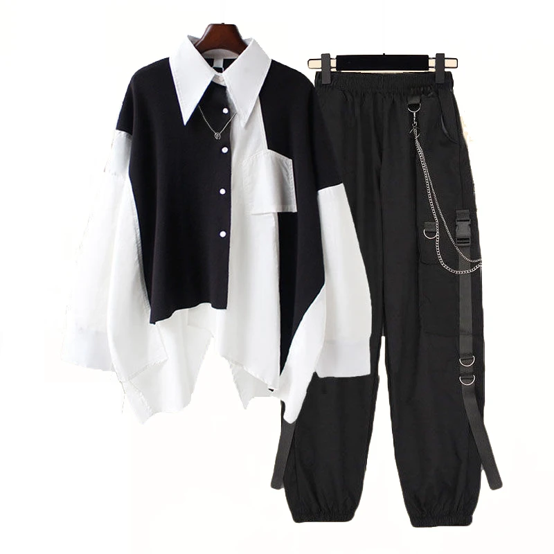 Introducing our latest addition to our women's streetwear collection - the New Women Streetwear Two-piece Suit! This set includes a stylish Splice Chain Long Sleeve top and a trendy Ribbon Chain Pants, perfect for creating a unique and edgy look. Made with high-quality materials, this suit is not only fashionable but also comfortable to wear. The Harajuku Cargo Pants add a touch of urban flair, making it a must-have for any fashion-forward woman. With this two-piece set, you'll be ready to take on the day in style. Don't miss out on this limited time offer - get yours now and elevate your wardrobe to the next level!