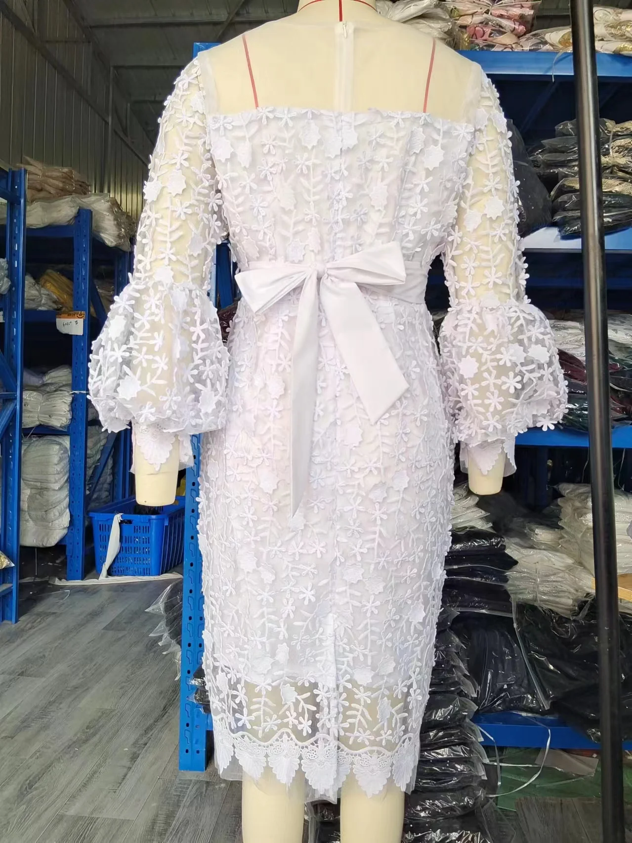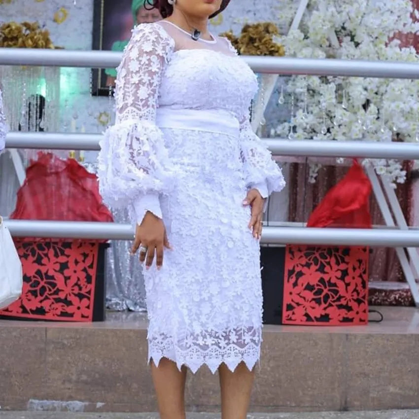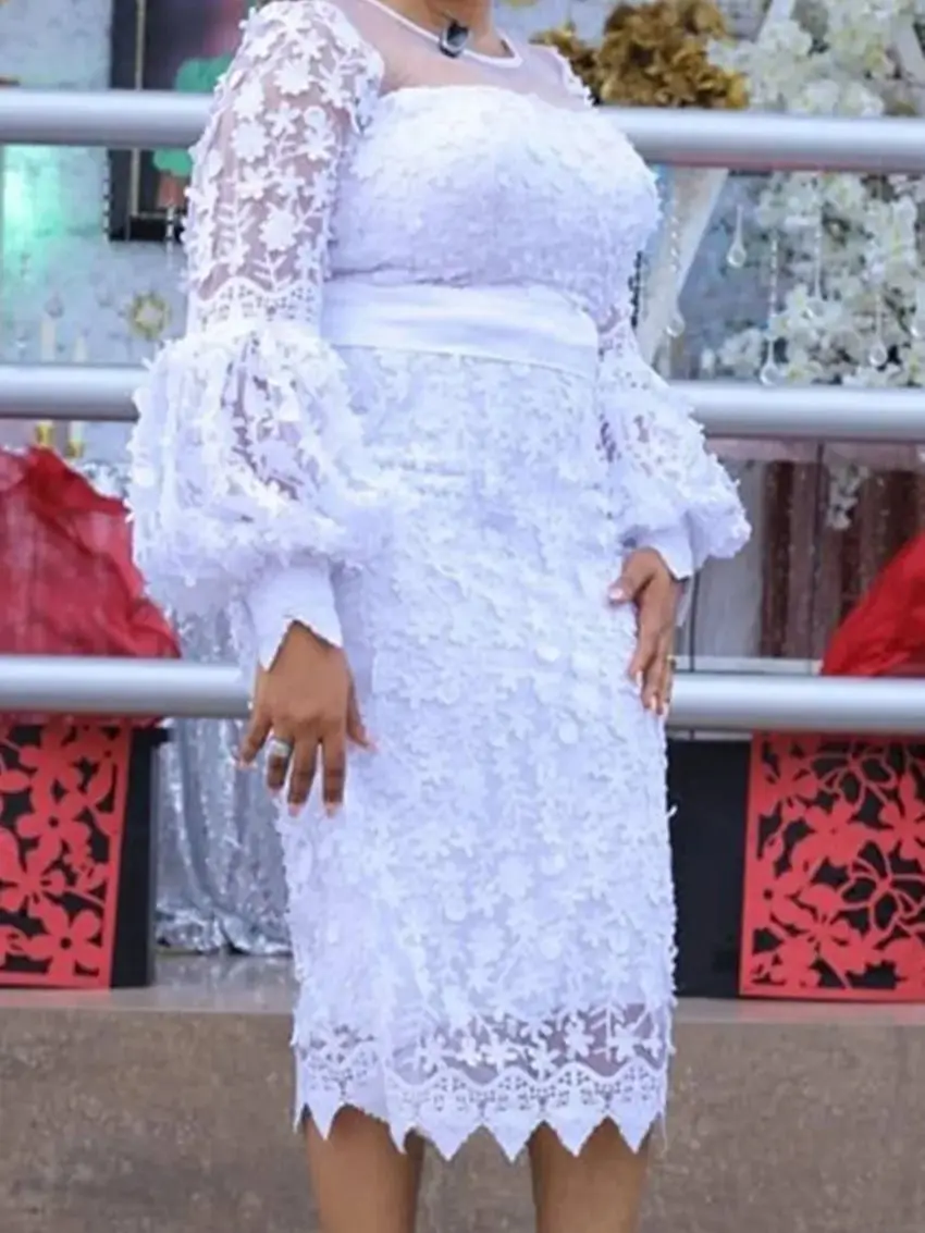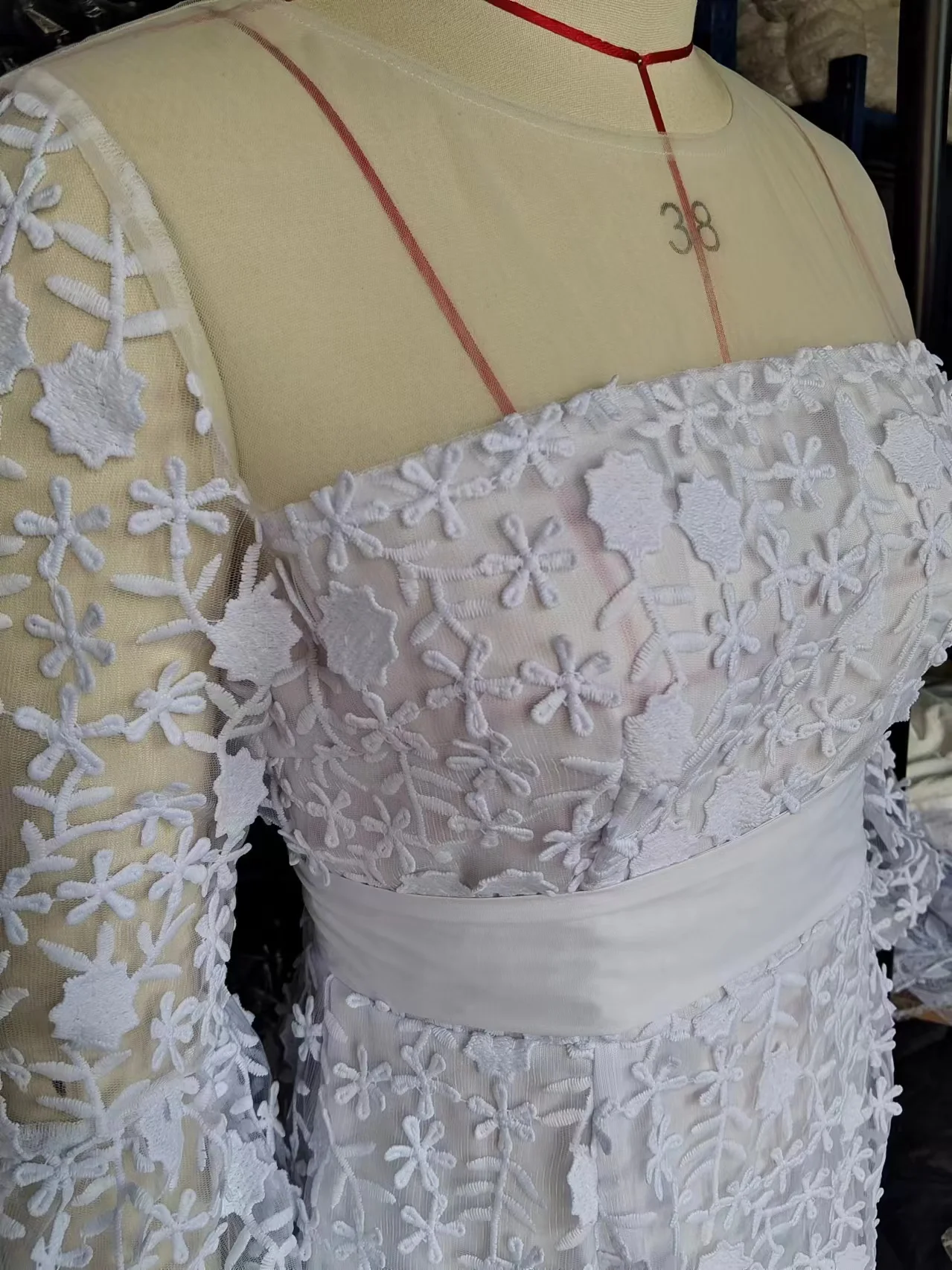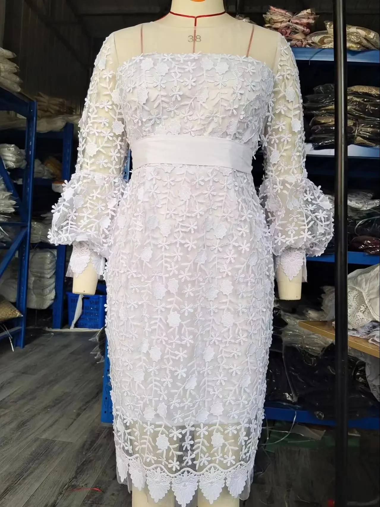 🌟 What it is - A stunning, high-end lace dress featuring delicate embroidery, a round neck, and elegant bubble sleeves for a touch of sophistication.