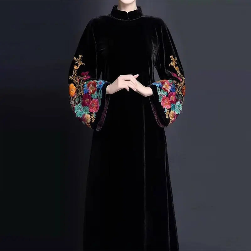 Make a statement this autumn with our High-End Velvet Embroidered Women's Dress, designed for elegance and luxury.
