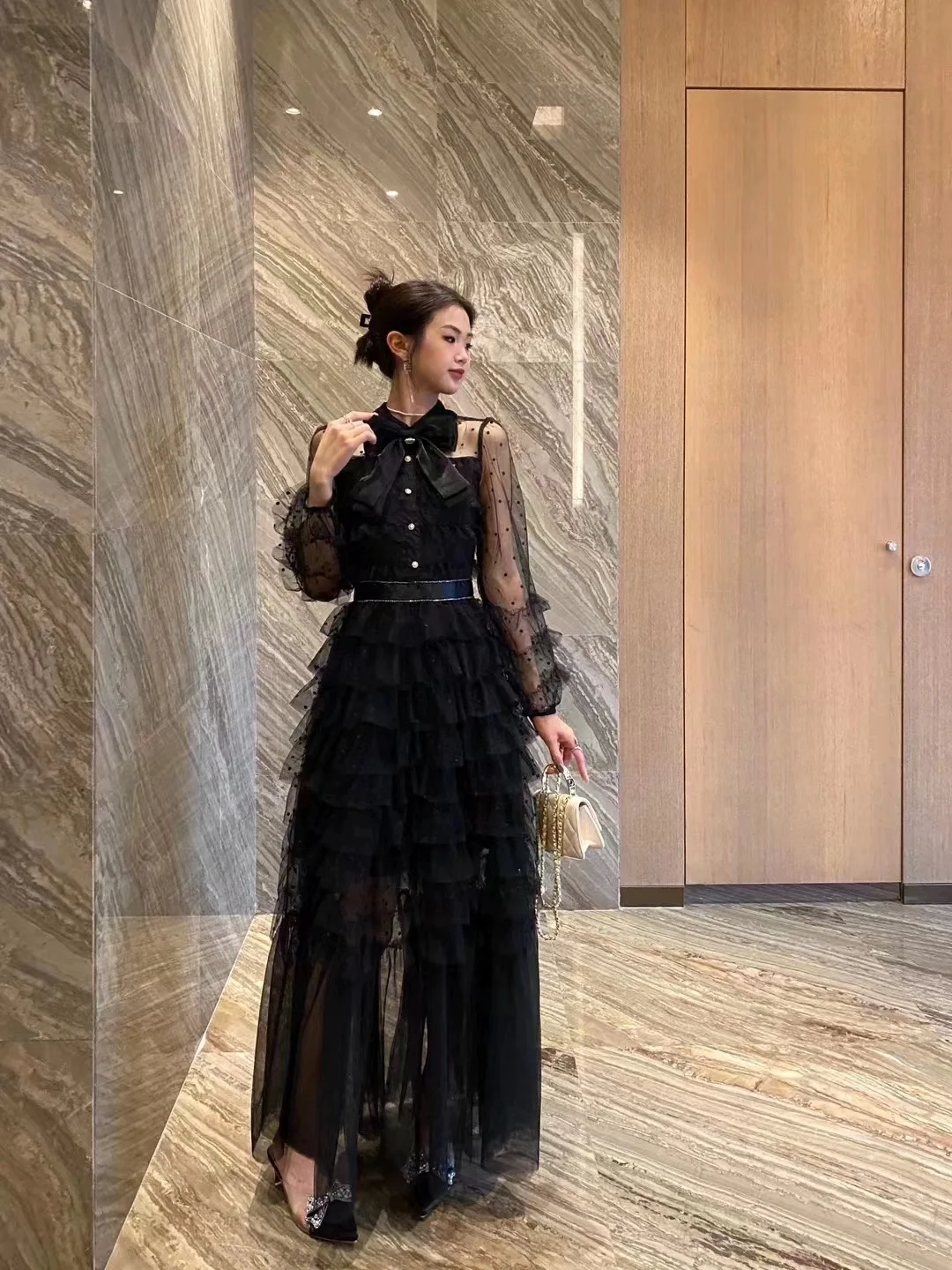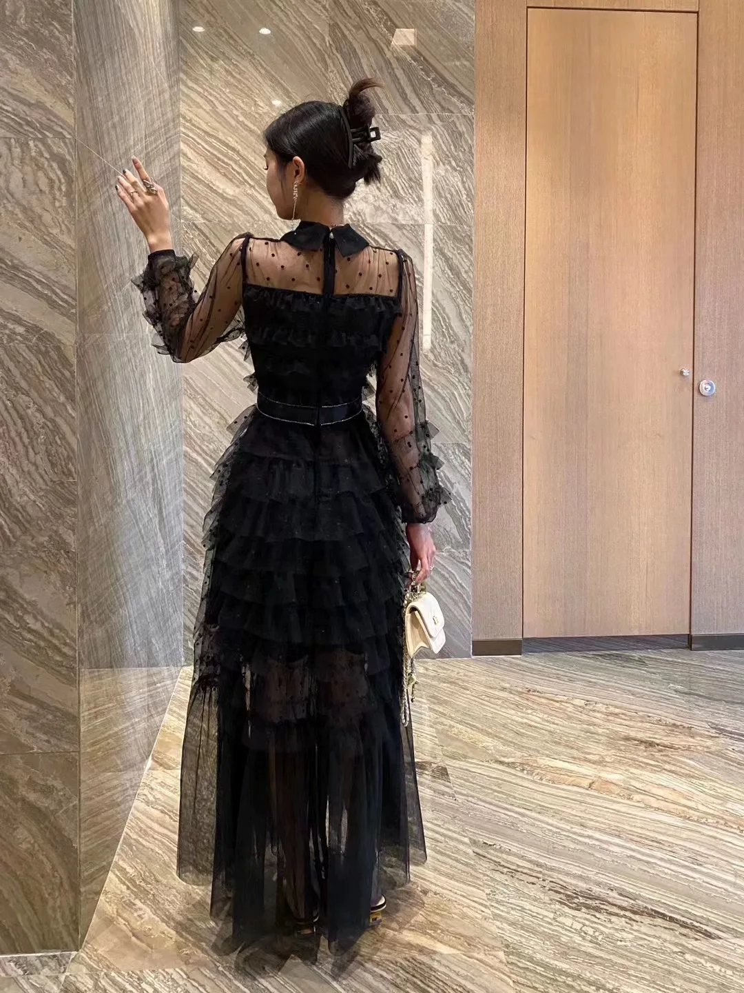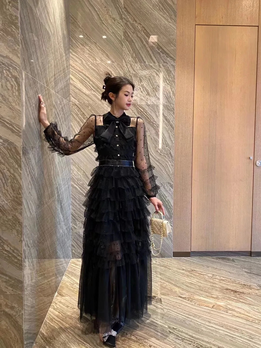 JAMERARY Runway Designer Summer Polka Dots Holiday Cake Dress Women Mesh Tulle Bow Lapel Evening Party Prom Vestidos