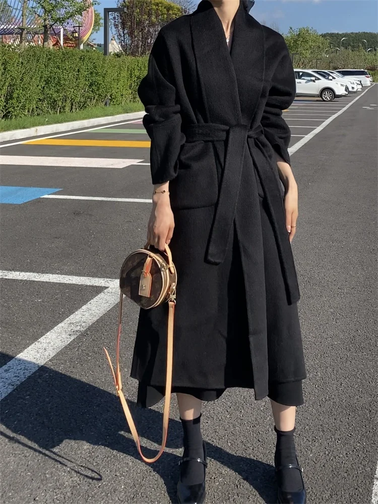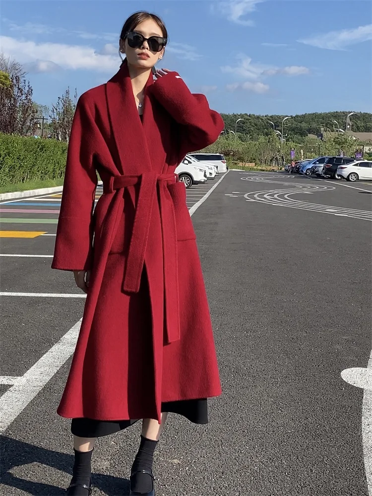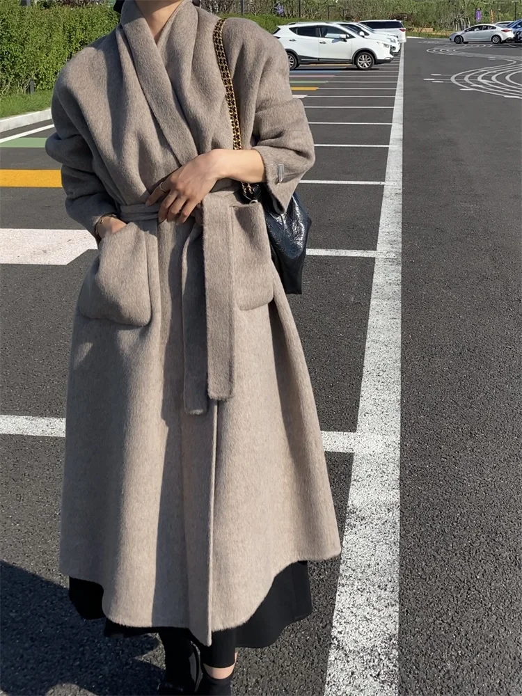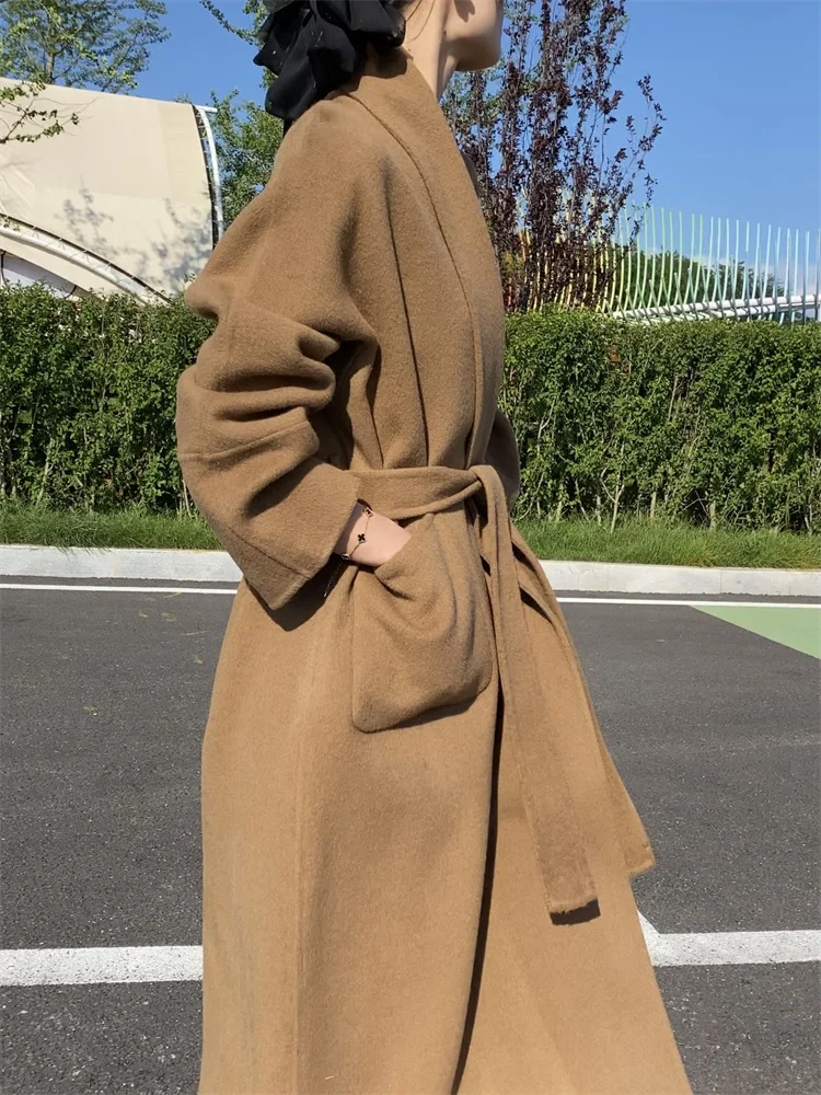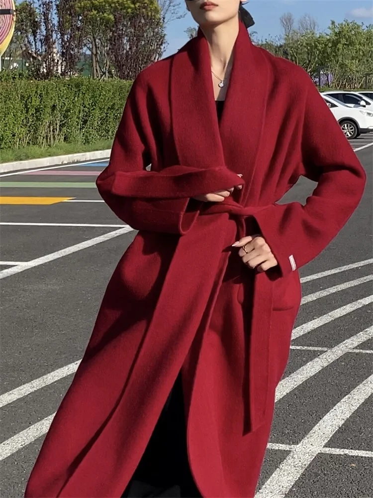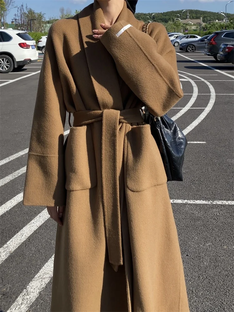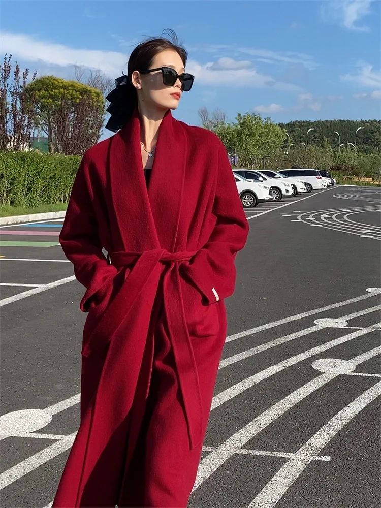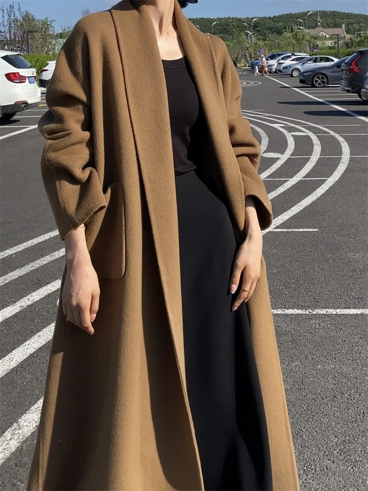 Introducing our premium Big Turn-Down Collar Bathrobe Style Double Sided Wool Coat for women. Made with 90% wool and 10% camel hair, this coat is not only stylish but also warm and cozy. Available in four colors, including a luxurious blend of 85% wool and 15% rabbit fur. Our coat is designed with a loose fit for a comfortable and effortless look. Perfect for the winter season, this coat is a must-have for any fashion-forward woman. Limited time offer, so get yours now!