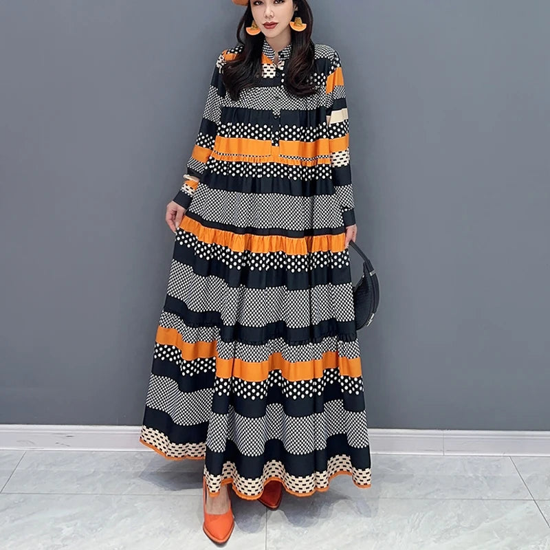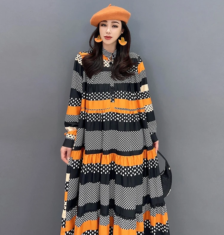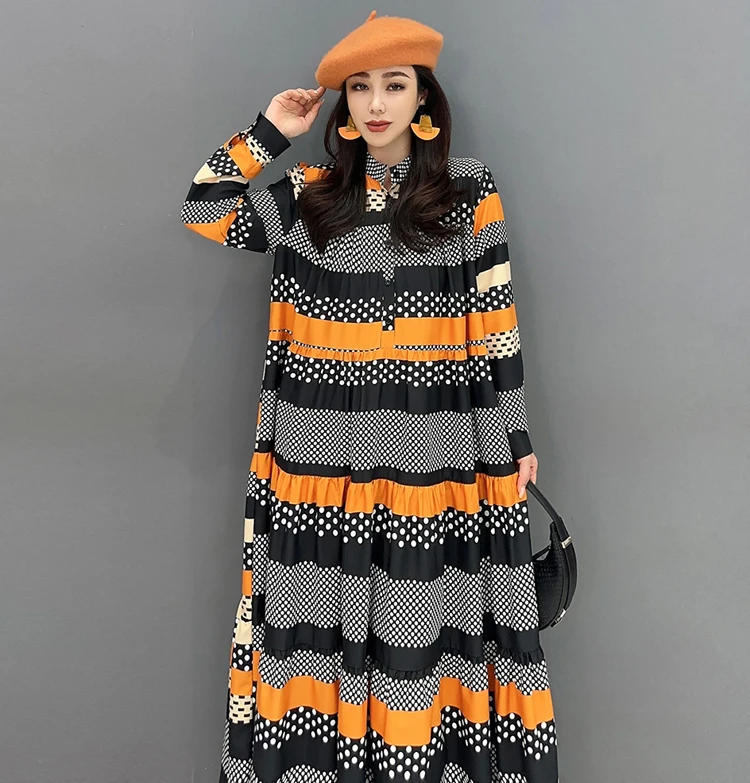 Introducing our newest arrival, the JJXD653 Full Sleeve New Korean Style Woman Long Striped Dress! This dress is the perfect combination of fashion and comfort, with its loose fit and cute design. Made with premium materials, it's a must-have for any stylish woman. Say goodbye to the struggle of finding fashionable clothing in larger sizes, our store is dedicated to providing the best options for all body types. With our fast shipping and easy return policy, you can shop with confidence. Don't miss out on this limited time offer, order now and experience the best shopping experience with us!