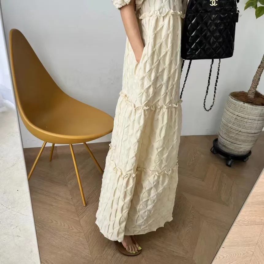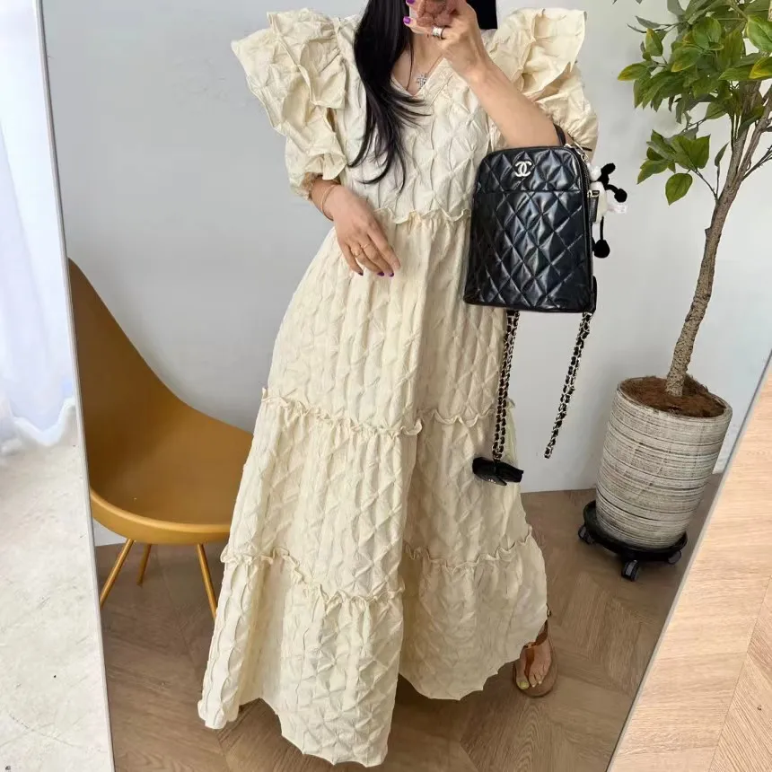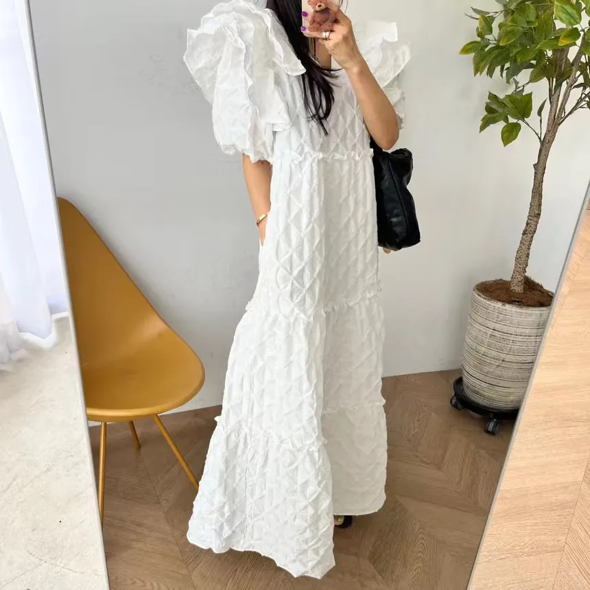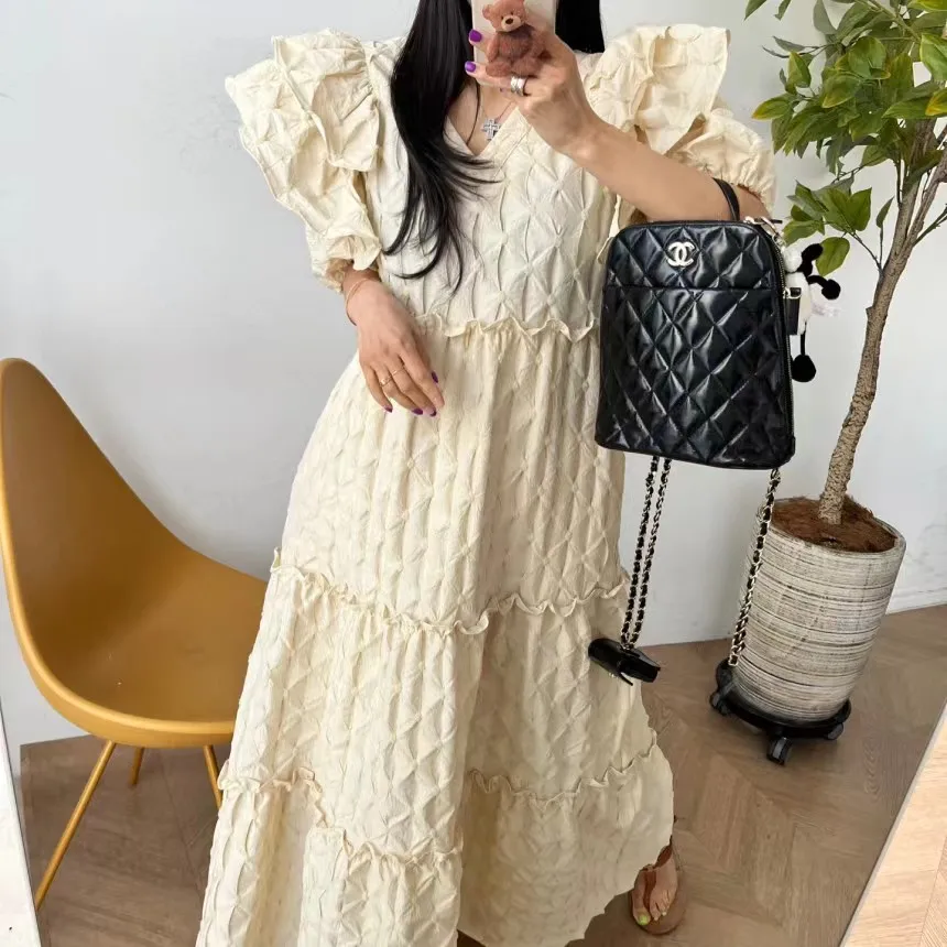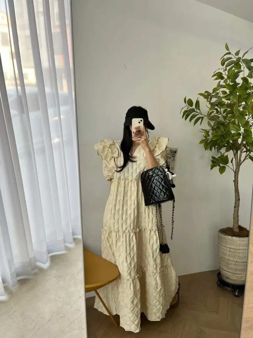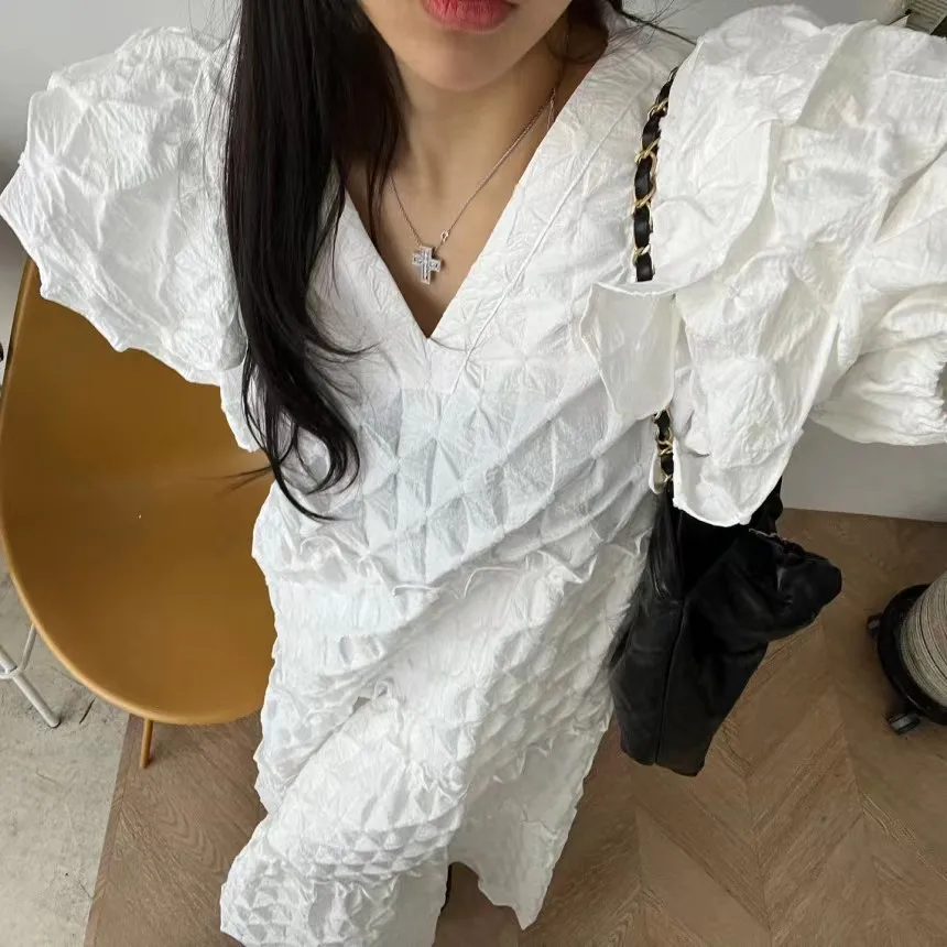 Elevate your summer style with our Korean Summer White V Neck Ruffles Midi Dress - a flawless blend of comfort and elegance that's perfect for every occasion.