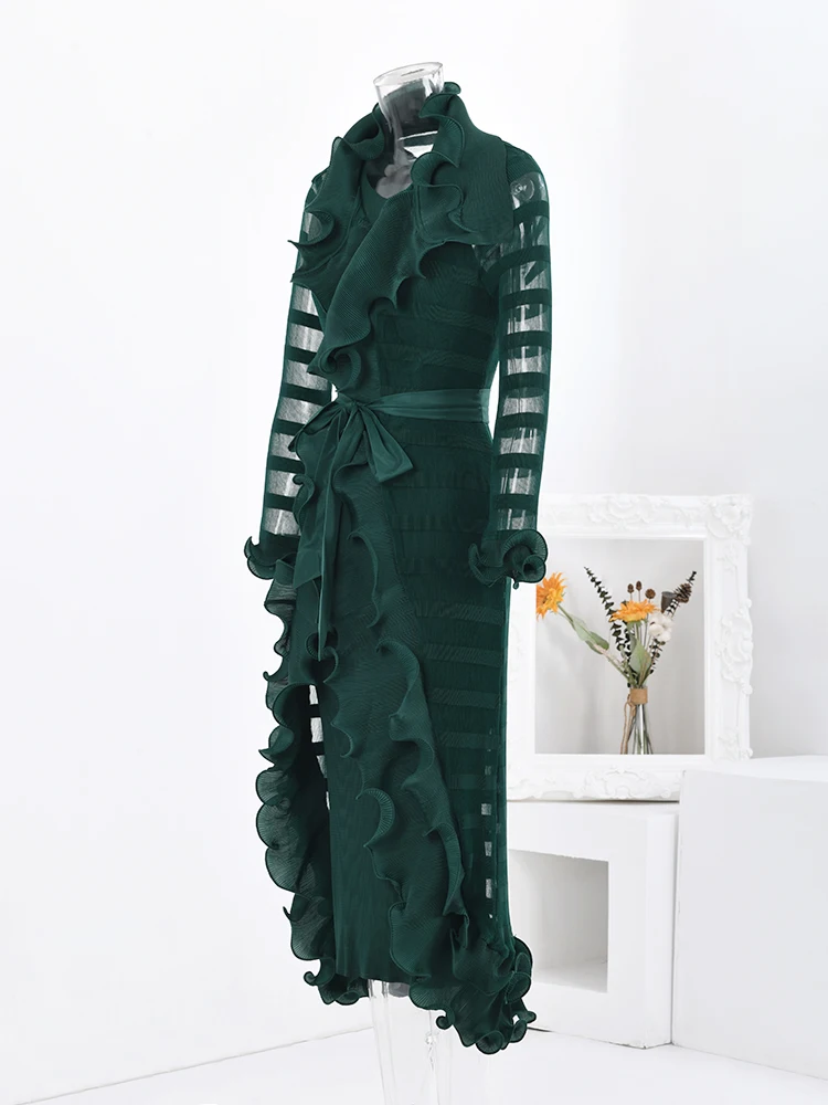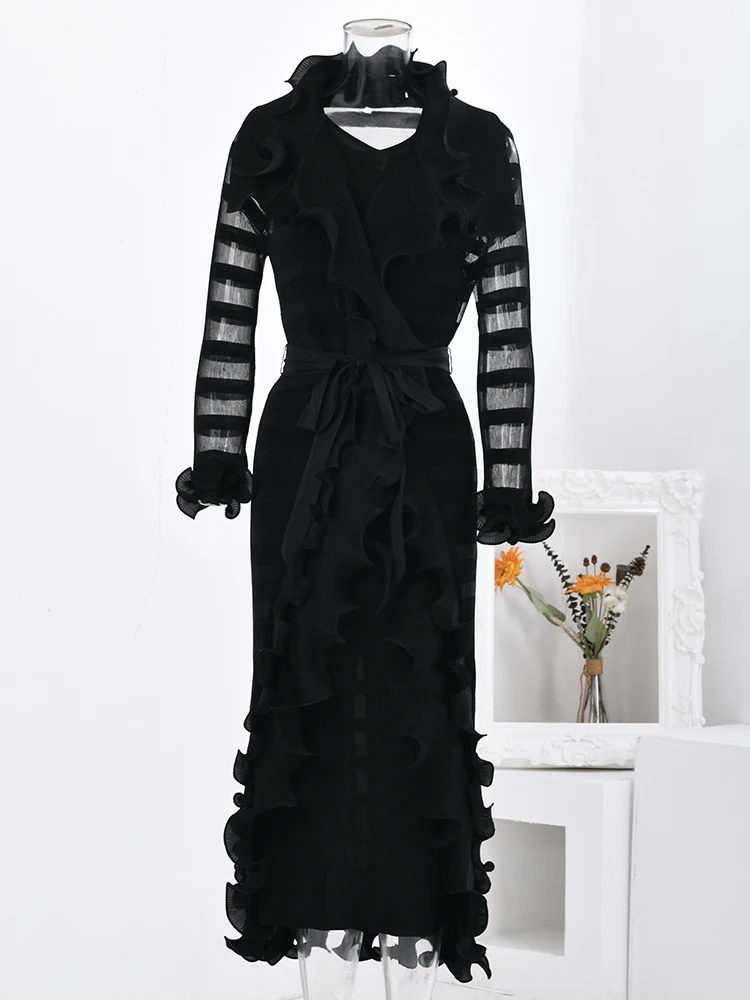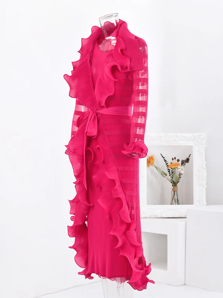 Introducing the LANMREM Fashion 2 Pieces Pleated Dress, the must-have item for your wardrobe this season. This stunning dress features ruffles and a spliced belt, adding a touch of elegance and sophistication to your look. With long sleeves and a long length, it's perfect for any party or event. Available in one size, it fits a range of body types. Made with high-quality materials, this dress is both comfortable and stylish. Don't miss out on this exclusive piece for the 2024 autumn season. Upgrade your wardrobe with the LANMREM Fashion 2 Pieces Pleated Dress and stand out from the crowd.