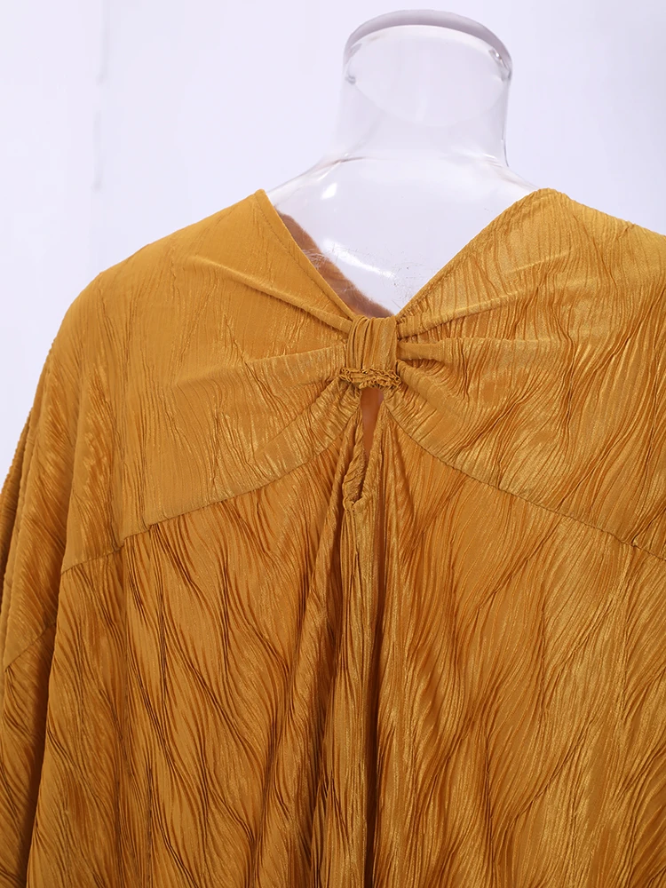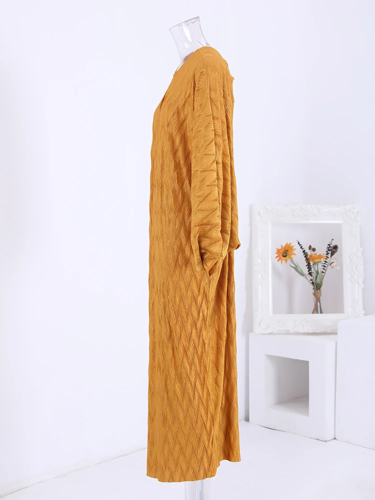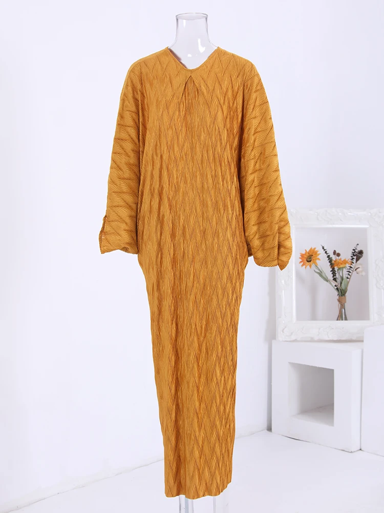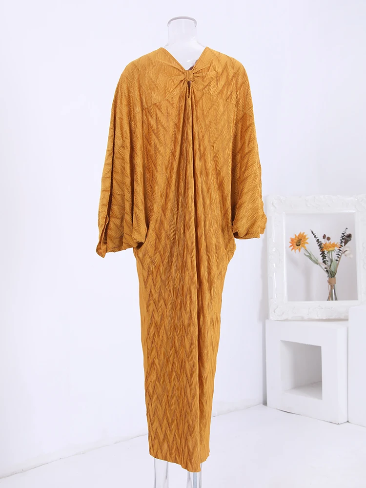 Introducing our latest addition to our collection, the LANMREM 2024 Spring New Pleated Long Dress. This elegant dress is perfect for any party or special occasion, with its solid color and batwing sleeves adding a touch of sophistication. Made with high-quality materials, this dress offers a perfect fit and comfort for all-day wear. The pleated design adds a unique touch, making it stand out from other dresses. Available in one size, with a length of 138cm and sleeve length of 66cm, this dress is suitable for all body types. Don't miss out on this limited time offer and add this best-selling dress to your wardrobe today!