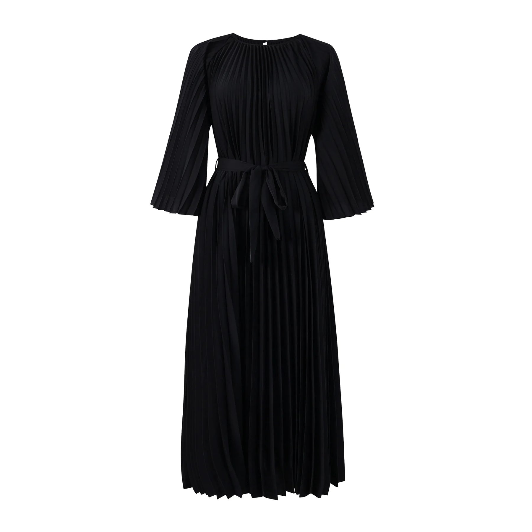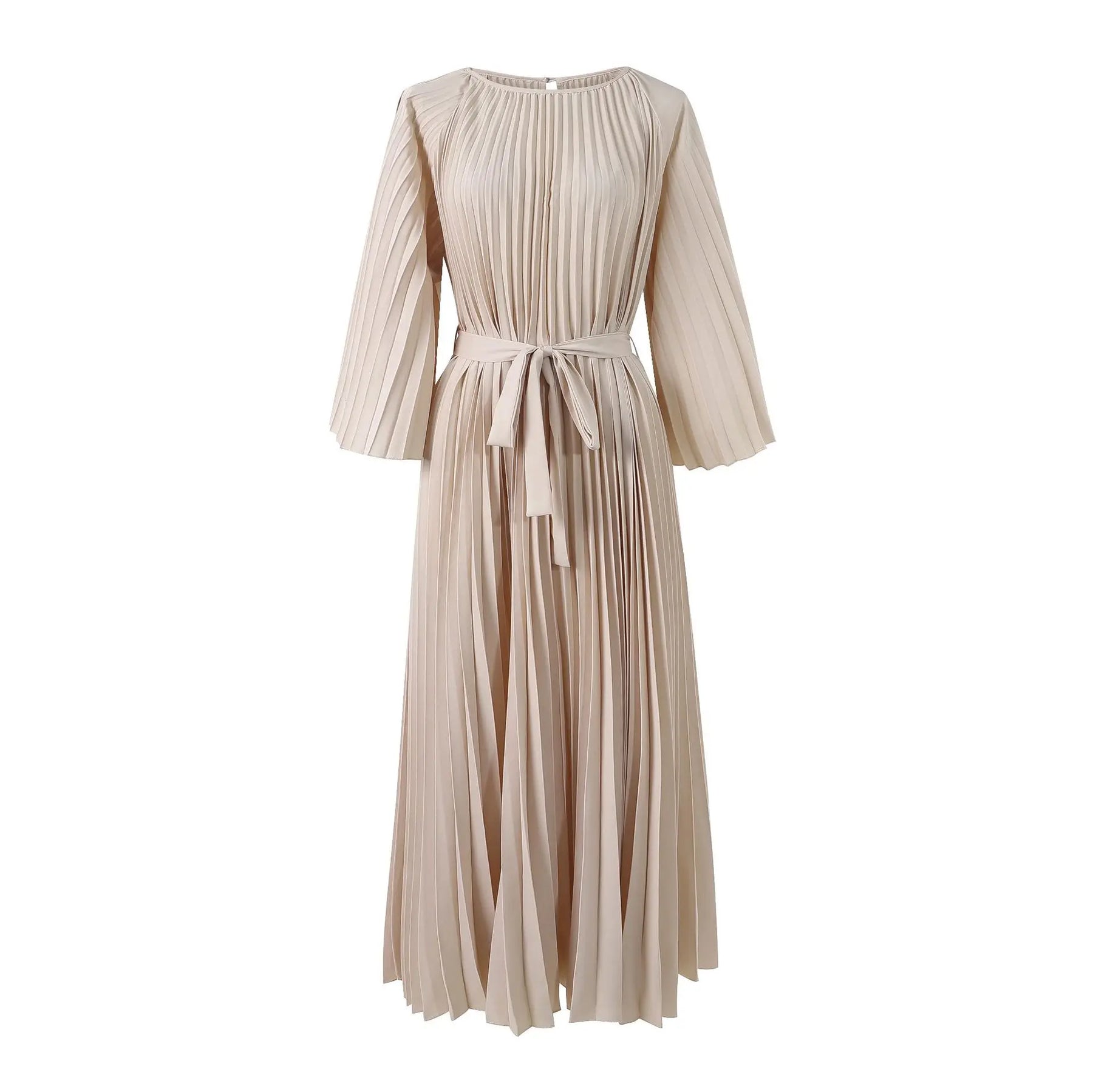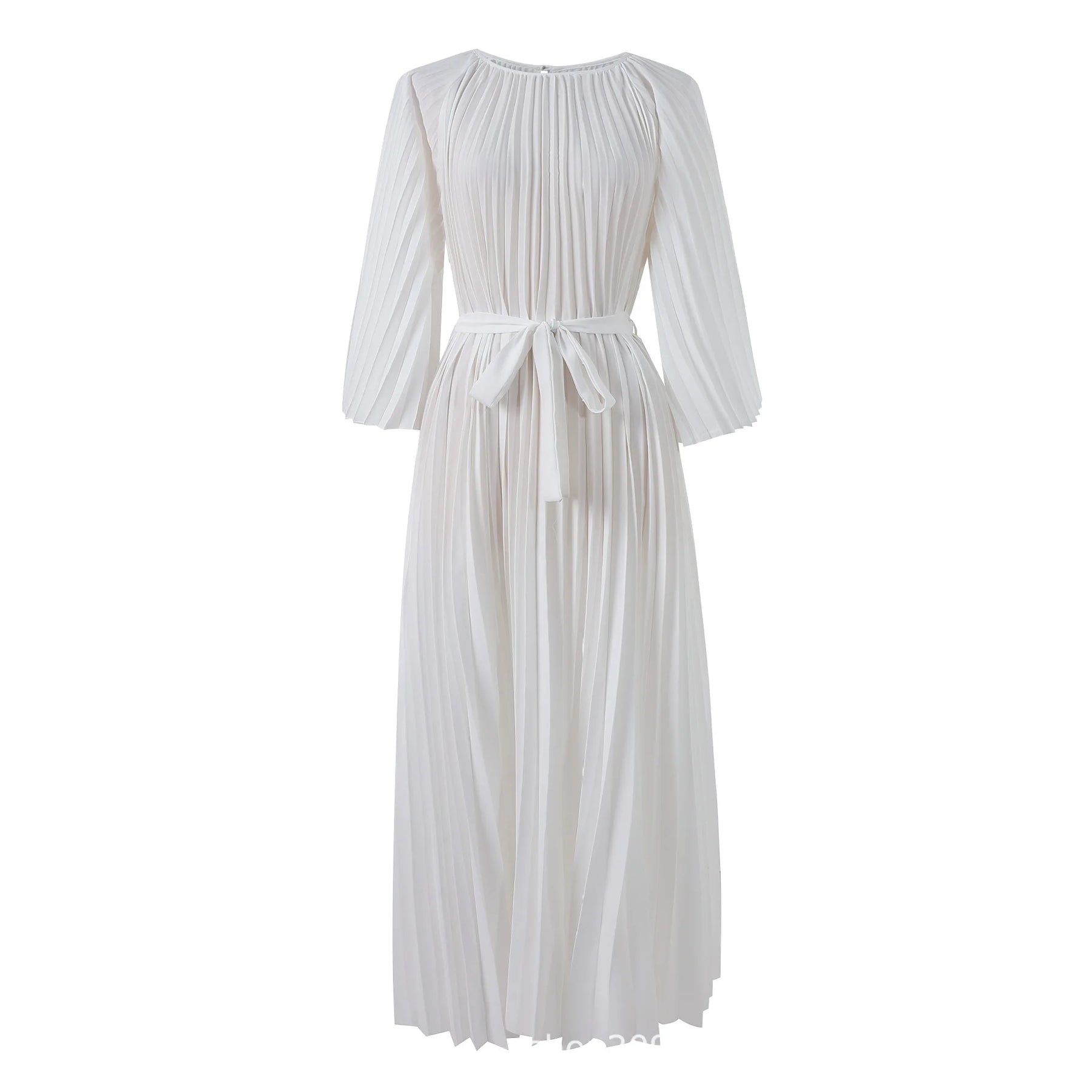 Elevate your summer wardrobe with the LANMREM Casual Solid Color Pleated Dress! 🌟
