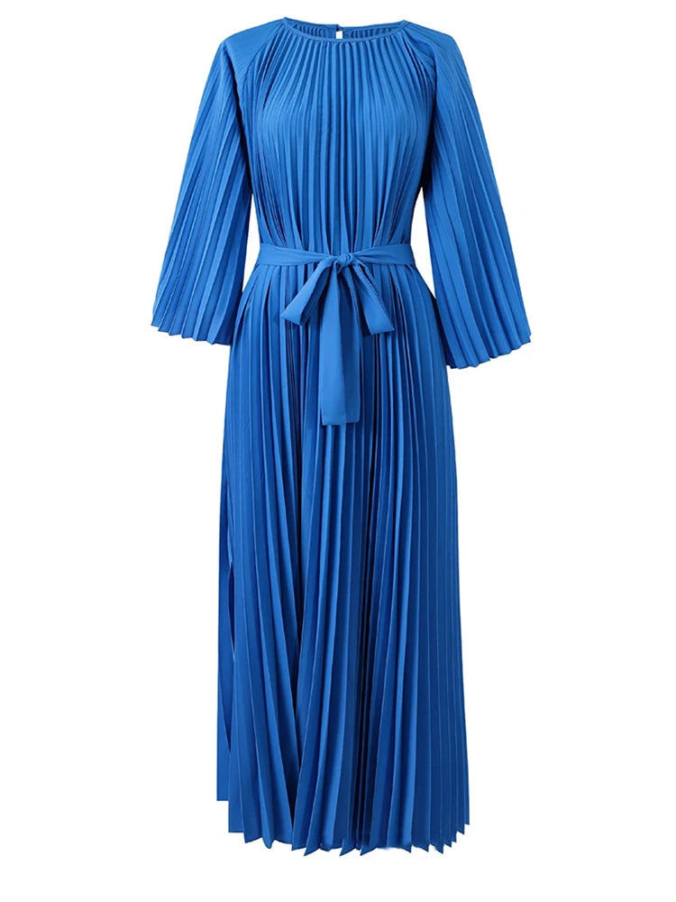 🌸 What it is - A trendy and chic dress featuring a round neck, gathered waist, and a stylish belt for a flattering fit. Perfect for the summer of 2024!