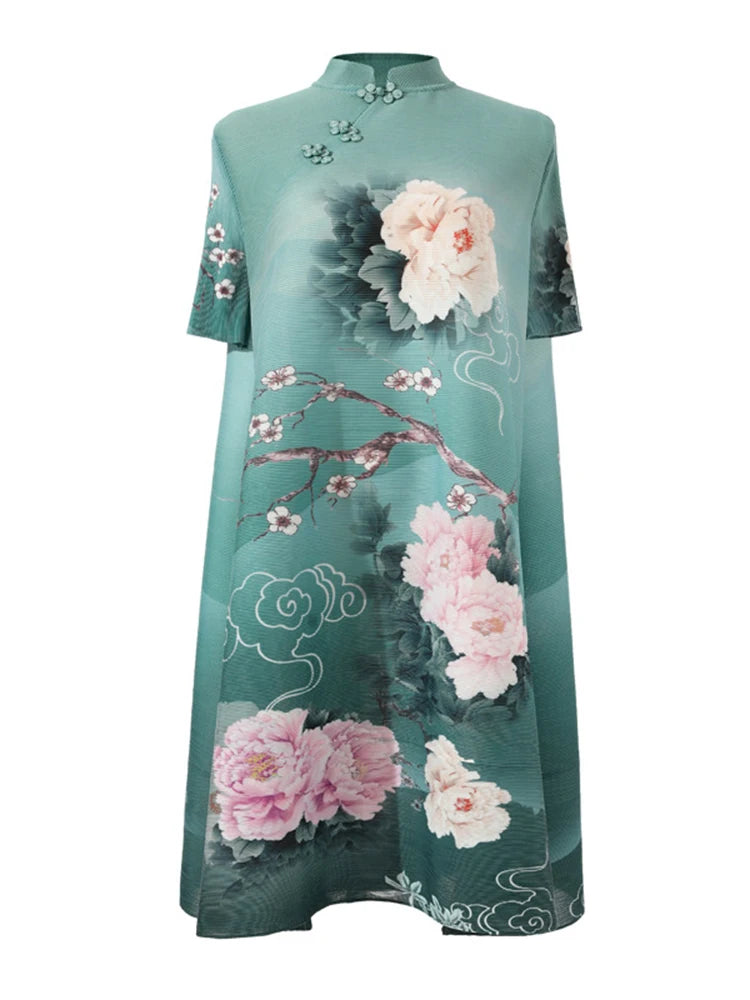 Get ready to turn heads in this stunning Chinese Style Pleated Dress! 🌸