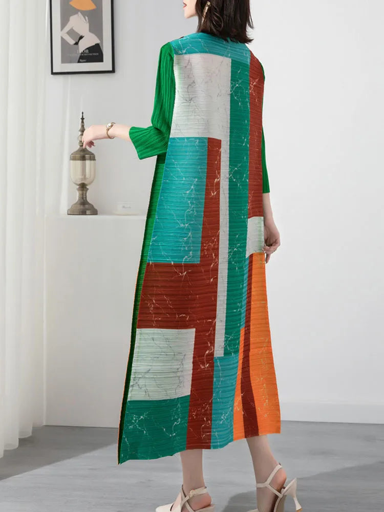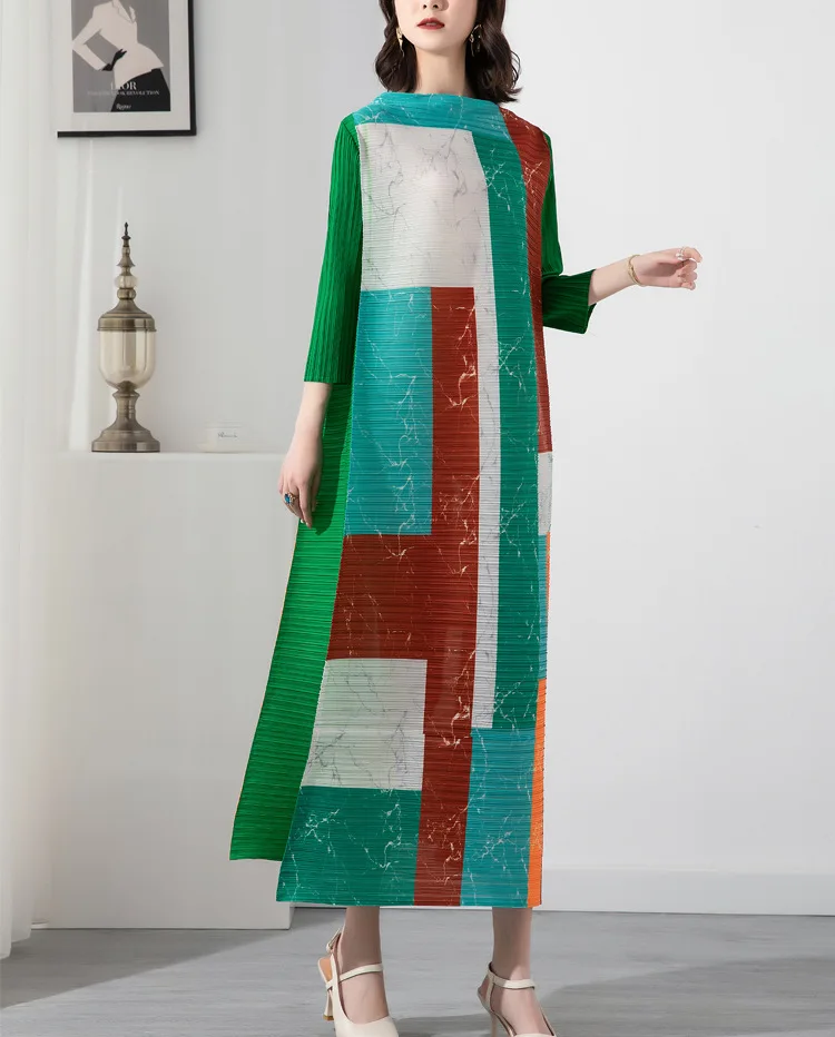 Get ready to turn heads with the LANMREM Color Block Pleated Long Dress!
