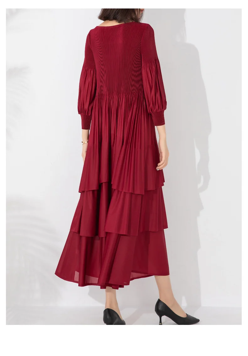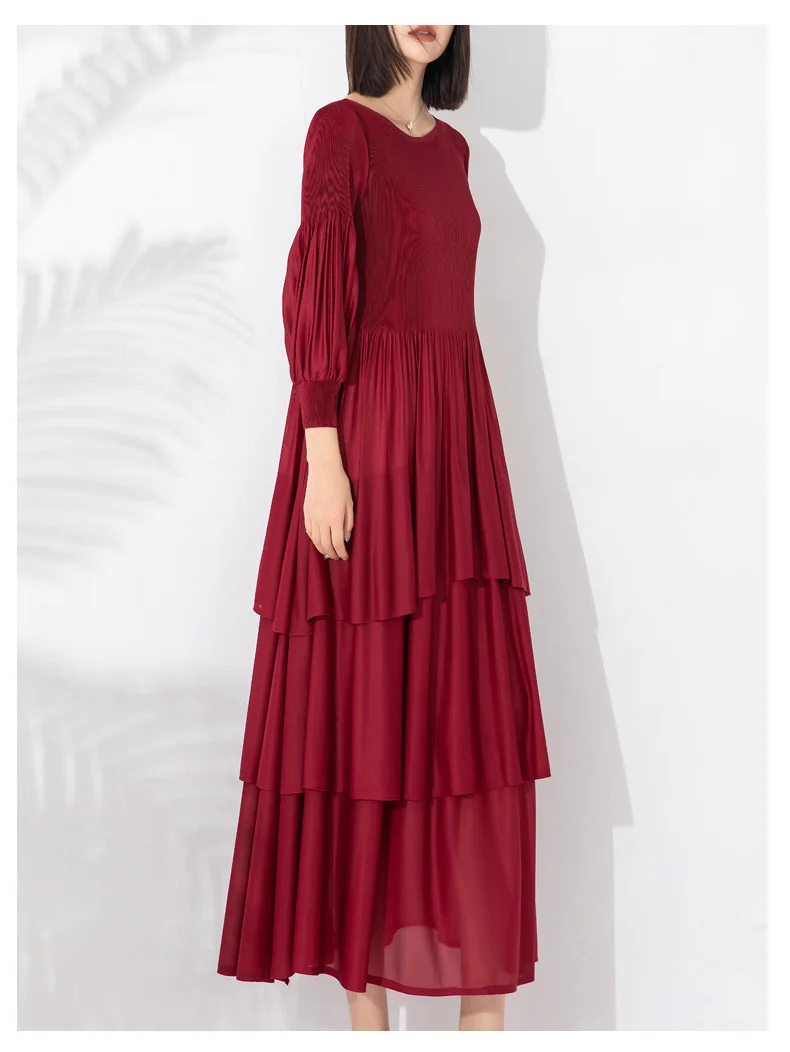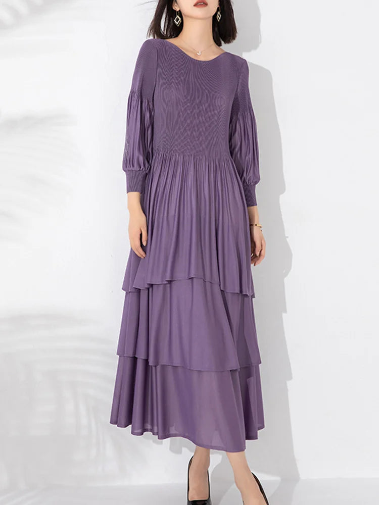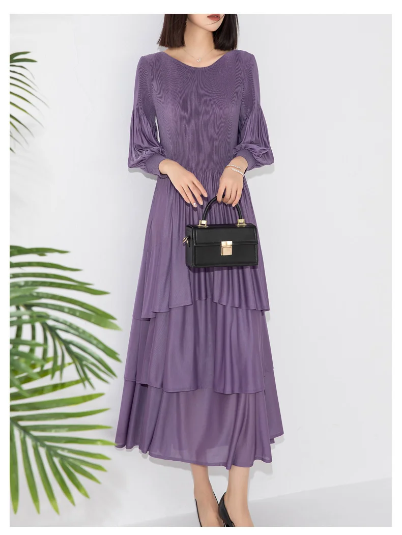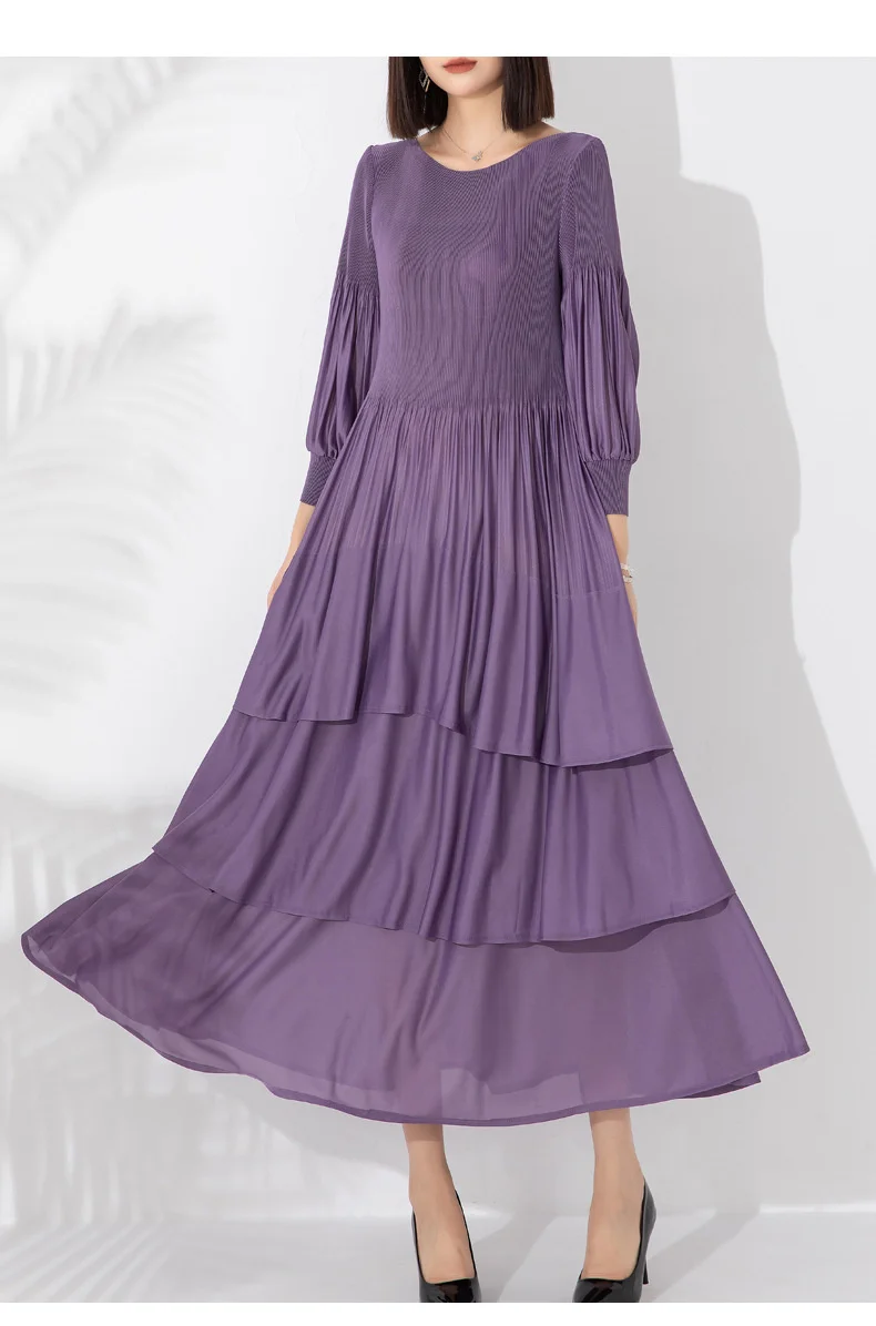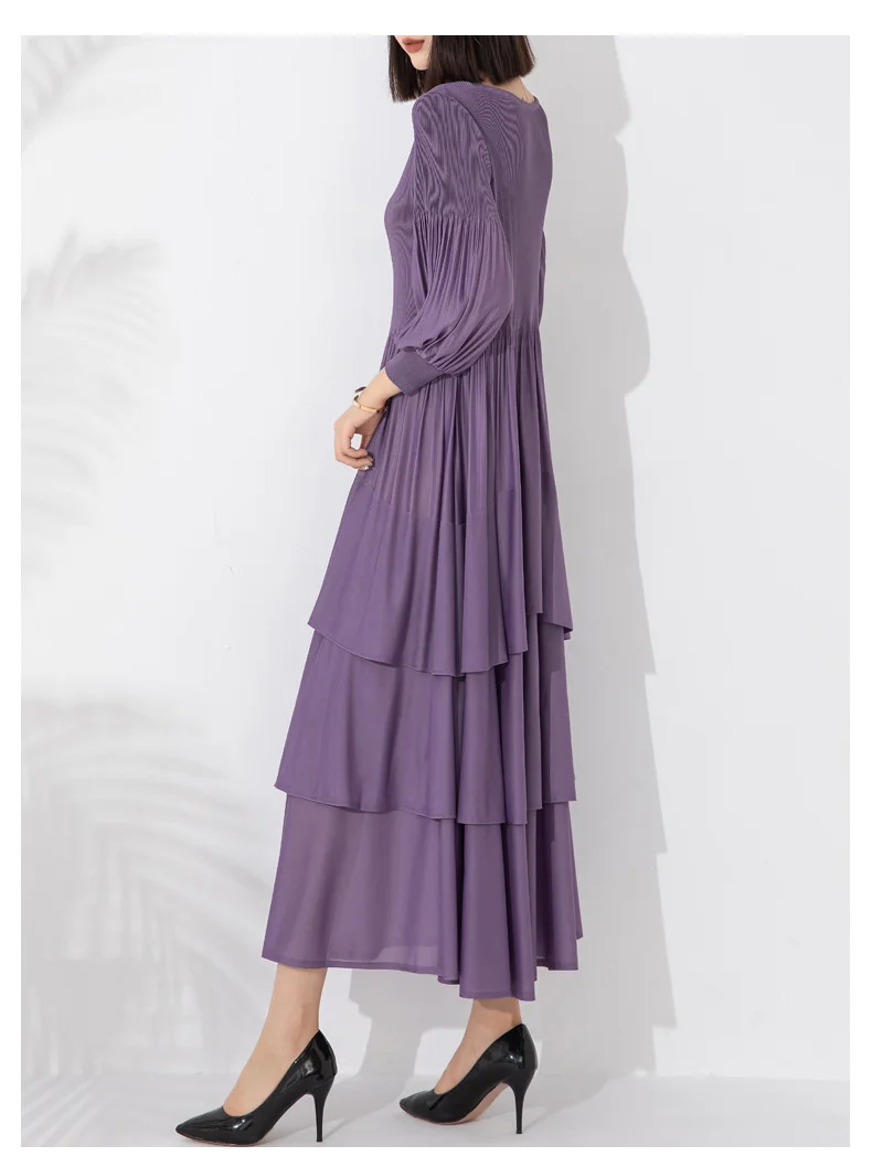 Introducing our best-selling LANMREM Pleated Fashion Dress, perfect for any party or special occasion. With its round neck, stitching sleeves, and solid color design, this dress exudes elegance and style. Made with high-quality materials, it features layers for added dimension and a flattering fit. Available in one size, with measurements of 125cm in length, 86-186cm in bust, 52cm in sleeve, and 40cm in shoulder. This dress is a must-have for any fashion-forward female. Upgrade your wardrobe with this exclusive piece and be the center of attention at your next event. Limited time offer, so get yours now!