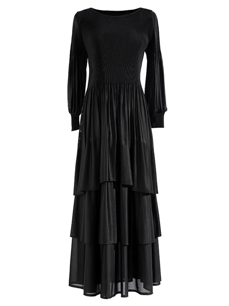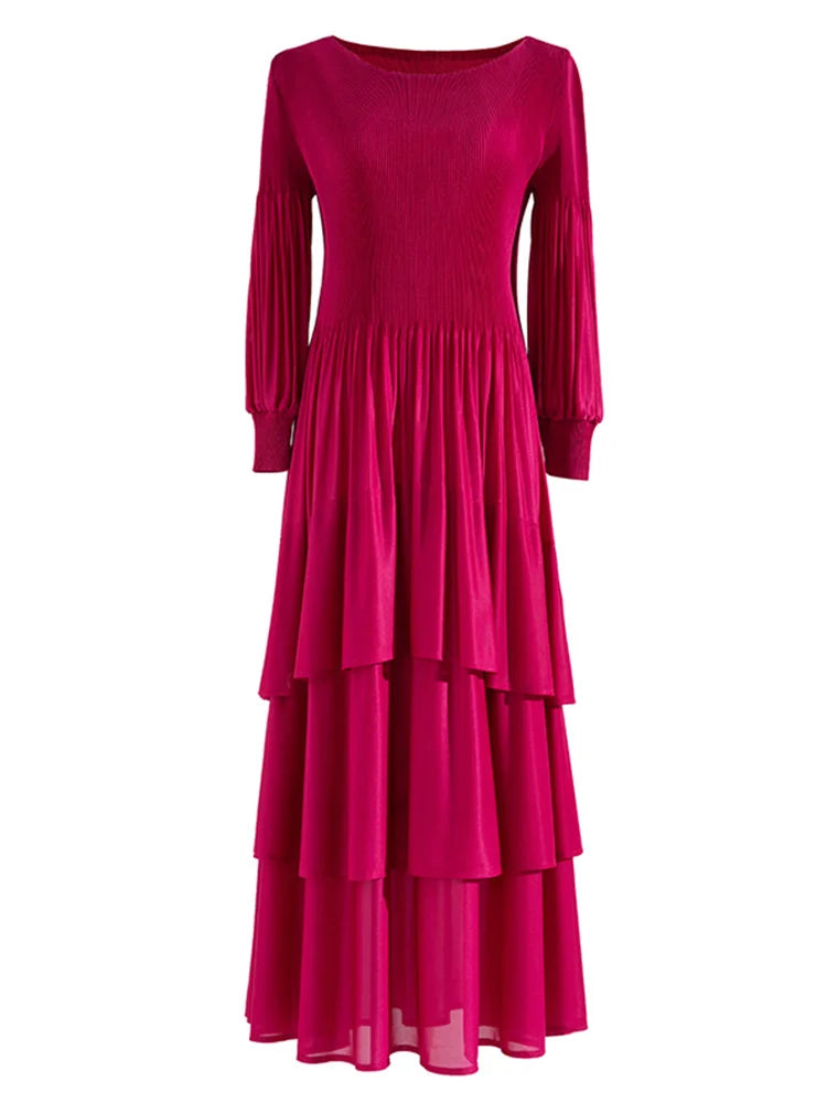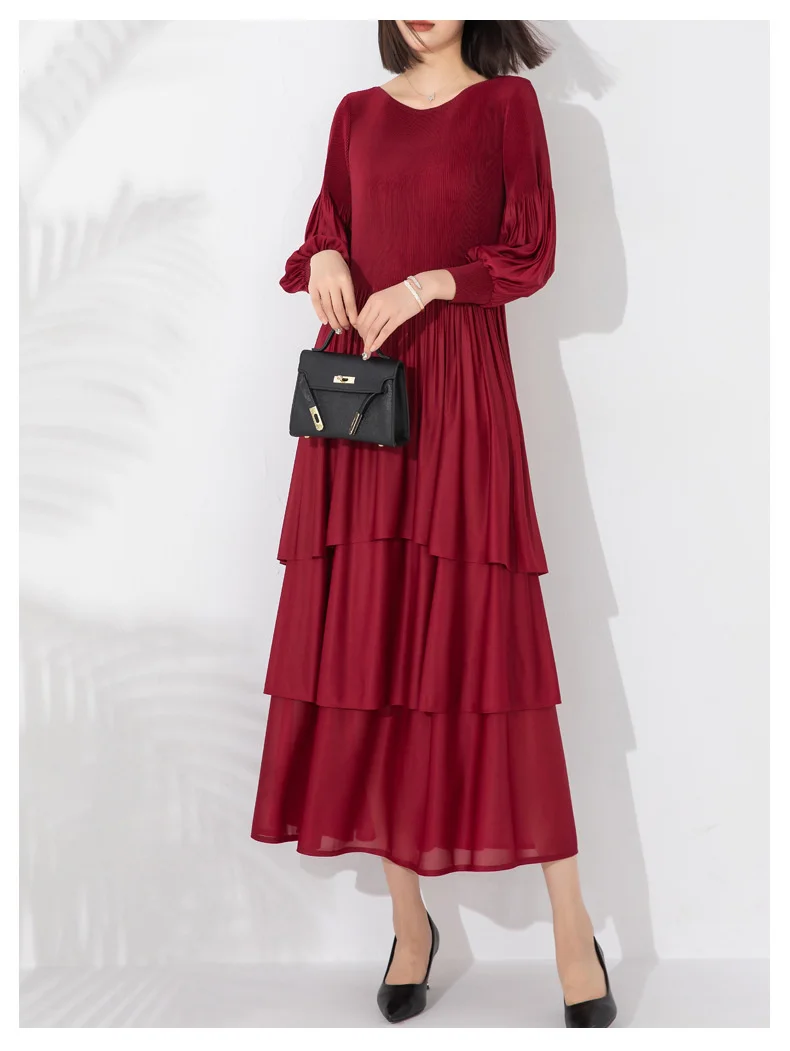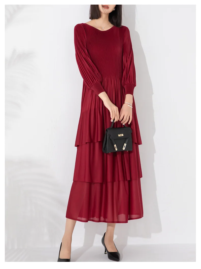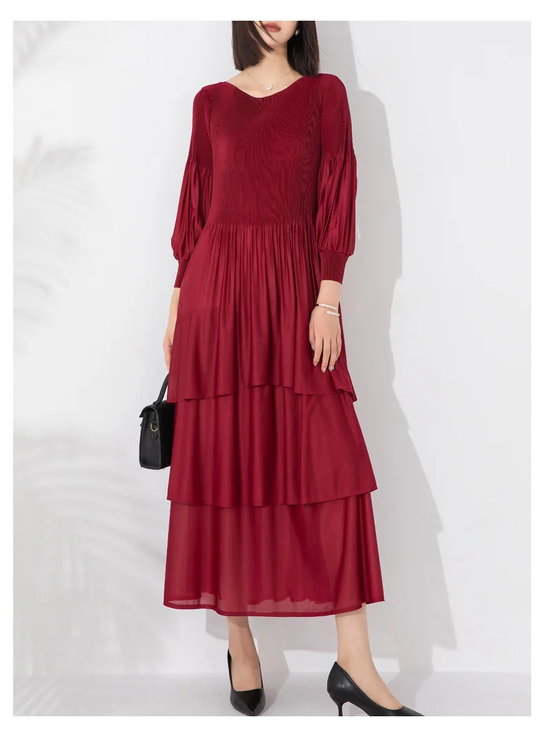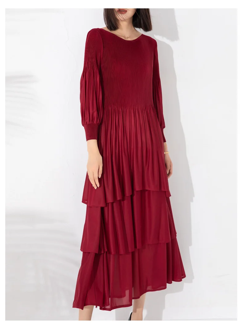 Introducing our best-selling LANMREM Pleated Fashion Dress, perfect for any party or special occasion. With its round neck, stitching sleeves, and solid color design, this dress exudes elegance and style. Made with high-quality materials, it features layers for added dimension and a flattering fit. Available in one size, with measurements of 125cm in length, 86-186cm in bust, 52cm in sleeve, and 40cm in shoulder. This dress is a must-have for any fashion-forward female. Upgrade your wardrobe with this exclusive piece and be the center of attention at your next event. Limited time offer, so get yours now!