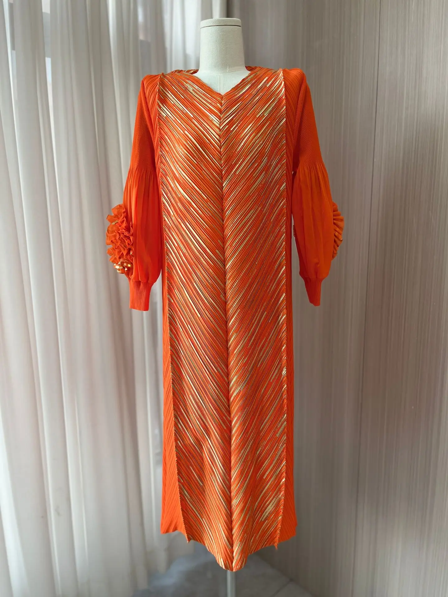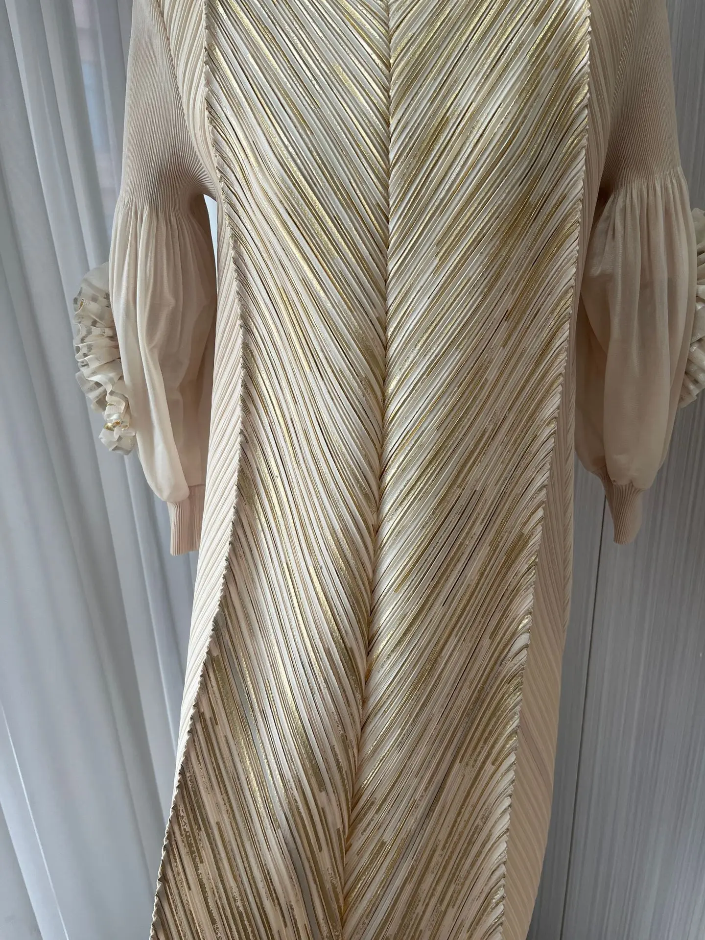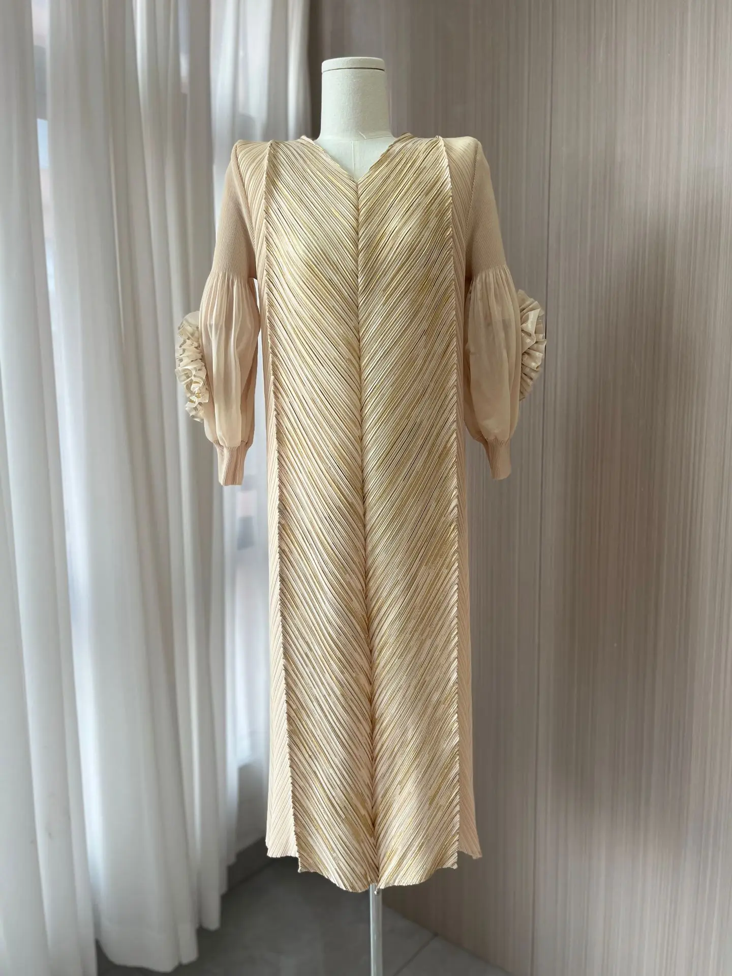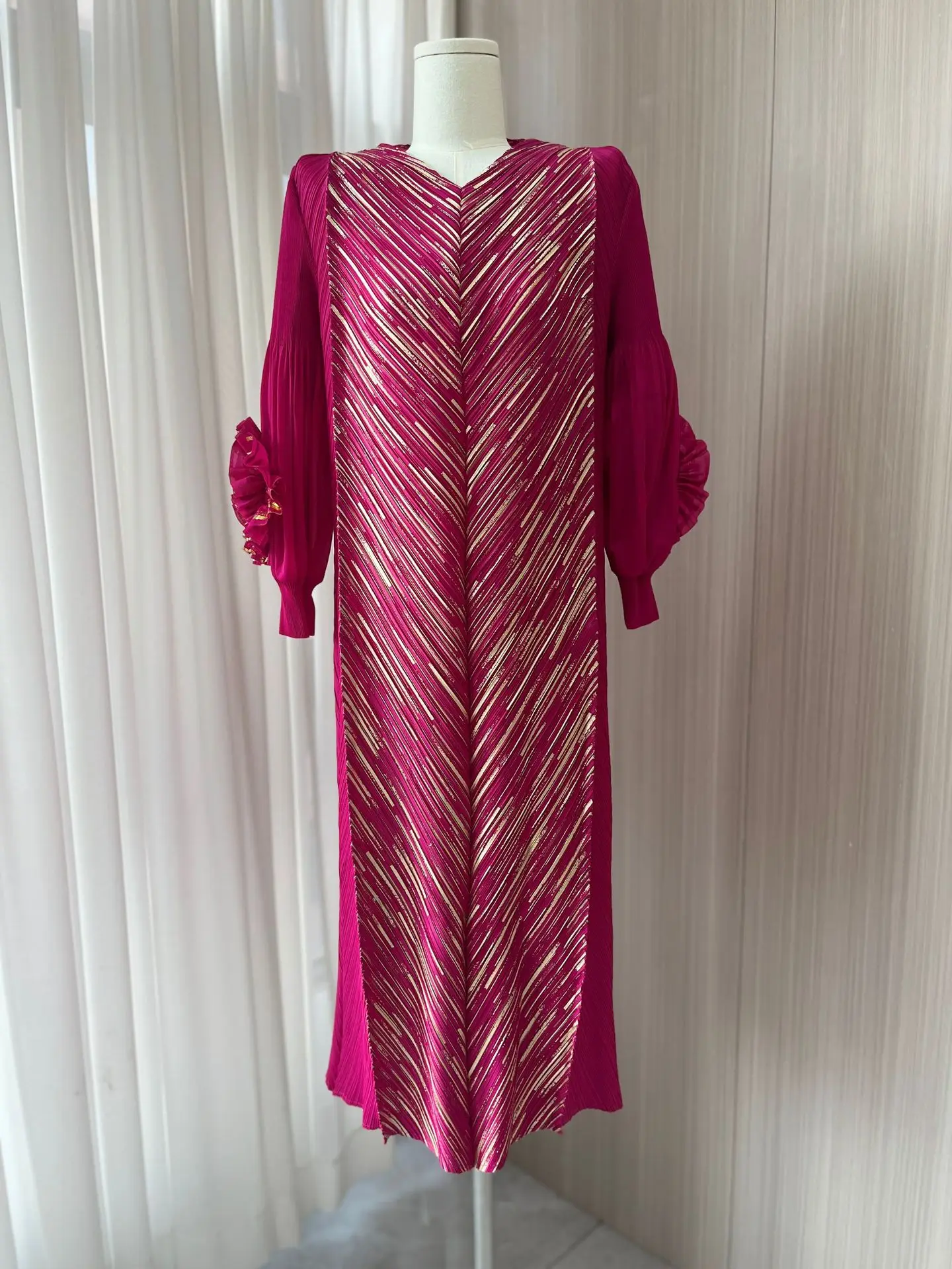 Unleash your inner fashionista with the LANMREM Fashion Bronzing Design Pleated Dress! 🌸
