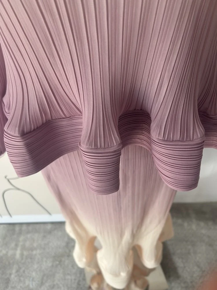 💃 Why you need it - Embrace the latest trend with this stylish outfit that exudes elegance and confidence. The gradient design adds a chic touch to your wardrobe, while the high waist and ruffle edge detail create a flattering silhouette.