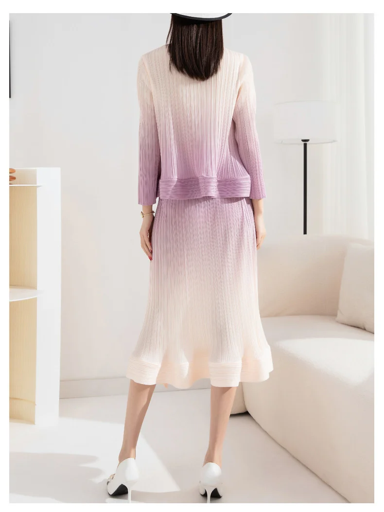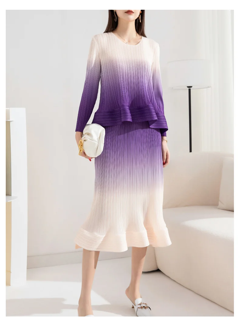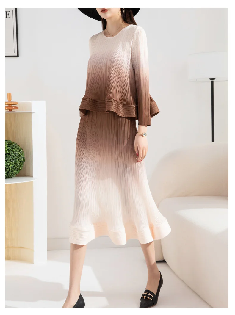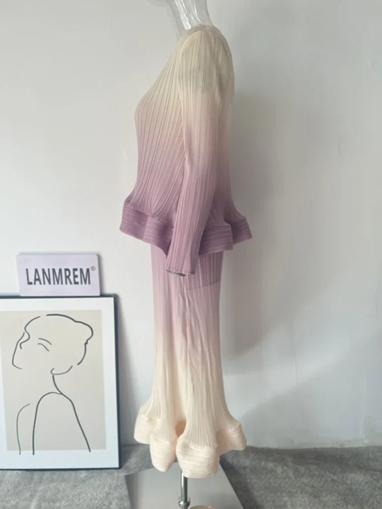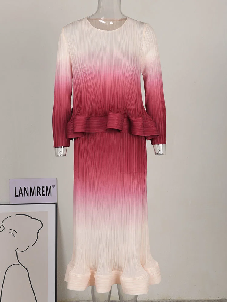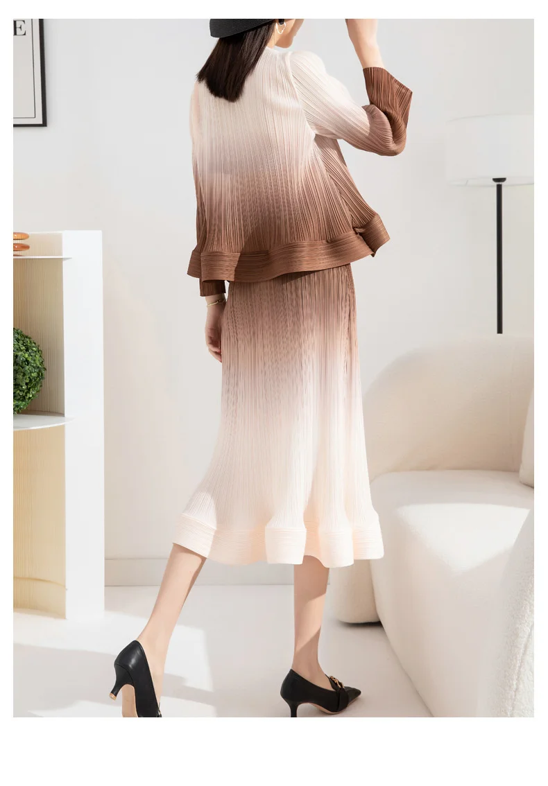 Add a touch of sophistication to your wardrobe with the LANMREM Gradient 2-Piece Skirt Set!