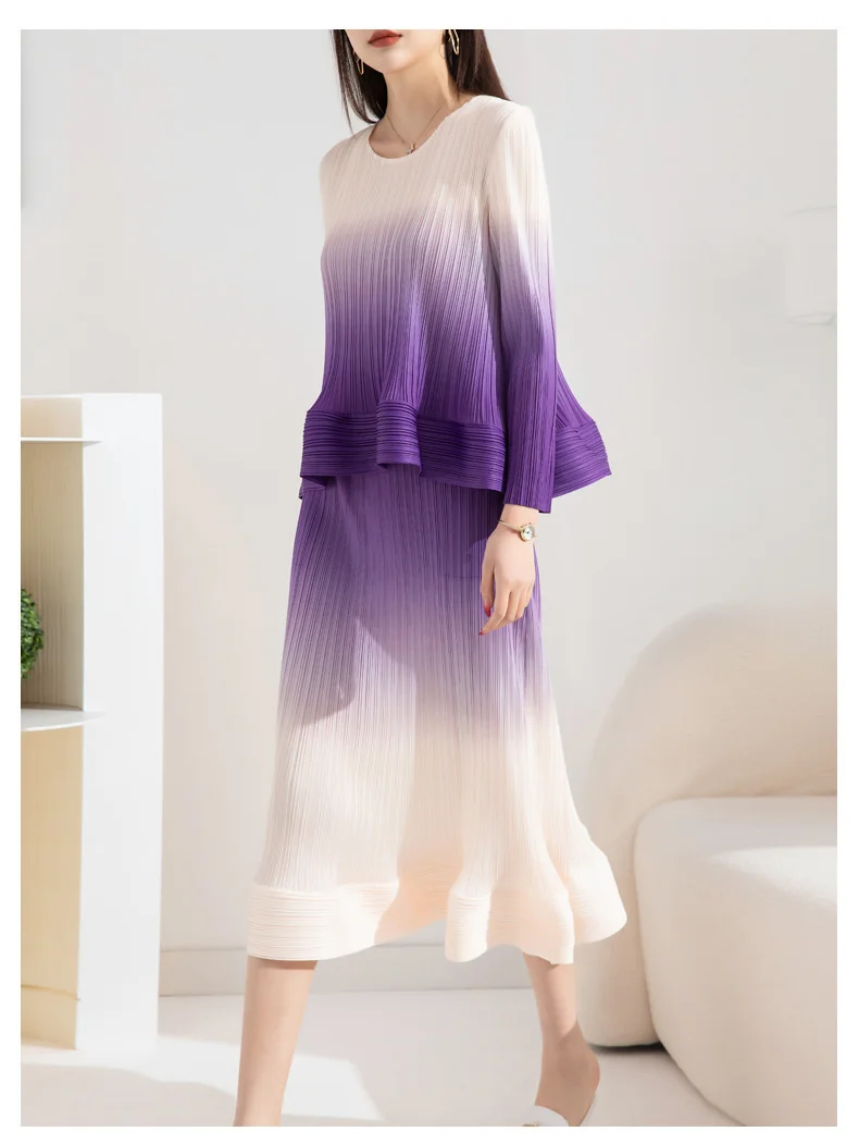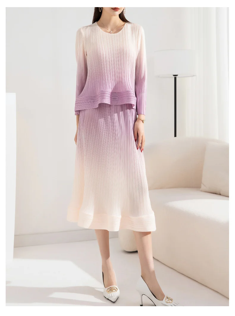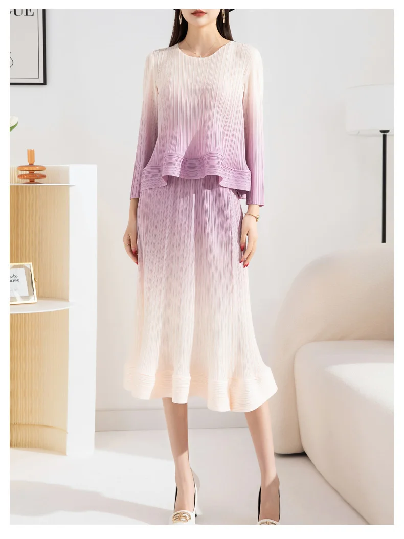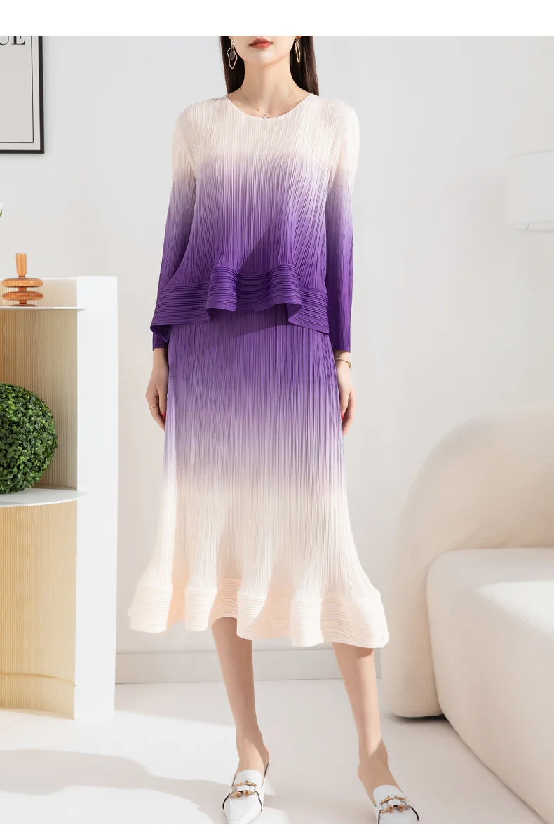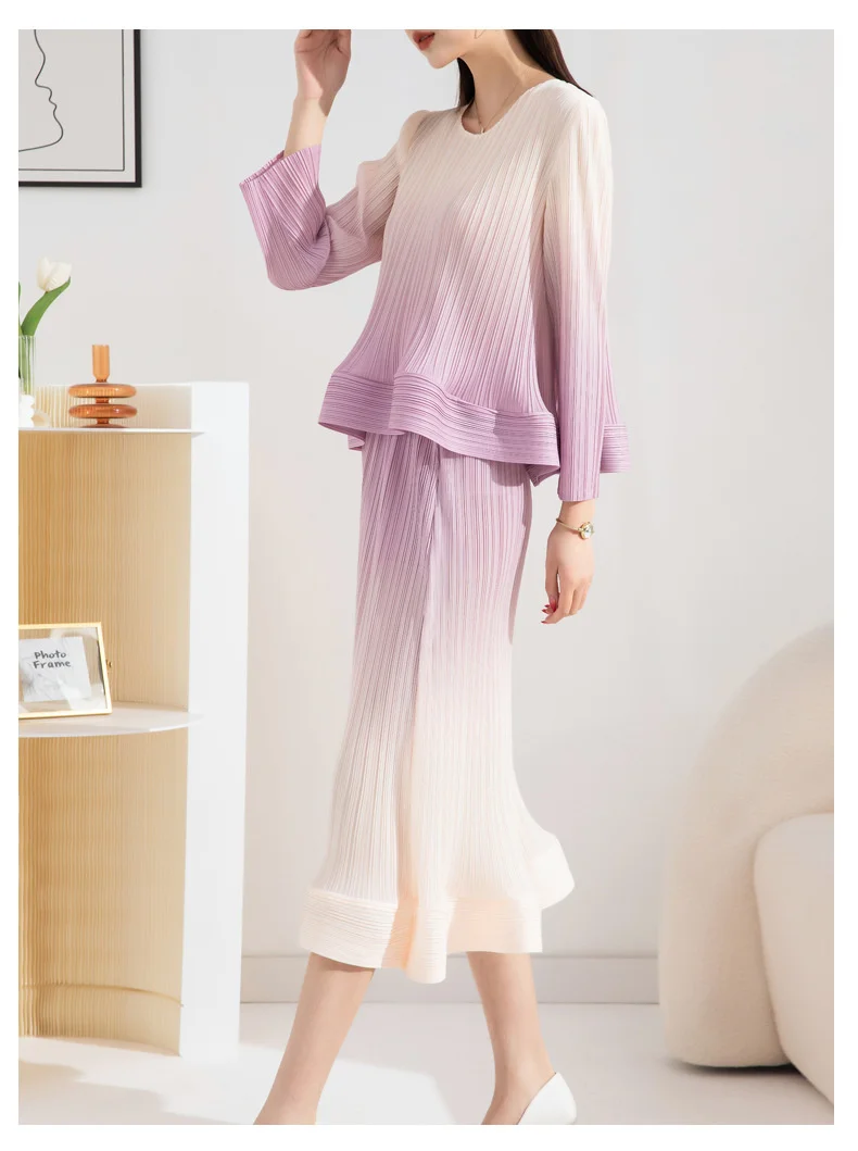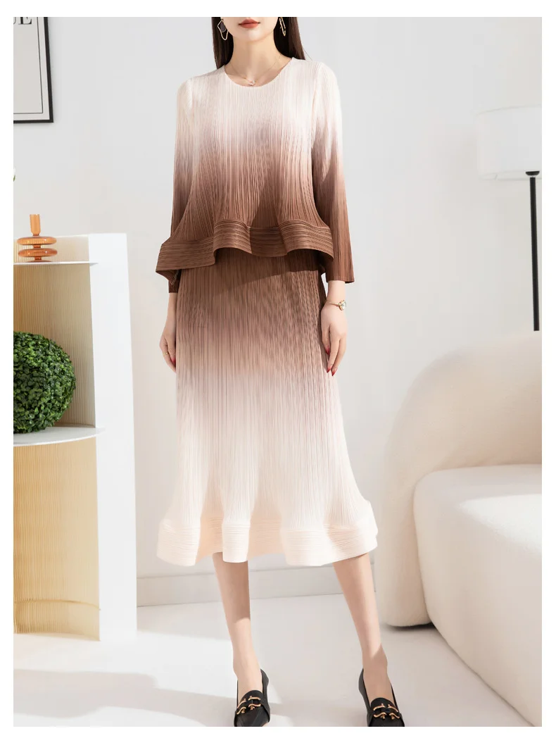 Add a touch of sophistication to your wardrobe with the LANMREM Gradient 2-Piece Skirt Set!